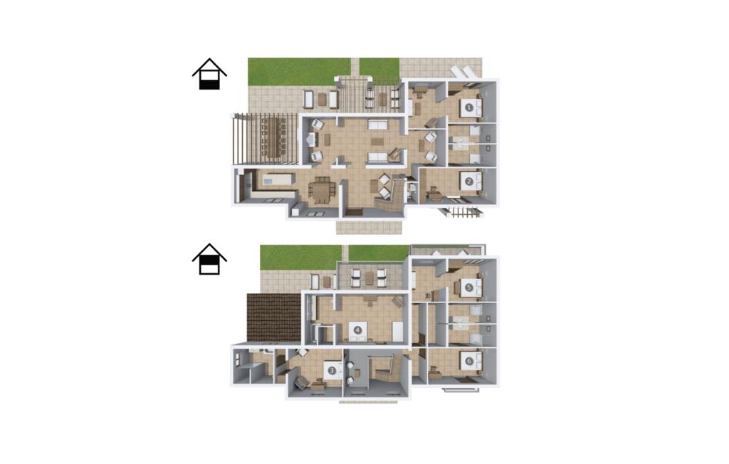 Diese Suche ist ideal für größere oder befreundete Familien, die unabhängig und doch nahe beieinander wohnen möchten.Siehe benachbarte Häuser