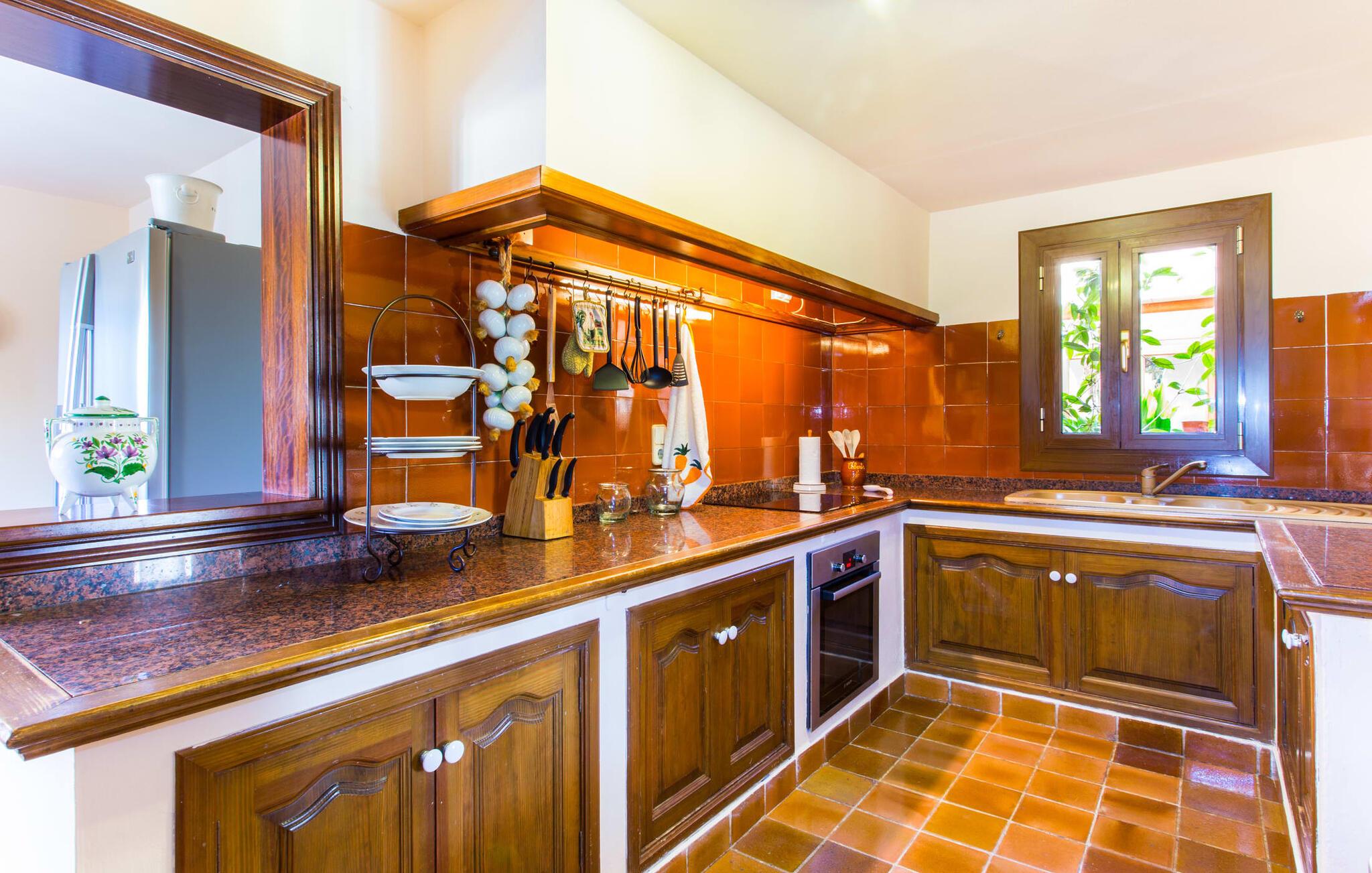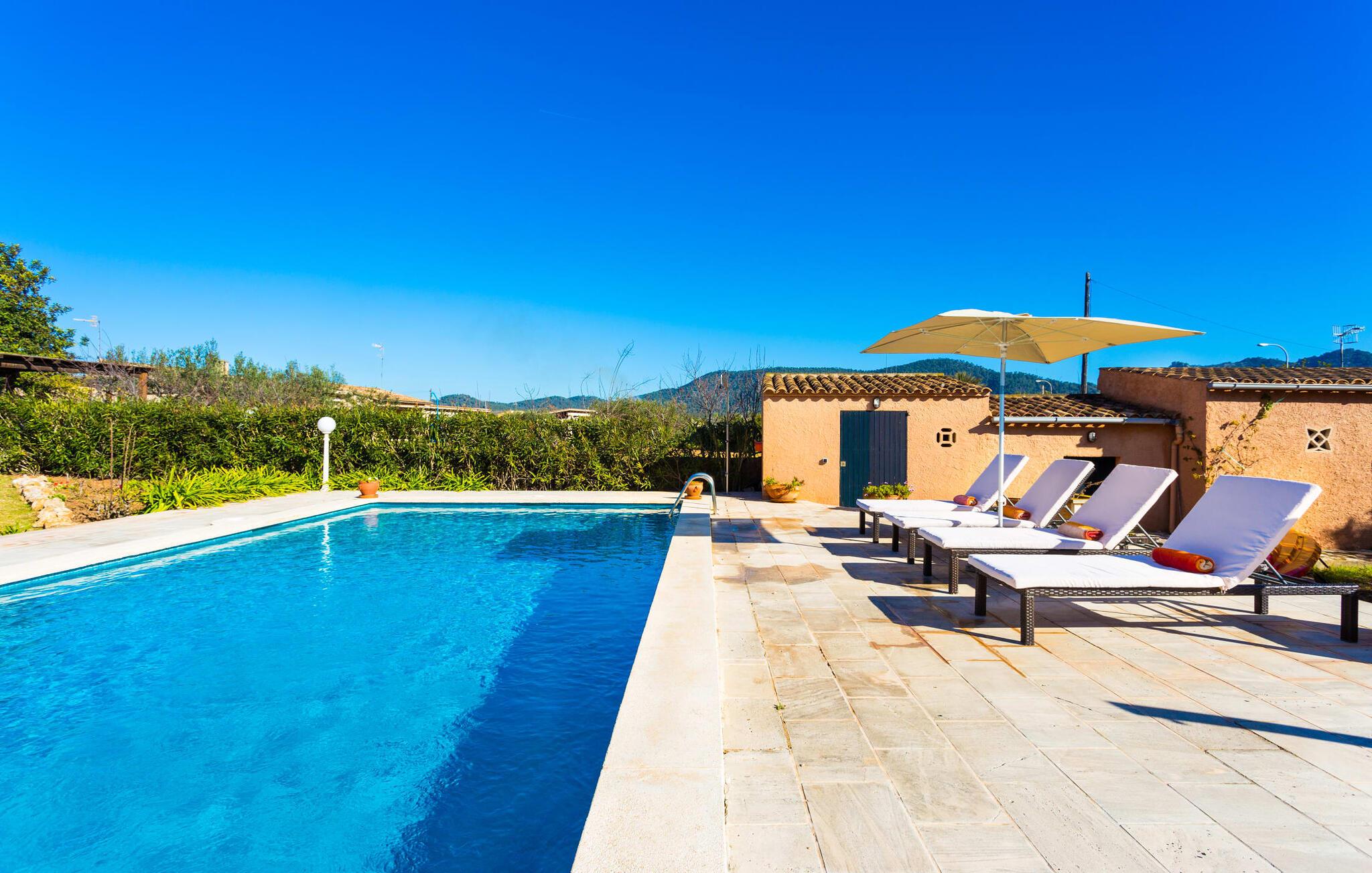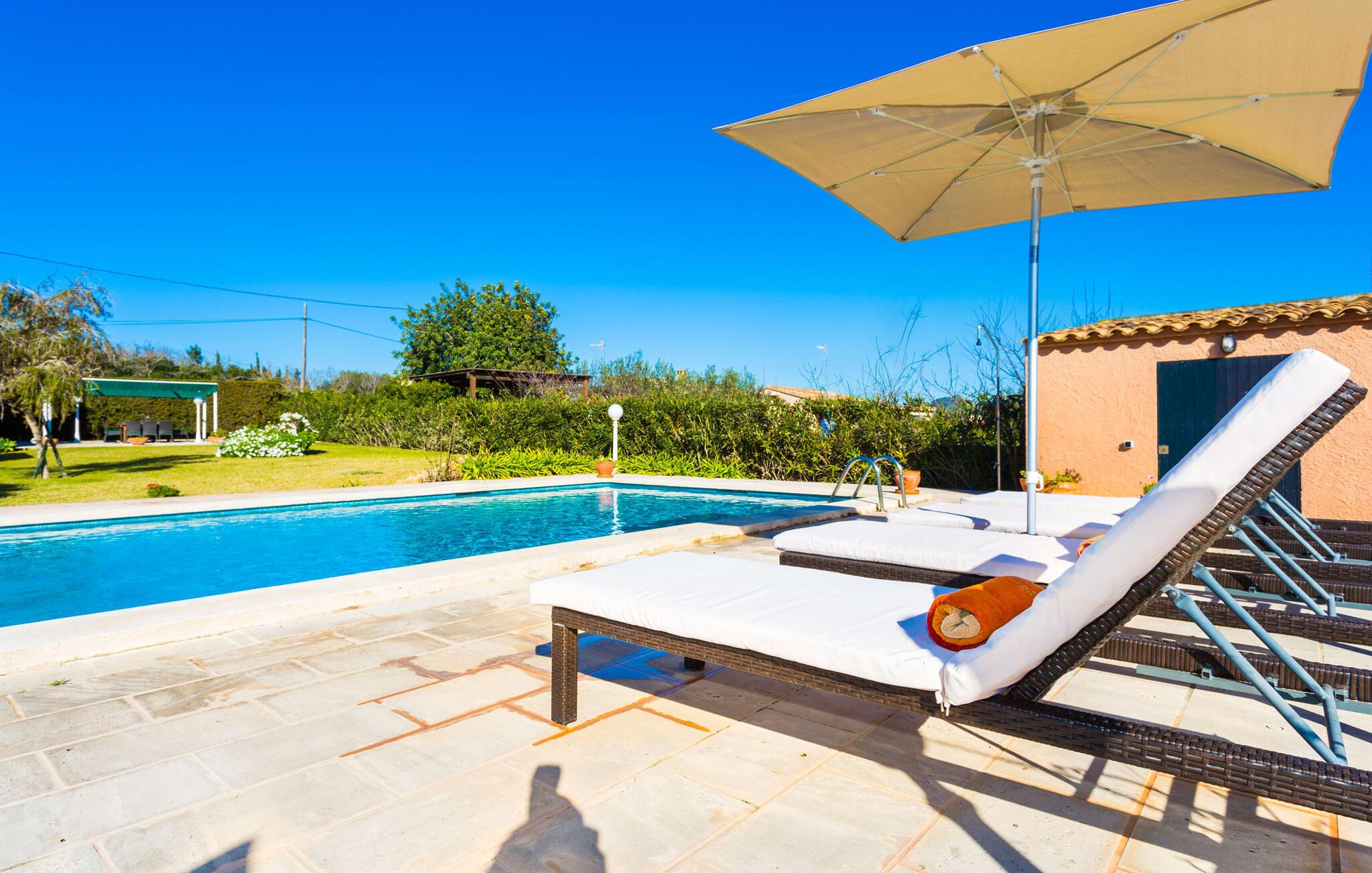 Die Finca "Es Fasser" befindet sich in der Nähe von Costa de los Pinos in einer ruhigen Wohngegend und bietet ein privates Anwesen mit einem großzügigen Garten und ein geräumiges Haus. Von einer Hecke umgeben, bietet es Kindern eine sichere Umgebung.