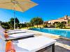 Der Außenbereich verfügt über gepflegte Rasenflächen, mediterrane Pflanzen und charmante Wege, die eine malerische Kulisse schaffen. Eine große überdachte Terrasse blickt auf einen rechteckigen Pool mit unterschiedlichen Tiefen, der über eine halbkreisförmige Treppe erreichbar ist. Entspannen Sie auf bequemen Liegestühlen und Gartenmöbeln und genießen Sie Essbereiche im Freien mit einem gemauerten Grill und einem zusätzlichen Kühlschrank für Getränke.