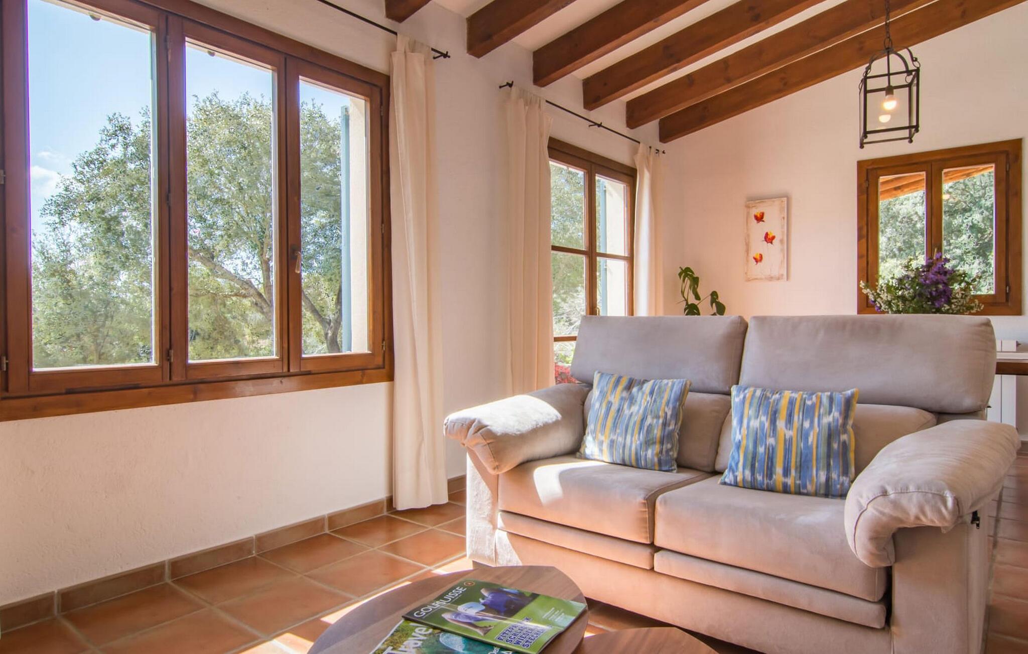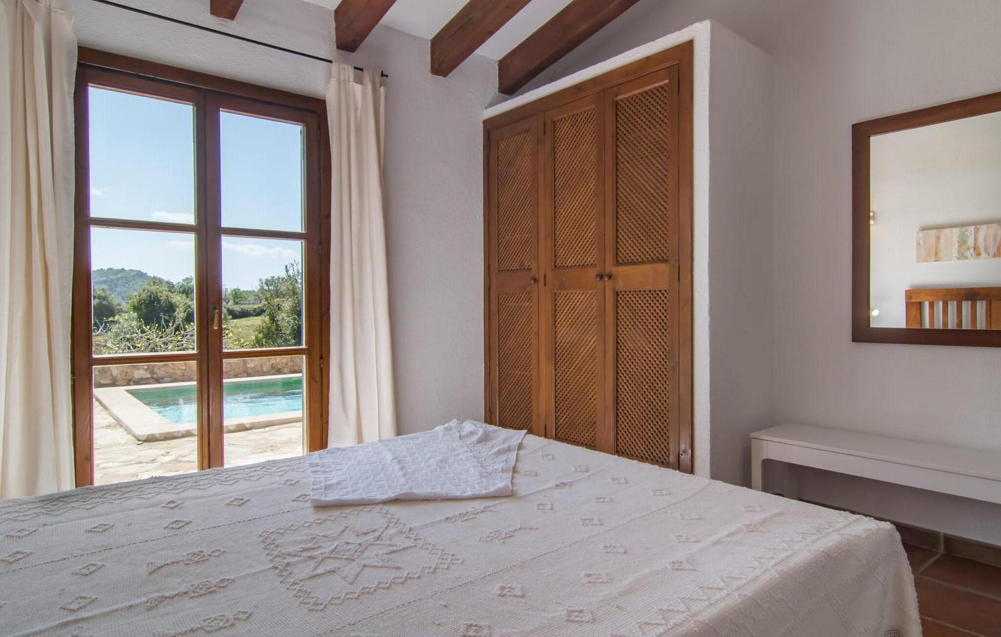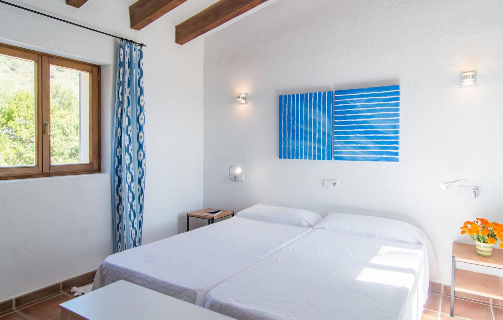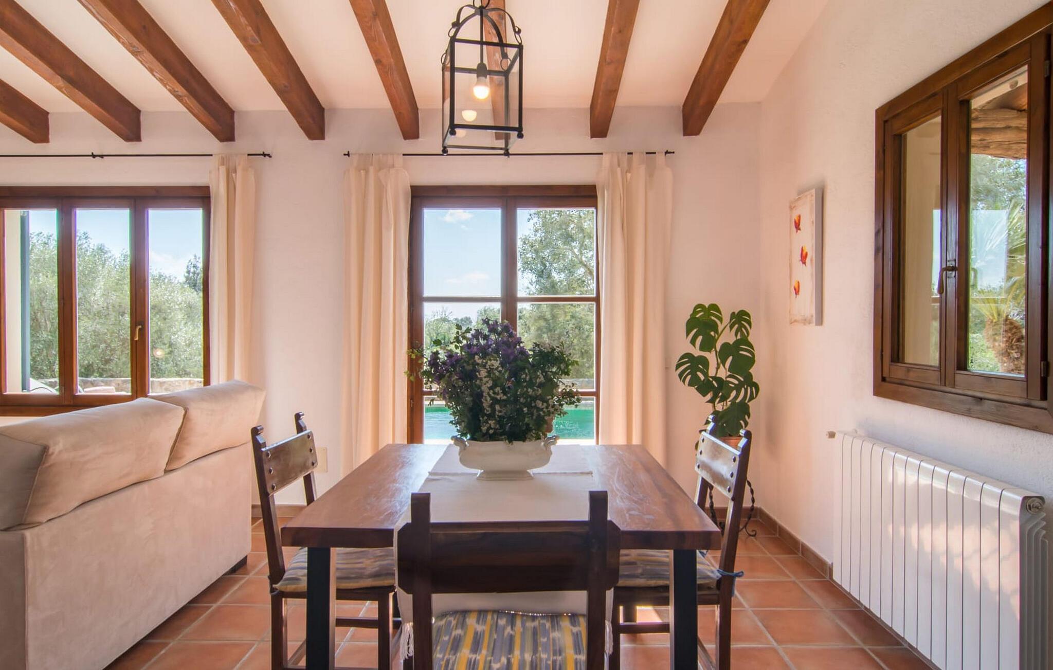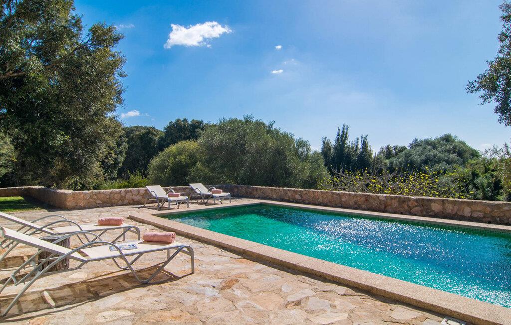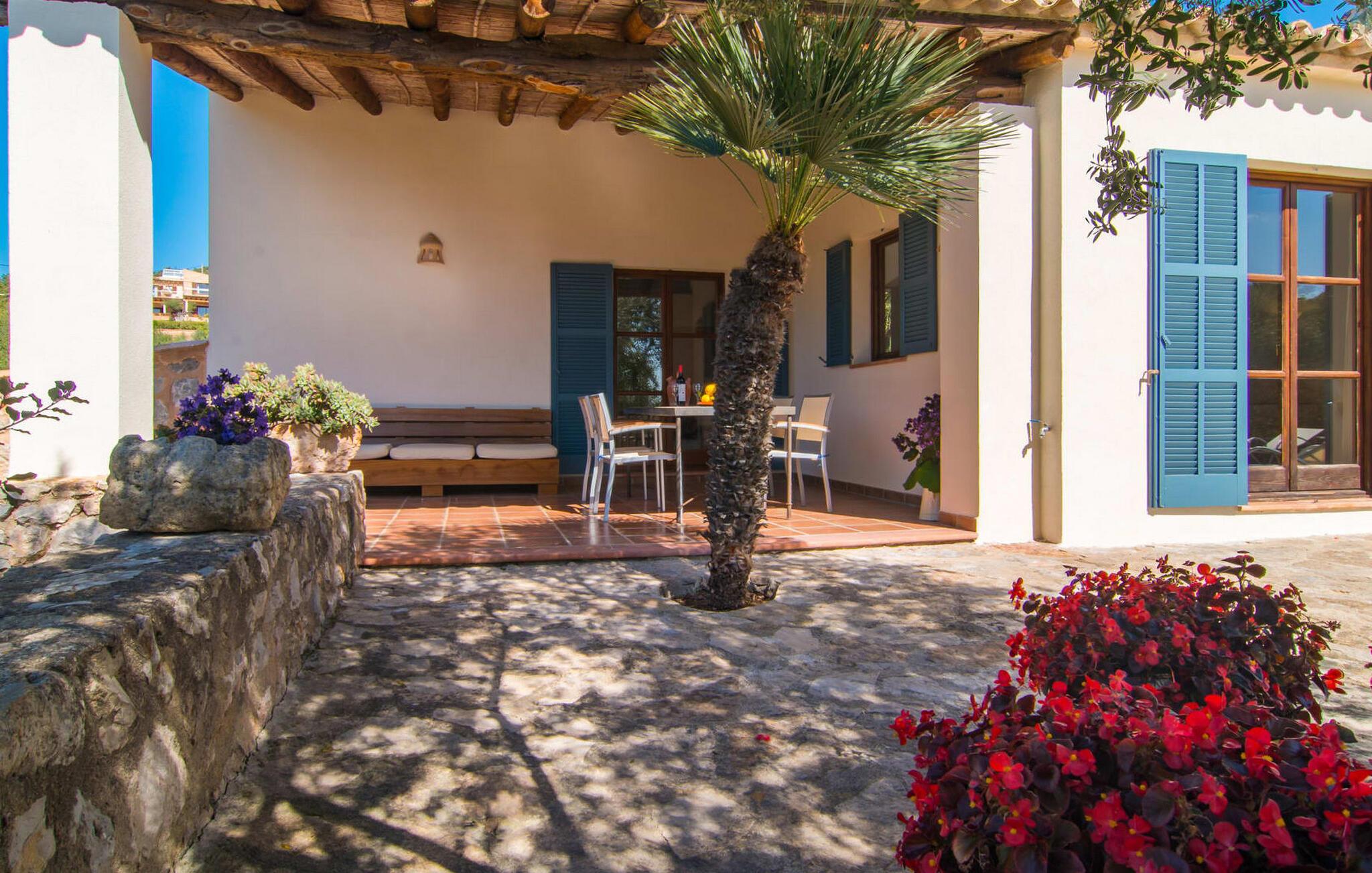 Die wunderschöne Steinvilla "Es Garbalio“ liegt inmitten uralter Bäume und empfängt Sie mit bezaubernden türkisfarbenen Fensterläden und einer großzügigen umlaufenden Terrasse. Die Terrasse verfügt über einen schönen Pool und einen teilweise überdachten Frühstücksbereich. Unter dem strahlend blauen Himmel verbreiten die Palmen eine herrlich mediterrane Atmosphäre. Ein luxuriöser eingebauter Außengrill erwartet Sie, perfekt, um die kulinarischen Schätze der Insel zu genießen.