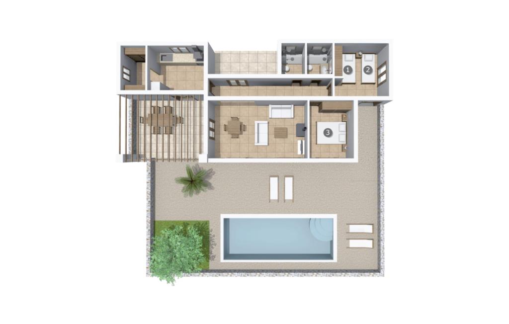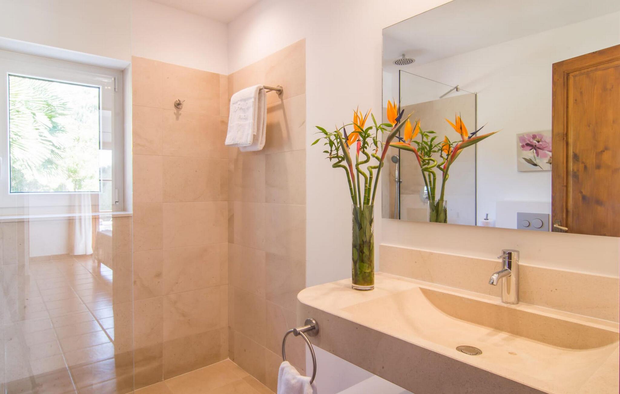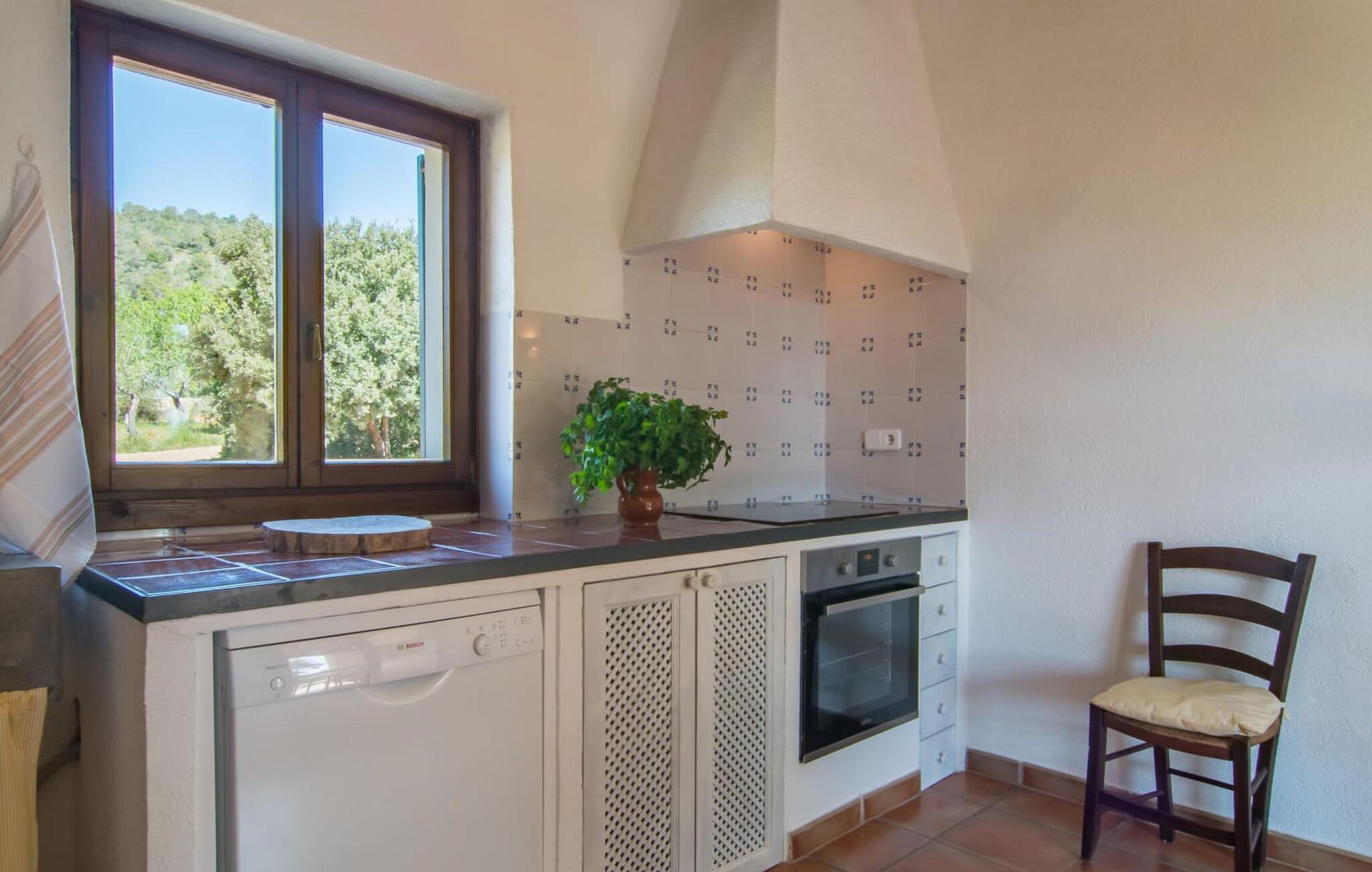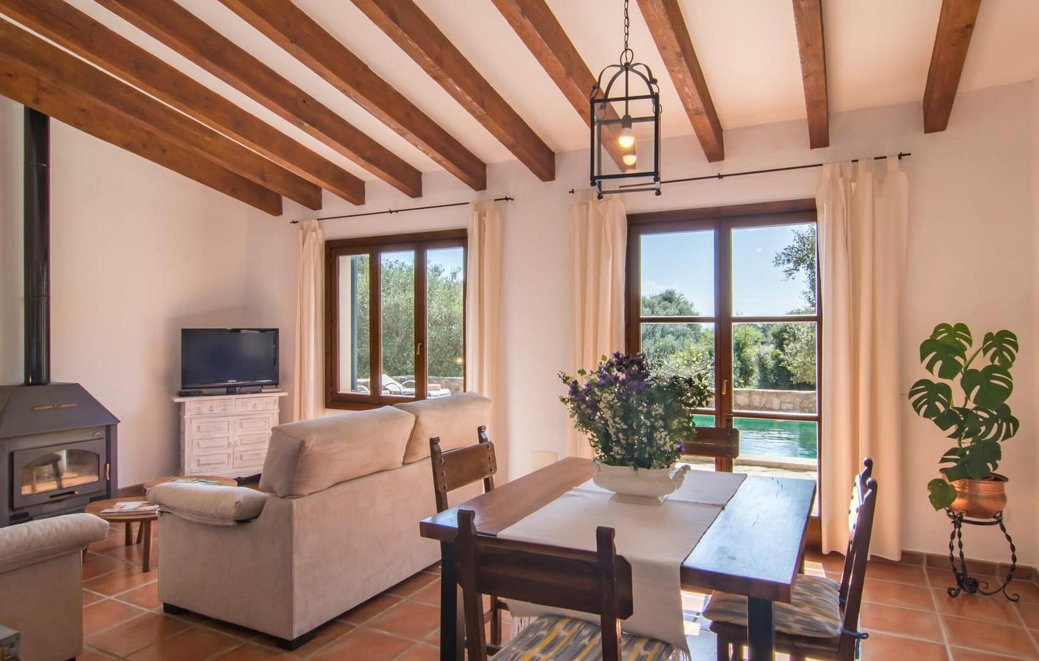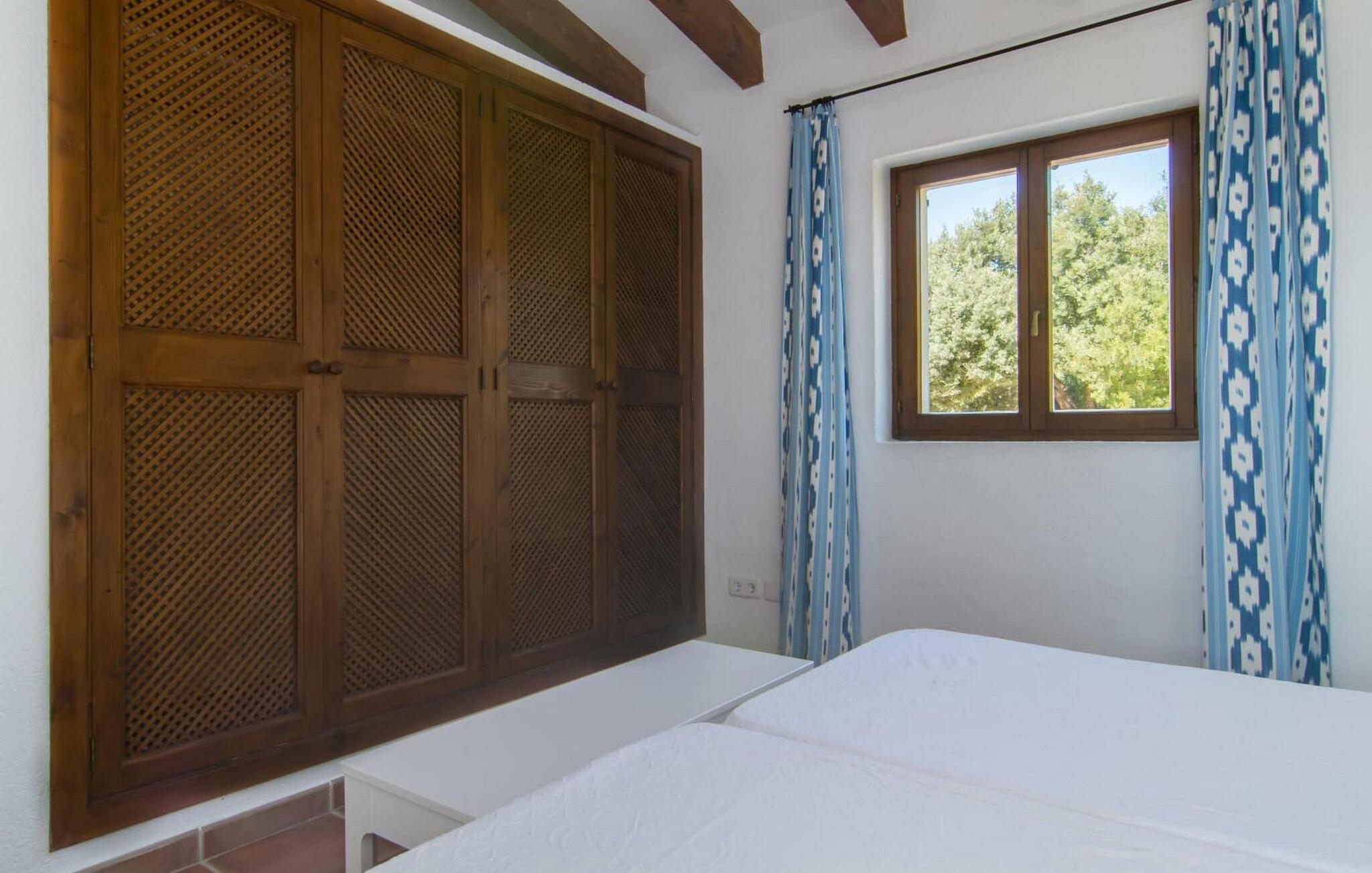 Die wunderschöne Steinvilla "Es Garbalio“ liegt inmitten uralter Bäume und empfängt Sie mit bezaubernden türkisfarbenen Fensterläden und einer großzügigen umlaufenden Terrasse. Die Terrasse verfügt über einen schönen Pool und einen teilweise überdachten Frühstücksbereich. Unter dem strahlend blauen Himmel verbreiten die Palmen eine herrlich mediterrane Atmosphäre. Ein luxuriöser eingebauter Außengrill erwartet Sie, perfekt, um die kulinarischen Schätze der Insel zu genießen.