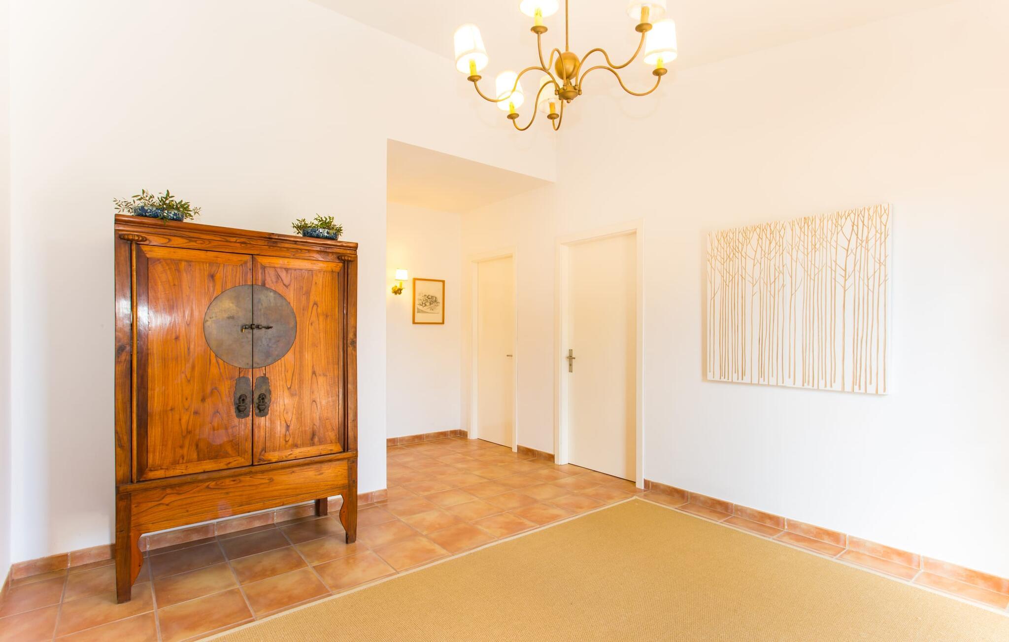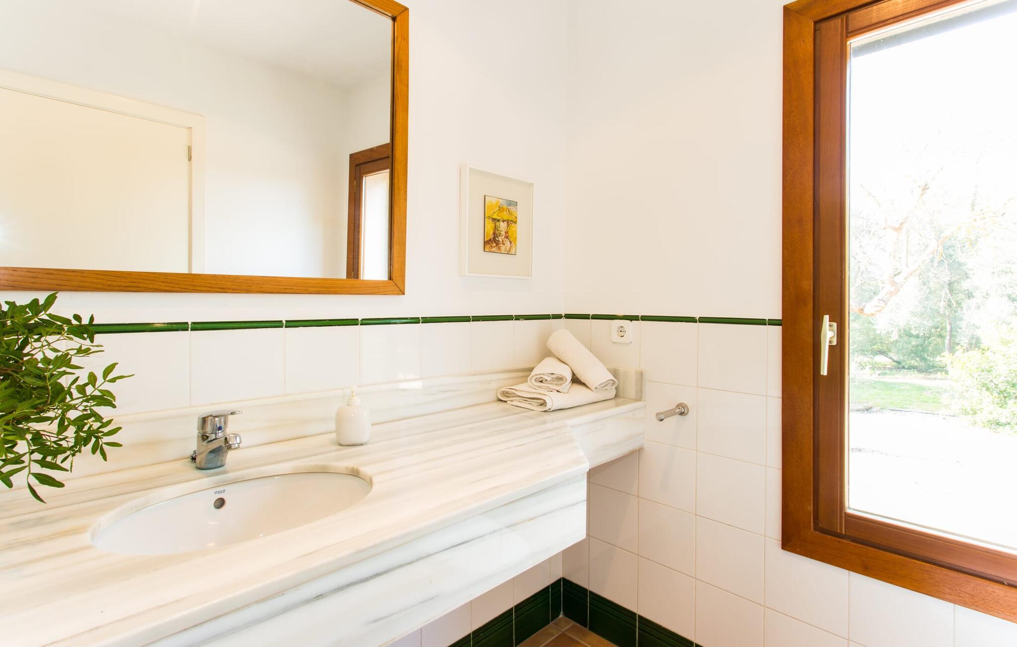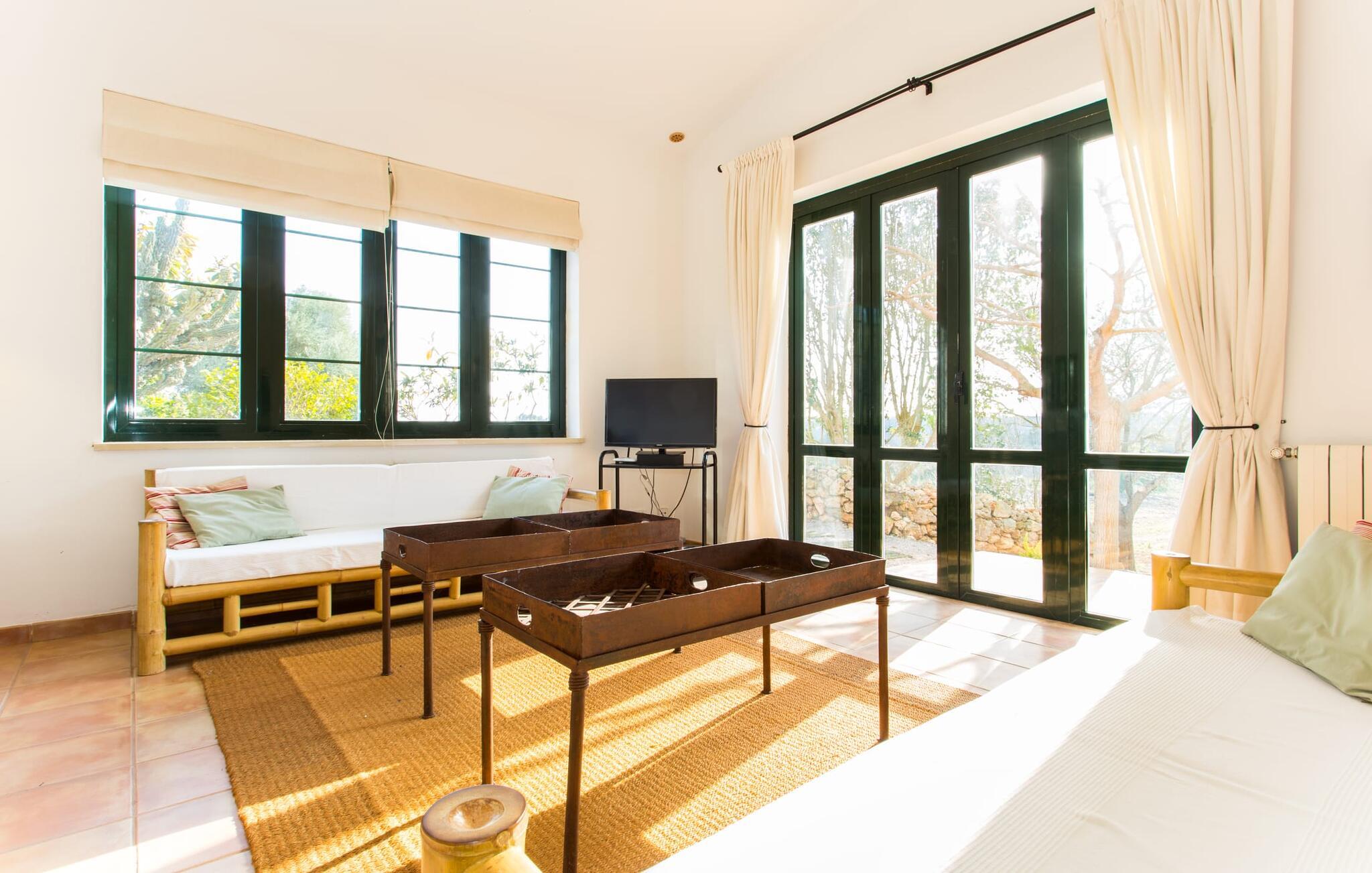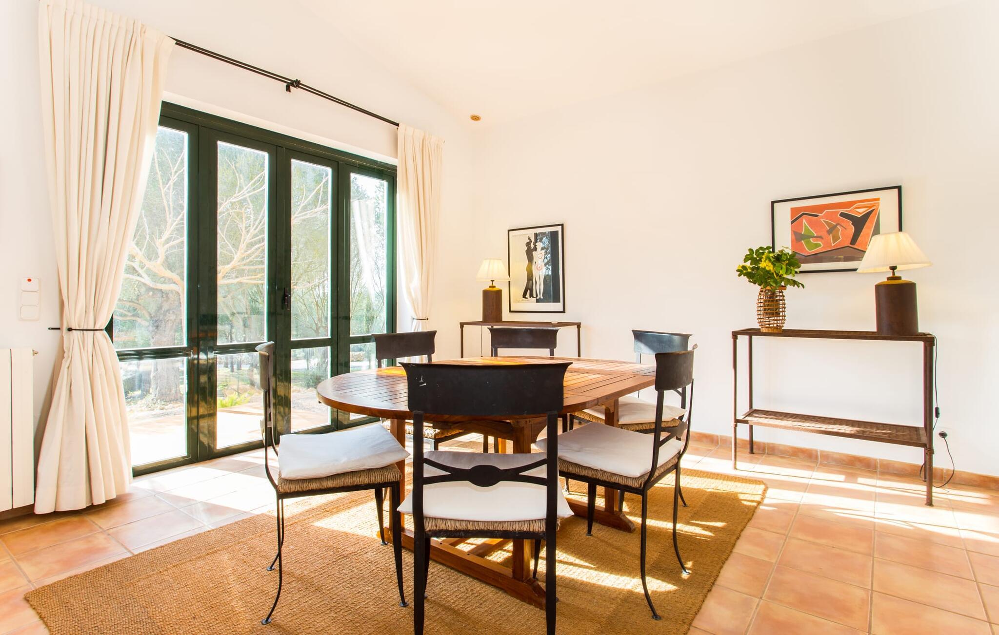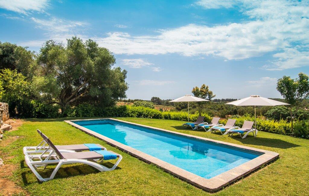 Die Villa „Es Gorg“ liegt in einer sehr ruhigen und idyllischen Lage im hübschen Osten Mallorcas – wo die sanften Hügel der Serra Levant eine liebliche mediterrane Küstenlandschaft bilden. Sie genießen den Luxus großer Privatsphäre, ohne während Ihres Aufenthalts von hohen Mauern oder Zäunen eingeengt zu sein. Ein malerischer Garten mit Obstbäumen und Rosen umgibt das Haus, der in seiner Fröhlichkeit mit den grünen Farben der Rasenflächen und dem Blau des mediterranen Himmels konkurriert. Der lange Pool liegt direkt vor dem Haus und ist durch eine kleine Gartentür zugänglich. Der 1,60 bis 2 m tiefe, mit kleinen blauen Mosaikkieseln geflieste Pool ist von Rasenflächen umgeben, die idyllische Ausblicke ins Grüne bieten. Genießen Sie die Aussicht bequem auf den sechs Sonnenliegen. Direkt am Haus laden Kies- und Fliesenflächen sowie schattige und sonnige Plätze zum Entspannen im Freien ein. Ob vor oder hinter dem Gebäude – hier findet jeder seinen perfekten Platz. Eingebaute Esstische verleihen den Sitzbereichen ein besonders eindrucksvolles Ambiente, um gemeinsam ein schönes Essen zu genießen. Für Ihr Auto gibt es einen Parkplatz vor dem Haus.