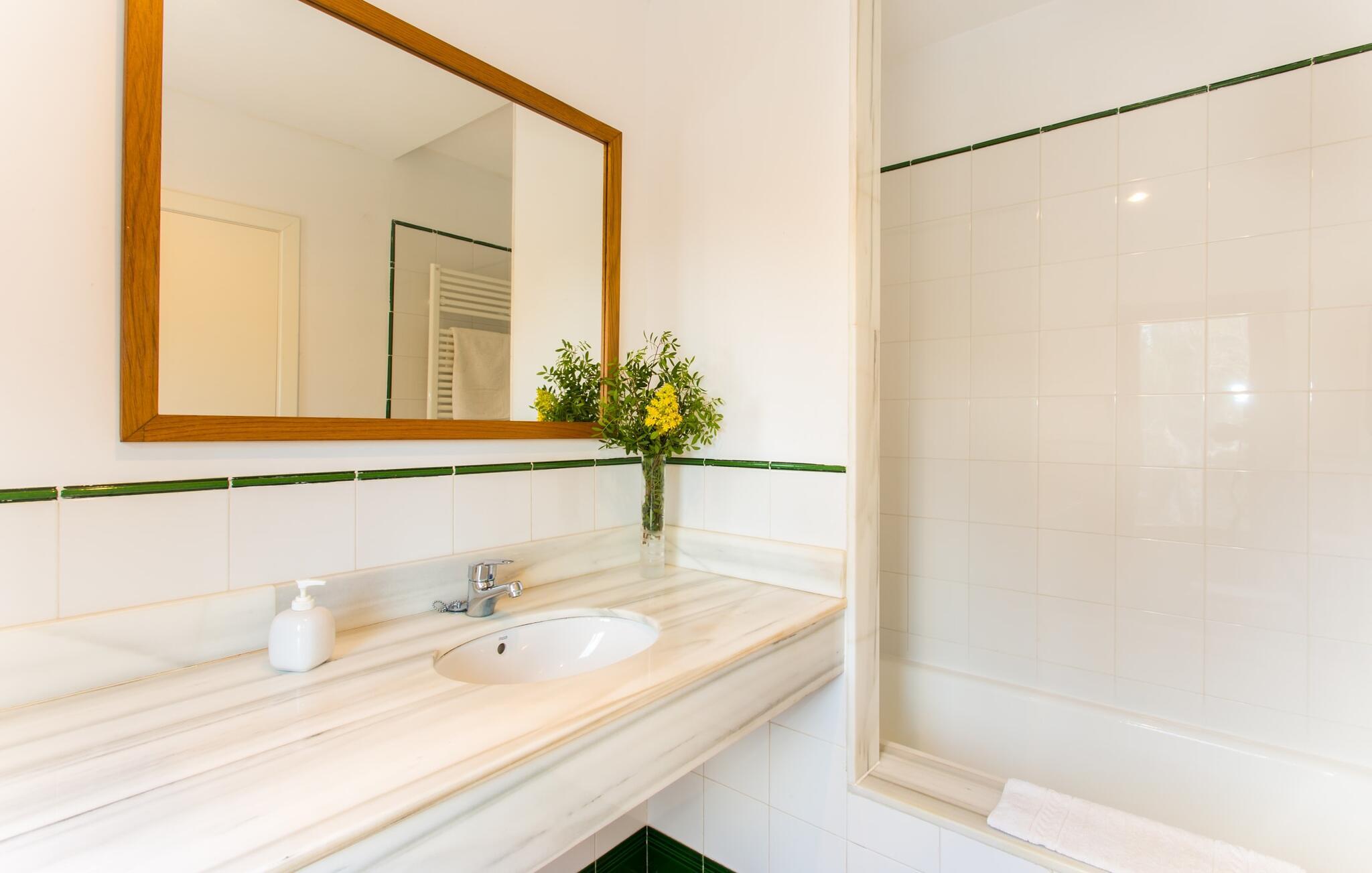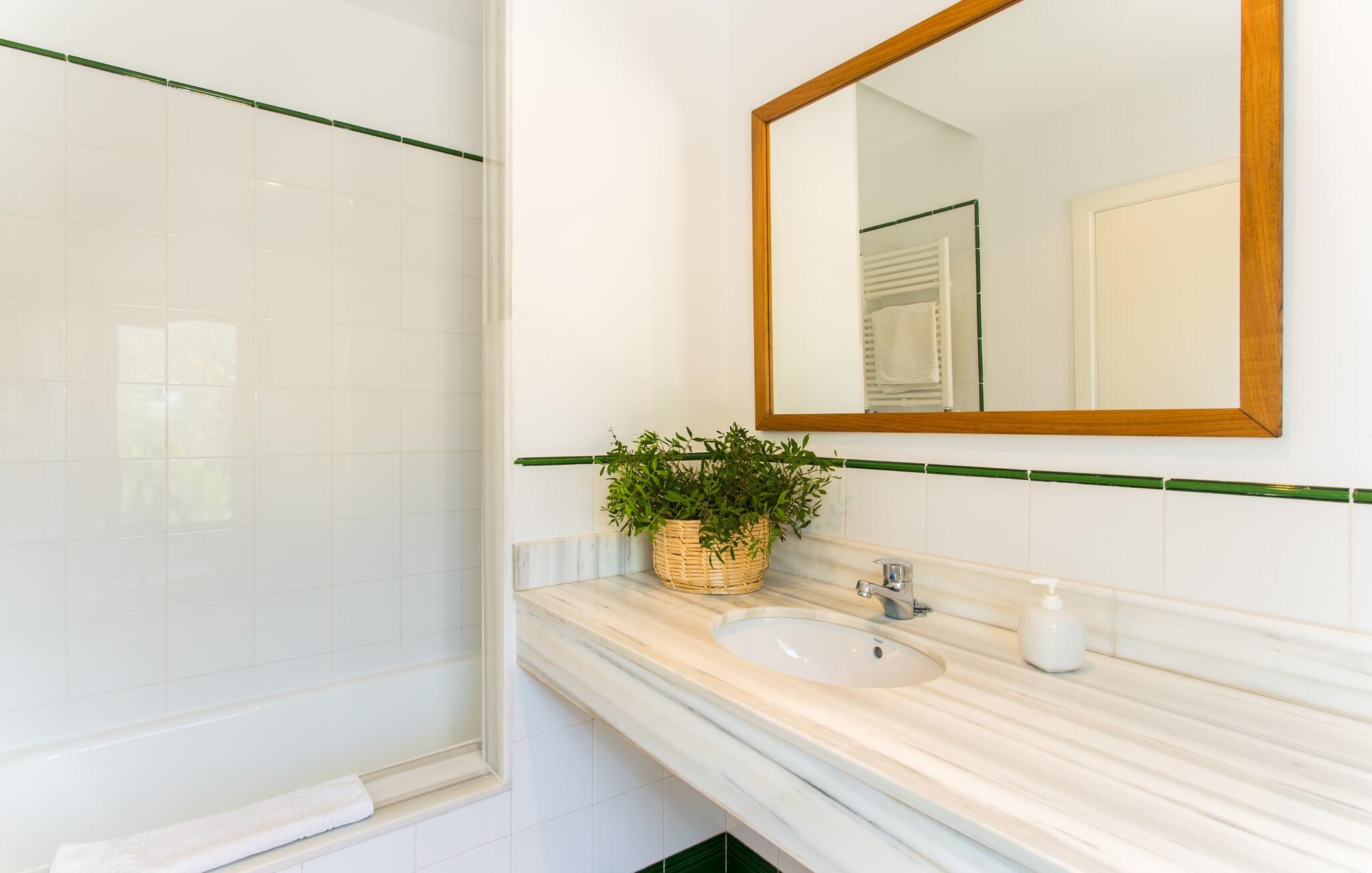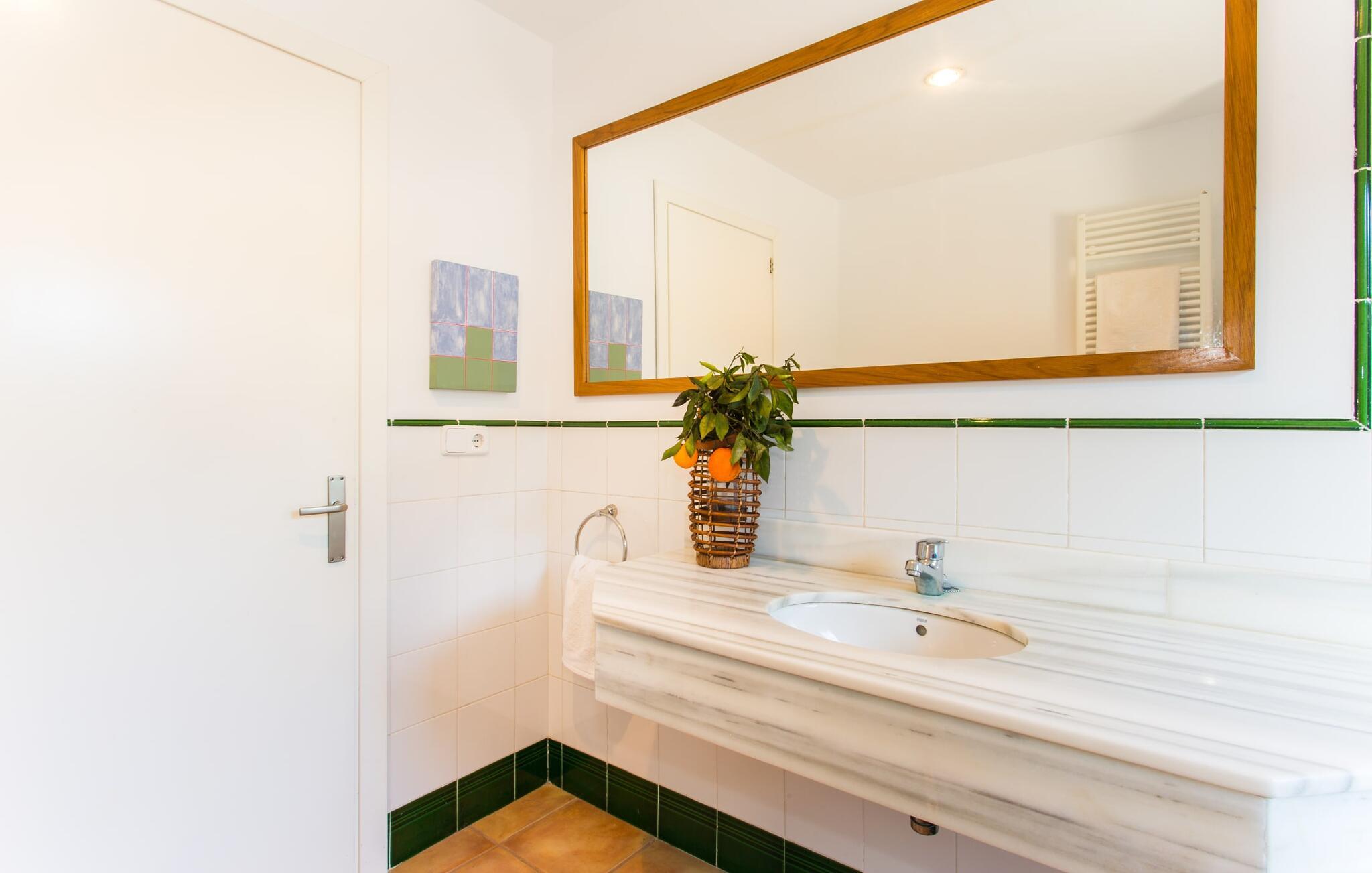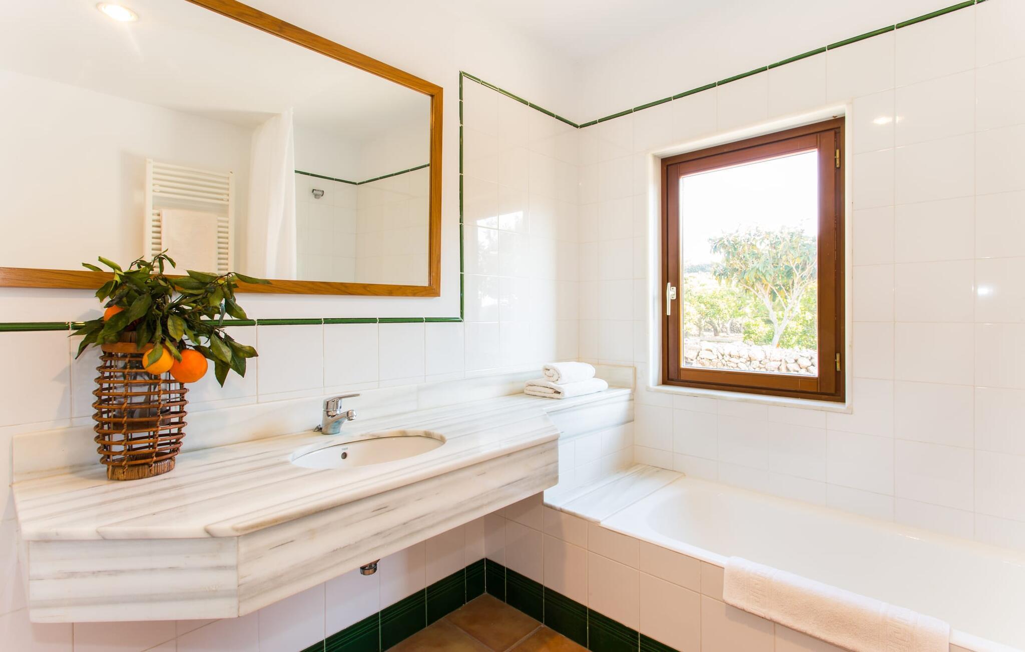 Die Villa „Es Gorg“ liegt in einer sehr ruhigen und idyllischen Lage im hübschen Osten Mallorcas – wo die sanften Hügel der Serra Levant eine liebliche mediterrane Küstenlandschaft bilden. Sie genießen den Luxus großer Privatsphäre, ohne während Ihres Aufenthalts von hohen Mauern oder Zäunen eingeengt zu sein. Ein malerischer Garten mit Obstbäumen und Rosen umgibt das Haus, der in seiner Fröhlichkeit mit den grünen Farben der Rasenflächen und dem Blau des mediterranen Himmels konkurriert. Der lange Pool liegt direkt vor dem Haus und ist durch eine kleine Gartentür zugänglich. Der 1,60 bis 2 m tiefe, mit kleinen blauen Mosaikkieseln geflieste Pool ist von Rasenflächen umgeben, die idyllische Ausblicke ins Grüne bieten. Genießen Sie die Aussicht bequem auf den sechs Sonnenliegen. Direkt am Haus laden Kies- und Fliesenflächen sowie schattige und sonnige Plätze zum Entspannen im Freien ein. Ob vor oder hinter dem Gebäude – hier findet jeder seinen perfekten Platz. Eingebaute Esstische verleihen den Sitzbereichen ein besonders eindrucksvolles Ambiente, um gemeinsam ein schönes Essen zu genießen. Für Ihr Auto gibt es einen Parkplatz vor dem Haus.