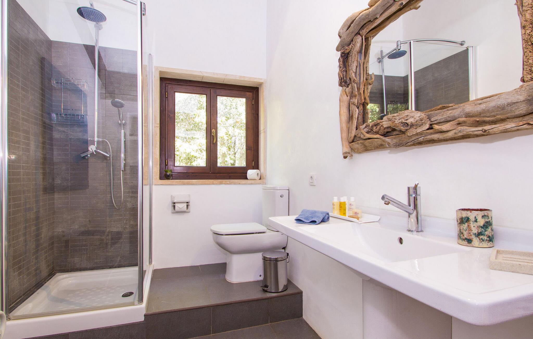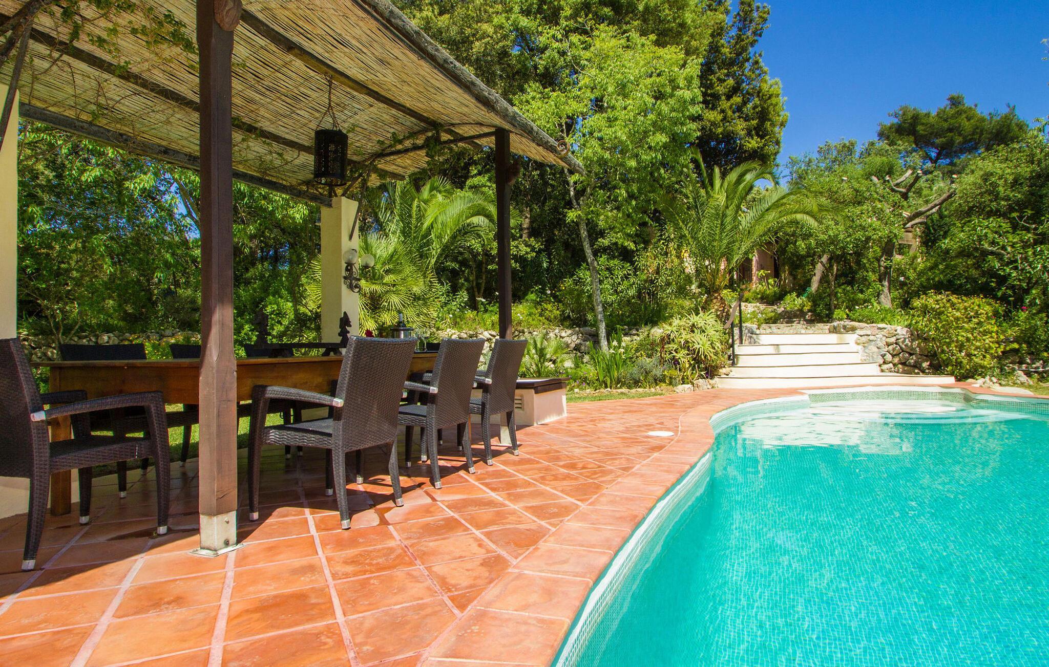 Die Finca Es Lloquet liegt in einem abgelegenen Waldgebiet, umgeben von einem üppigen Garten voller Palmen und einem Bio-Gemüsegarten. Weitläufige Rasenflächen bieten Platz für Kinder zum Spielen oder für Yoga und Meditation. Der XXL-Pool verfügt über Stufen, Sonnenliegen, Eine balinesische Liege und eine Bar im Freien bieten einen schattigen Essbereich, während Familien sich über gelegentliche Besuche von Victorias freundlichem Hund freuen können. Die Haushälterin, die auf der anderen Seite des Grundstücks wohnt, pflegt den Gemüsegarten und hilft den Gästen bei Bedarf.