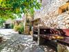 Von der Terrasse aus betreten wir die hübsche, offene Küchenzeile mit Kamin. Großzügig gestaltet finden wir in diesem Bereich alles, was wir für den täglichen Gebrauch benötigen, inklusive Mikrowelle, Toaster und Wasserkocher. Der massive Tisch in der Mitte eignet sich hervorragend zum gemeinsamen Essen im Innenbereich. Von hier aus gelangen Sie über ein paar Stufen nach unten in das außergewöhnliche Wohnzimmer mit Gewölbedecke. Warme Farben sowie Materialien aus Stein und Holz prägen die Atmosphäre. Ein Flachbildfernseher, zwei bequeme Sofas, ein weiterer Esstisch, sowie ein Ausgang zur Terrasse stehen hier zur Verfügung. Im Erdgeschoss befinden sich ein weiteres kleines Wohnzimmer, ein Schlafzimmer sowie ein Badezimmer mit Dusche. Im Obergeschoss befinden sich drei weitere Schlafzimmer sowie zwei Badezimmer mit Duschen. Die sehr individuell und mit viel Sinn für Ästhetik eingerichteten Schlafzimmer laden zu einer erholsamen Nachtruhe ein. Schlafen Sie entspannt und erholsam in einem bequemen Bett mit folgenden Maßen: vier von 0,90 x 1,90 m, eines von 1,40 x 1,90 m, sowie ein weiteres von 1,50 x 1,90 m. Hübsche Sichtbalkendecken, helle Wände und harmonisch eingearbeitete Bodenfliesen umrahmen das geschmackvolle Interieur stimmungsvoll. Auch die Badezimmer überzeugen mit individuellem, ansprechendem Design und hochwertiger Ausstattung. Moskitonetze, ein Fön und ein Bügeleisen sind im Haus vorhanden und müssen nicht von zu Hause mitgebracht werden.