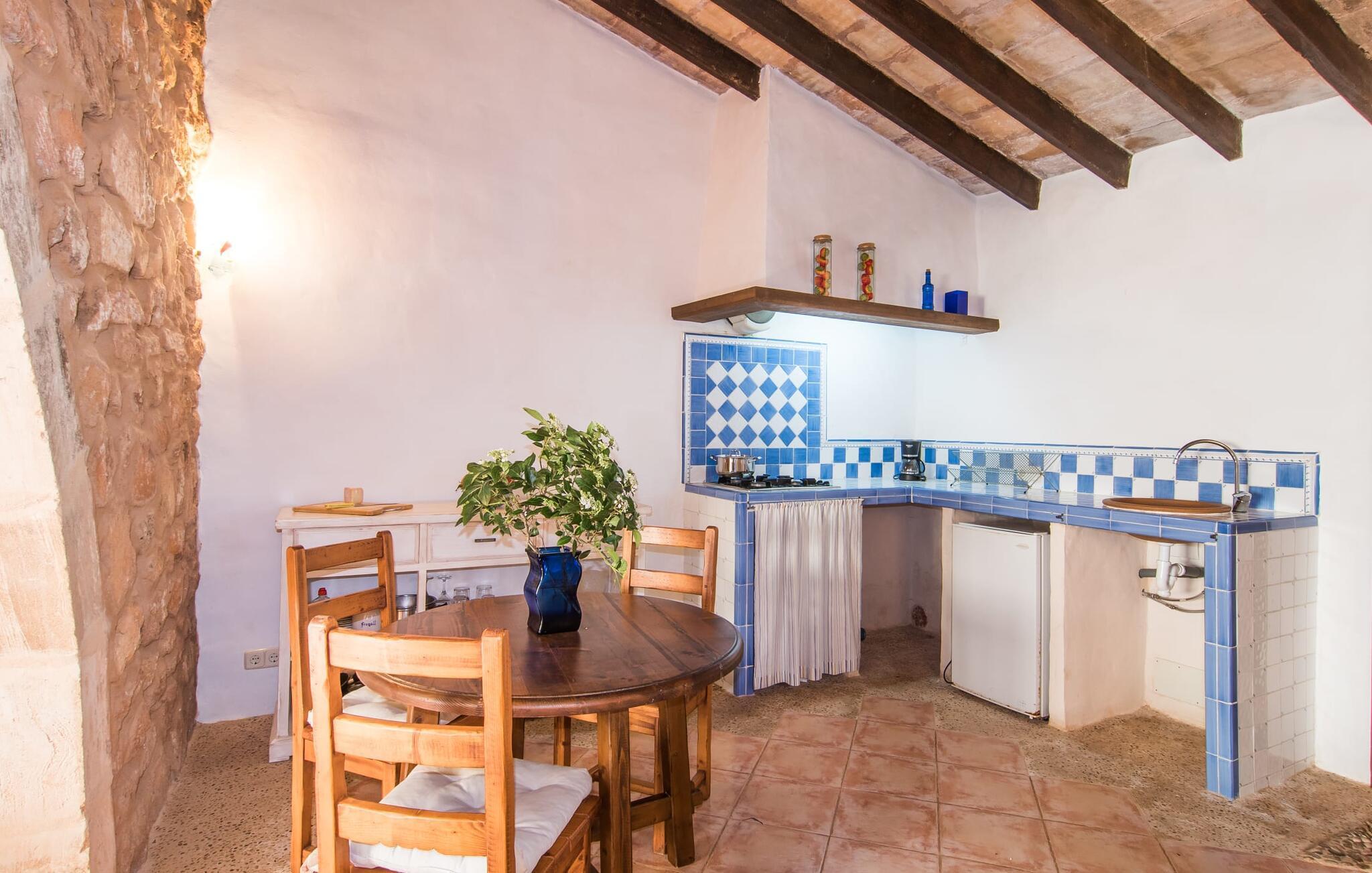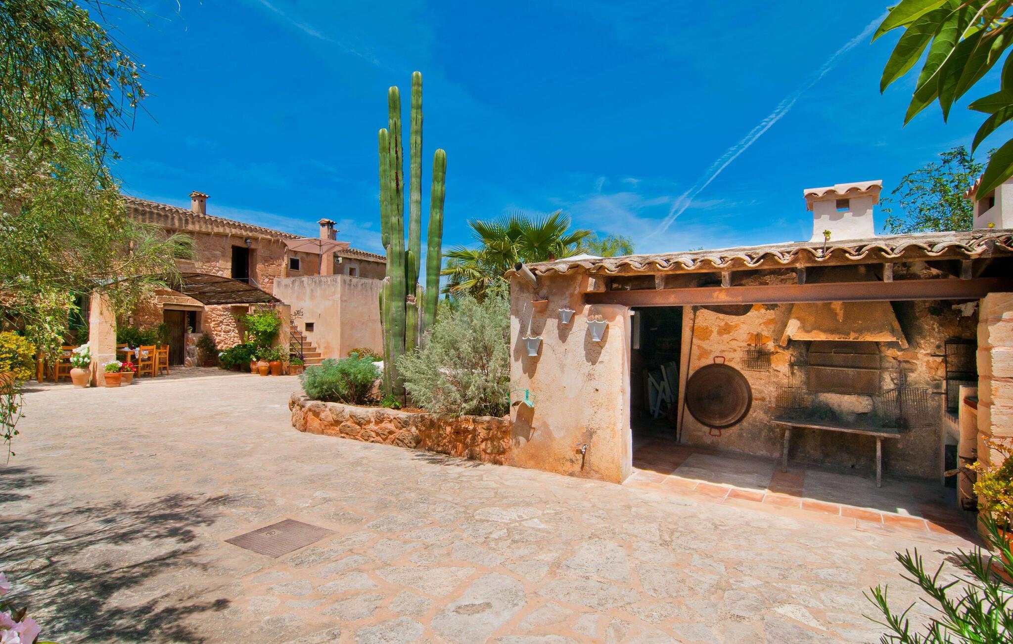 Historisches Anwesen auf rotem Boden, tierlieber Bauernhof, idyllische Mandelbaumvilla, komfortable und gesellige Agroturismo-Unterkunft: Es ist klar, dass diese Beschreibungen auf den roten Bauernhof „Es Rafal Roig“ mit seinem Haupthaus aus Naturstein und drei kleinen Nebenhäusern zutreffen Gebäude. Es gibt satte 350.000 m² üppiger Blumen- und Grünflächen zu entdecken, mit vielen Details, die Groß und Klein begeistern werden. Es gibt gemütliche Ecken, umgeben von Kakteen, Palmen, duftendem Oleander und unzähligen bepflanzten Terrakotta-Töpfen, Wasser aus dem hofeigenen Tiefbrunnen, Solarenergie sowie darin leben Meerschweinchen, Esel, Hühner, Gänse und Schildkröten eigenes Territorium. Während die Großen am 10 m langen, zentral gelegenen Pool entspannen, können die Kleinen im eigenen Pool hinter der Steinmauer planschen, den Sie von den Sonnenliegen aus wunderbar im Auge behalten können. Spielplätze mit großen und kleinen Rutschen, Sandkästen und Geräten für Ballspiele aller Art lassen keine Langeweile aufkommen und man kann auch bei der Landwirtschaft zusehen. Überall sind Stühle und Tische an sonnigen und schattigen Plätzen verteilt, an denen die Gäste ein Picknick machen oder sich unterhalten können. Das kleine Grillhäuschen, ein Original aus alten Zeiten, kann jeden Tag genutzt werden und teilt sich den Raum mit der Außentoilette und der Dusche.