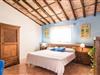 Jede Einheit hat ihren ganz eigenen Charme. Die 50 m² große Erdgeschosswohnung „Es Nord“ besticht durch den Natursteinbogen, der den Wohn- und Schlafbereich trennt und eine ganz besondere Raumästhetik schafft. Hier ist es sehr gemütlich mit hübschen Flusskieseln im Eingangsbereich, einem offenen Kamin in der Zimmerecke und einem Schaukelstuhl. Von den vielen Stunden in der Sonne können Sie sich auf der Couch gemütlich erholen und drinnen am Esstisch speisen. Auf dem vierflammigen Gasherd der weiß-blauen Küche lässt sich ganz einfach eine kleine Mahlzeit zubereiten. Das Bett misst 1,50 x 2 m und lässt dennoch viel Platz im Schlafzimmer, beispielsweise für ein Kinderbett. Das Badezimmer mit Tageslicht und Dusche ist mit seinen kleinen, roten Mosaiksteinen und den hellblauen Wänden ein echter Hingucker. Und wenn Ihnen der Wohnraum Ihres Privathauses nicht ausreicht, sollten Sie das gesamte Anwesen zu Ihrem blühenden Wohn-, Ess- und Spielzimmer im Freien machen.
