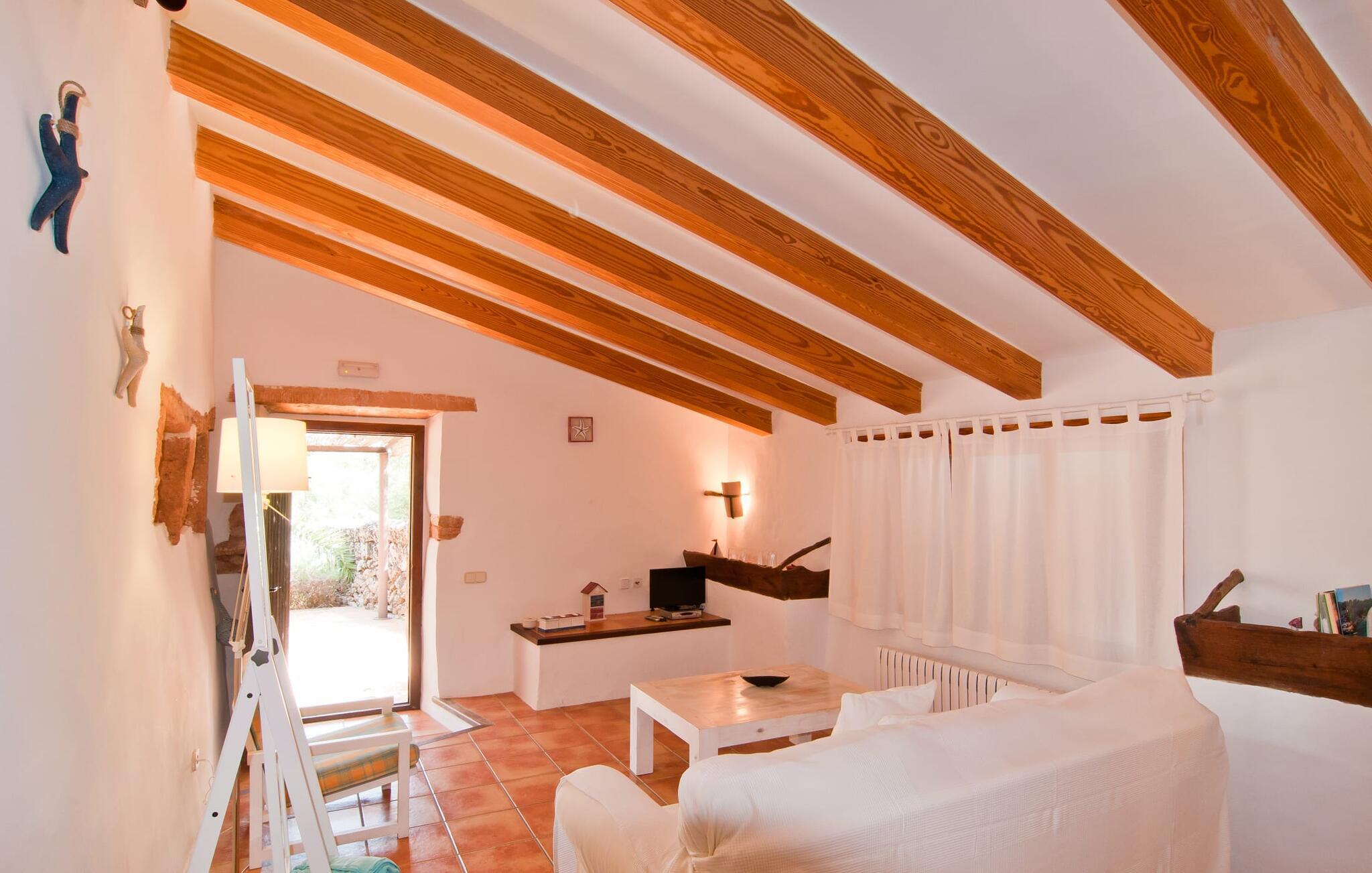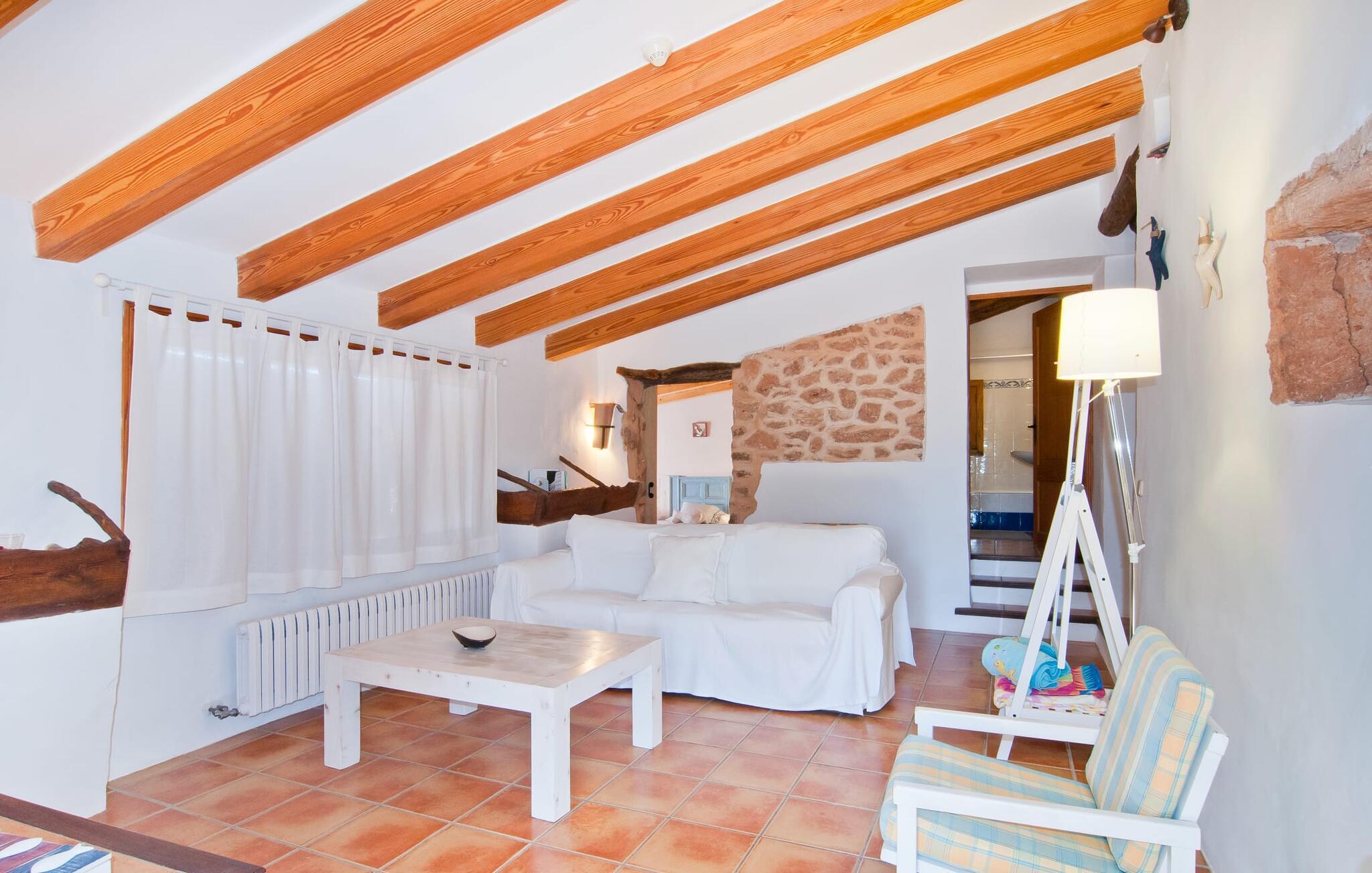 Jede Wohneinheit hat ihren eigenen Charme. Das ebenerdige „Es Saboal“ beherbergte einst, wie der Name schon sagt, die Ställe für Maultiere und Esel. Sie genießen 67 m² Wohnfläche sowie eine großzügige Terrasse und einen kleinen Gartenbereich, der malerisch von einer Natursteinmauer umgeben ist. Funktionalität und Gemütlichkeit prägen die angenehme Atmosphäre im Inneren. Natursteinelemente, alte Futtertröge und ein Türrahmen aus massivem Olivenholz schaffen ein einzigartiges und sehr wohnliches Ambiente. Für entspannte Urlaubstage stehen Ihnen ein Wohnzimmer und eine Küche, mit zweitem Eingang, zur Verfügung. Mit 4 Gaskochfeldern, einem Kühlschrank, Doppelspüle, einer Kaffeemaschine etc. sind Sie bestens ausgestattet, um Mahlzeiten zuzubereiten, sich optimal zu versorgen und bleiben so im Urlaub rundum unabhängig. Zwei Schlafzimmer, die durch eine Schiebetür getrennt sind , jeweils mit zwei 1 x 2 m großen Betten. Das Tageslichtbad mit typisch mallorquinischen Fliesen verfügt über eine praktische Duschwanne. Und wenn Ihnen 67 m² Wohnfläche nicht ausreichen, können Sie das gesamte Anwesen in Ihr blühendes Wohn-, Ess- und Spielzimmer im Freien verwandeln.