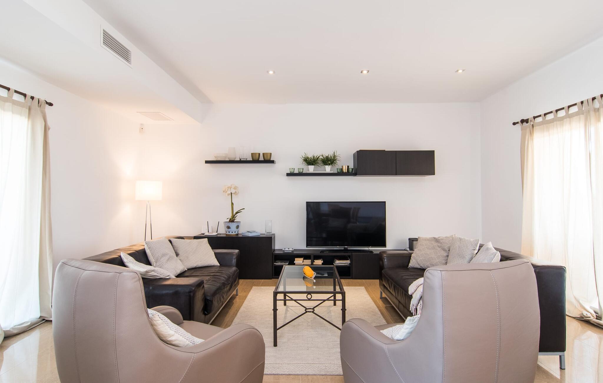 Die neuen Eigentümer haben das Innere der Villa aufpoliert und mit außergewöhnlichem Geschmack und Komfort eingerichtet: Der Stil ist hell und minimalistisch, weist aber helle Farbakzente an den Wänden auf, die Möbel sind elegant und komfortabel, der große Flachbildfernseher ist ein echter Hingucker, die Küche ist ein glänzendes Reich für Köche mit Side-by-Side-Kühlschrank und hochwertigen Elektrogeräten. Deckenleuchten sorgen dafür, dass die schönen Räumlichkeiten überall dezent ins rechte Licht gerückt werden. Das Obergeschoss ist ausschließlich den Urlaubsträumen vorbehalten, und diese dürfen nur rosa sein: Alle vier Doppelzimmer (mit Betten in 1,80 oder 1,60 x 2 m) verfügen über ein eigenes Badezimmer mit ebenerdiger Dusche und direktem Zugang zu der sonnige Balkon. Fußbodenheizung und Klimaanlage bringen den Raum auf Ihre persönliche Wohlfühltemperatur, sodass sich die Villa sowohl im Sommer als auch im Winter hervorragend für eine Auszeit eignet.
