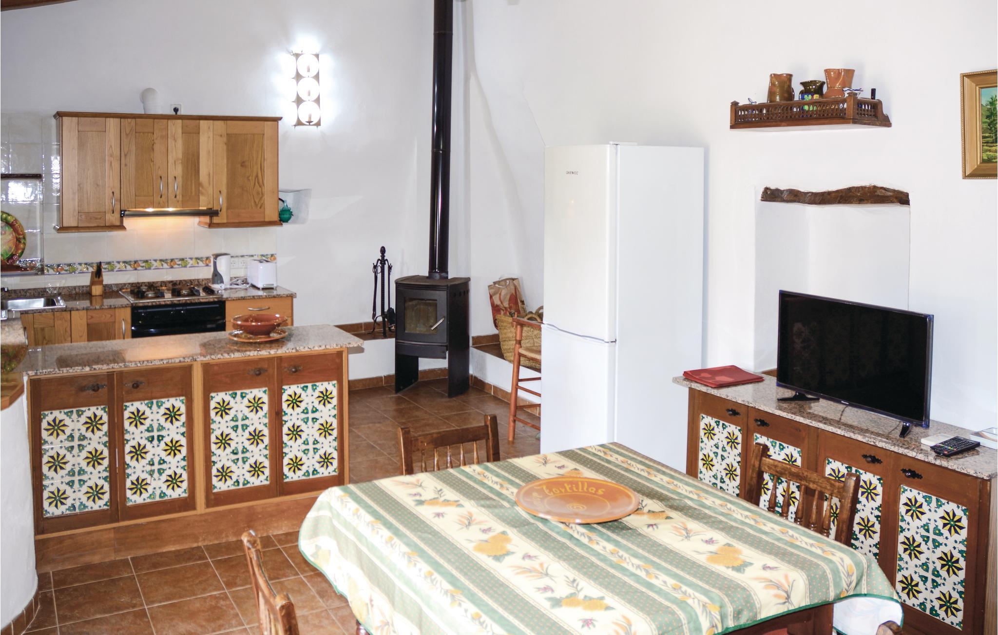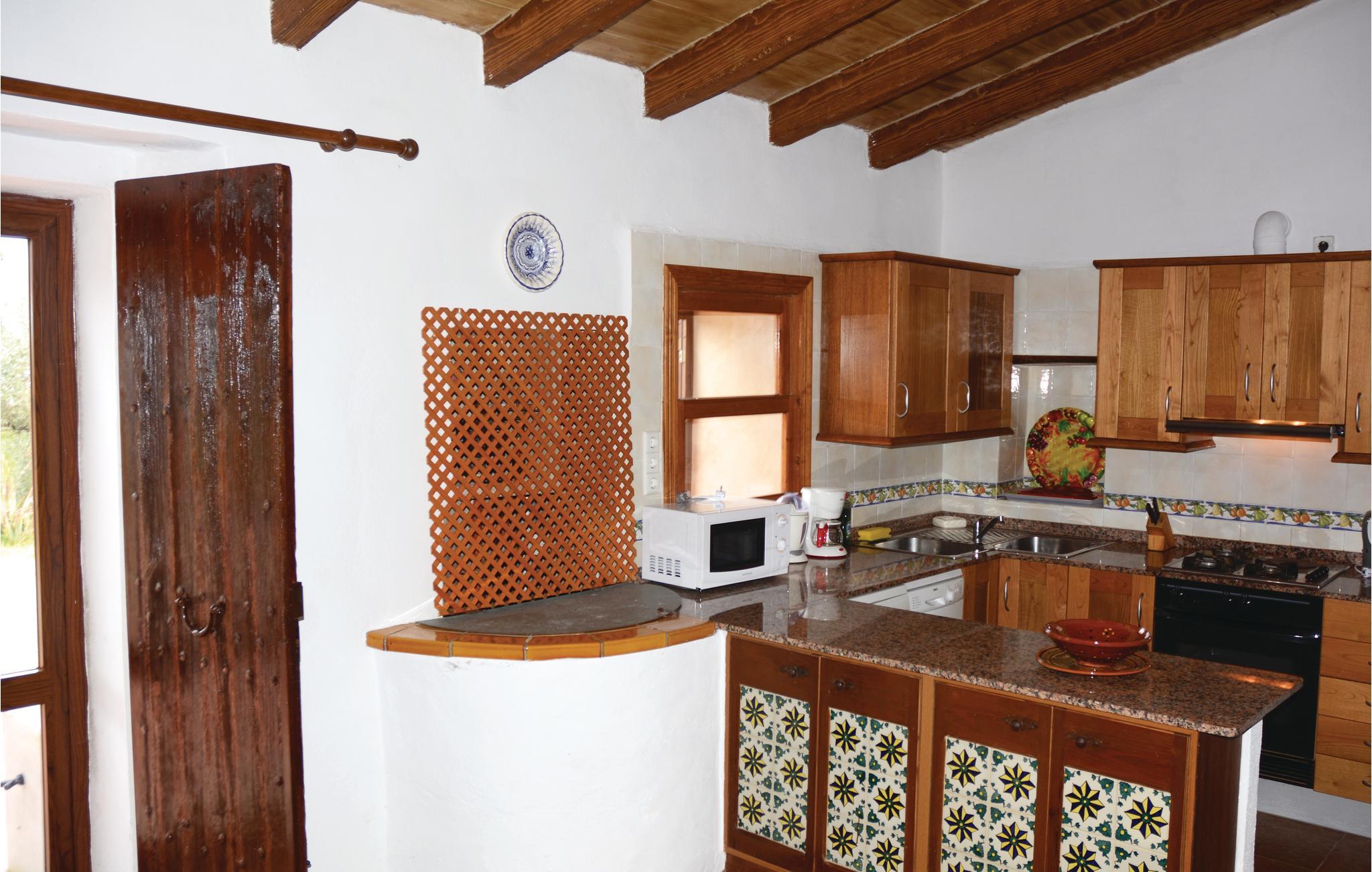 Diese einfache, aber charmante Bergfinca bietet eine ruhige Oase fernab vom Trubel des Alltags. Inmitten der beeindruckenden Natur der Tramuntana-Berge genießen Sie hier eine unvergleichliche Aussicht auf das Mittelmeer. Im Innenbereich erwartet Sie eine rustikale, gemütliche Einrichtung. Das Wohn- und Esszimmer ist mit traditionellen Holzmöbeln ausgestattet und bietet einen direkten Zugang zur Terrasse. Die offene Küche verfügt über die wichtigsten Geräte, um einfache Mahlzeiten zuzubereiten.