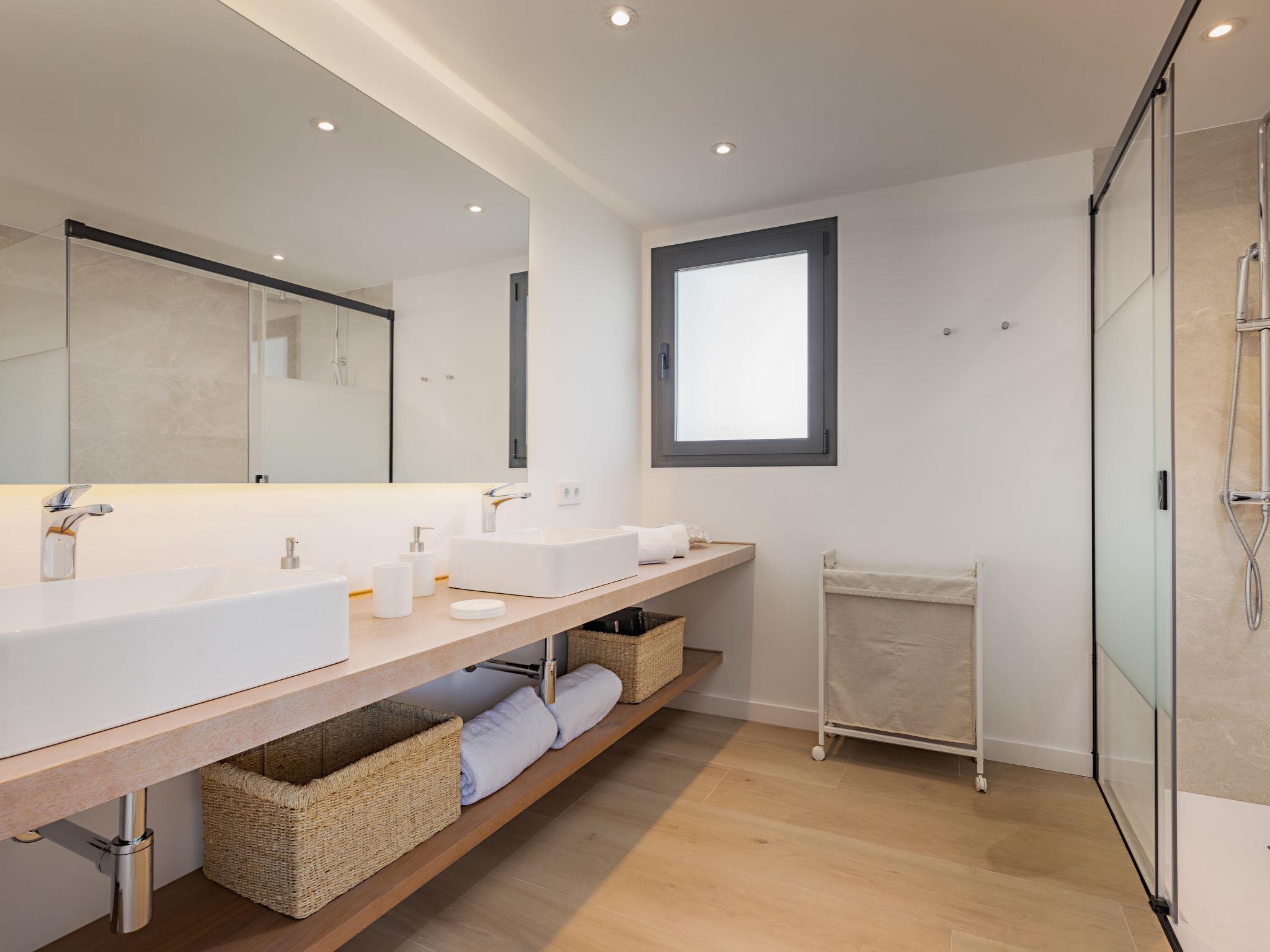 "Casa Bonita", 4-Zimmer-Villa 180 m2 auf 3 Stockwerken. Zweckmässig eingerichtet: Wohn-/Esszimmer mit Digital-TV, Klimaanlage, Ventilator und Warmluftheizung. Ausgang zum Gartensitzplatz, zum Schwimmbad. Offene Küche (Backofen, Geschirrspüler, 4 Induktionskochplatten, Toaster, Wasserkocher, Mikrowelle, elektrische Kaffeemaschine, Kapseln für die Kaffeemaschine (Dolce Gusto) extra) mit Bar. Ausgang zur Terrasse. Sep. WC. Obergeschoss: 1 Zimmer mit begehbarem Kleiderschrank mit 1 franz. Bett (180 cm, Länge 200 cm), Bad/WC, Doppelwaschbecken, Digital-TV, Klimaanlage und Warmluftheizung. Ausgang zum Balkon. 1 Zimmer mit 2 Betten (90 cm, Länge 200 cm), Klimaanlage und Warmluftheizung. Ausgang zur Terrasse. 1 Zimmer mit 2 Betten (90 cm, Länge 200 cm), Klimaanlage und Warmluftheizung. Dusche/WC, Doppelwaschbecken. 2 Balkone, 2 Terrassen. Terrassenmöbel, Gartengrill, Liegestühle (6), Loggia. Sicht auf das Schwimmbad und den Garten. Zur Verfügung: Waschmaschine, Wäschetrockner, Bügeleisen, Kinderhochstuhl, Babybett, Haartrockner. Internet (WLAN, gratis). Bitte beachten: Nichtraucher-Haus. Maximal 1 Haustier/Hund erlaubt. TV nur ES. Rauchmelder, Feuerlöscher. VUT/MA/90460 // Reg. Nr.: ESFCTU0000290370001515740000000000000000VUT/MA/904600