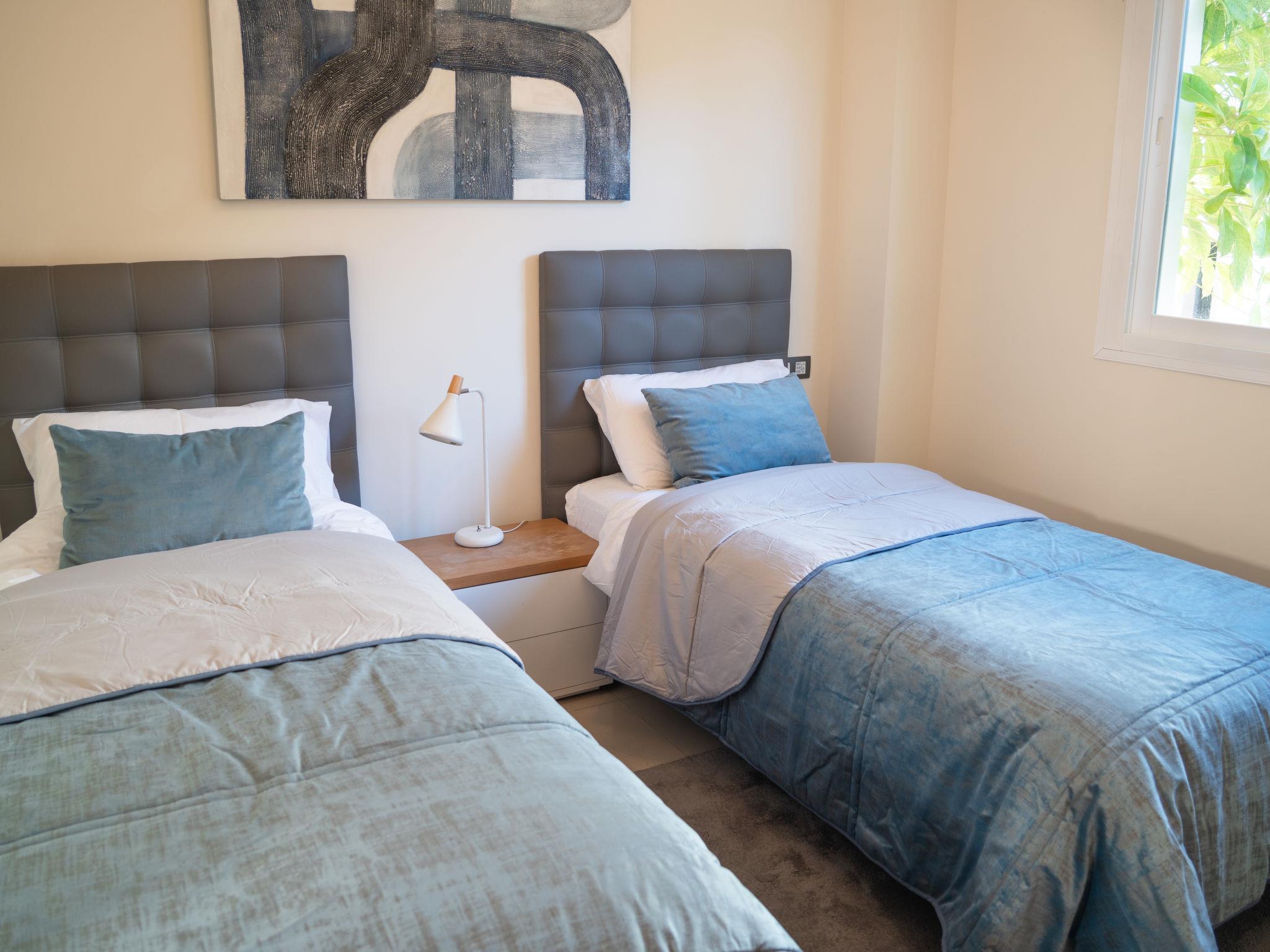 "Cortijo de Mar - Sunrise", 3-Zimmer-Wohnung 96 m2, im ebenerdigen Untergeschoss. Objekt geeignet für 4 Erwachsene. Geräumig und hell, komfortabel und modern eingerichtet: Wohn-/Esszimmer mit Digital-TV, Klimaanlage und Warmluftheizung. Ausgang zur Terrasse. 1 Zimmer mit 1 franz. Bett (180 cm, Länge 190 cm), Bad/WC und Sprudelbad (privat) Klimaanlage und Warmluftheizung. 1 Zimmer mit 2 Betten (90 cm, Länge 190 cm), Klimaanlage und Warmluftheizung. Küche (Backofen, Geschirrspüler, 4 Glaskeramikplatten, Toaster, Wasserkocher, Mikrowelle, elektrische Kaffeemaschine, Kombinationsmikrowelle). Dusche/WC, Hydromassage-Dusche. Gartensitzplatz 75 m2. Liegestühle (2). Zur Verfügung: Waschmaschine, Safe, Bügeleisen, Kinderhochstuhl, Babybett, Haartrockner. Internet (WLAN, gratis). Parkplatz Nr. 156. Bitte beachten: Nichtraucher-Unterkunft. VUT/MA/90704 // Reg. Nr.: ESFCTU0000290370004876420000000000000000VUT/MA/907043