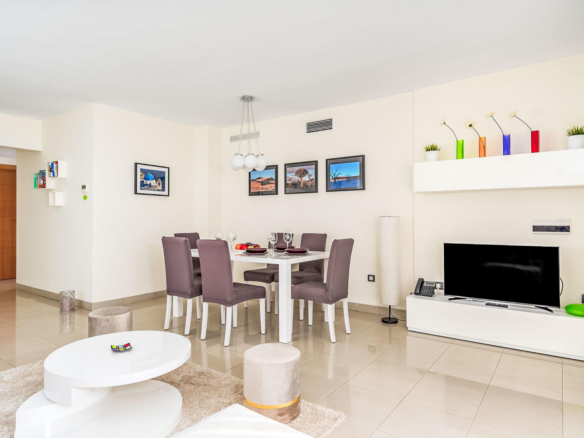 "Cortijo del Mar - Coral Nest", 4-Zimmer-Wohnung 129 m2 auf 2 Stockwerken, im Dachgeschoss. Geräumig und hell, komfortabel und schön eingerichtet: Wohn-/Esszimmer mit Digital-TV. Ausgang zur Terrasse. 1 Zimmer mit 2 Betten (90 cm, Länge 200 cm). 1 Zimmer mit 1 franz. Bett (180 cm, Länge 200 cm). Küche (Backofen, Geschirrspüler, 4 Glaskeramikplatten, Toaster, Wasserkocher, Mikrowelle, Tiefkühler, elektrische Kaffeemaschine). 2 Bäder/WC. Obergeschoss: 1 Zimmer mit 1 franz. Bett (180 cm, Länge 200 cm), Bad/WC (privat). Ausgang zur Terrasse. Terrasse. Terrassenmöbel. Seitliche Sicht auf das Meer und das Schwimmbad. Zur Verfügung: Waschmaschine, Bügeleisen, Kinderhochstuhl, Babybett, Haartrockner. Internet (WLAN, gratis). Parkplatz Nr. 68. Bitte beachten: Nichtraucher-Unterkunft. VUT/MA/91645 // Reg. Nr.: ESFCTU0000290370004883280000000000000000VUT/MA/916450