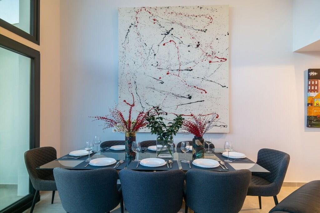 Wenn Sie die wahre Erfahrung eines Urlaubs im sonnenverwöhnten Südspanien machen wollen, wählen Sie einfach unsere wunderschöne Villa mit 5 Schlafzimmern (300m2). Sie können sich in unserem gepflegten Garten (1000m2), der von einer beeindruckenden Pinie und wunderschönen Palmen dominiert wird, entspannen, auf den Sonnenliegen auf der mit Marmor gefliesten Terrasse liegen, die südliche Sonne rund um den beheizten Pool (10mx5m) mit Jacuzzi (2,4mx2,4m) genießen, eine unvergessliche Zeit mit Ihrer Familie und Freunden verbringen, indem Sie den Gas- oder Holzkohlegrill und das mittlere Feuer auf einer vielseitigen Terrasse (120m2) nutzen, die sich an jedes Wetter anpassen kann. Der außergewöhnliche 4 Meter lange Esstisch aus massivem Holz, der von einem örtlichen Holzschnitzer nach Maß gefertigt wurde, bietet Platz für 18 Gäste. Die gesamte Außeneinrichtung wurde sorgfältig ausgewählt, um den Raum auszufüllen und jede Menge Komfort zu bieten. Und es gibt noch mehr! ~ Innen Diese wunderschöne Villa (300m2), die auf zwei Ebenen gebaut wurde, ist mit gutem Geschmack entworfen und stilvoll eingerichtet. Der Haupteingang führt in eine Halle, die Zugang zu den verschiedenen Ebenen der Villa gibt. Sie werden sofort die schönen hölzernen Accessoires bemerken: Türrahmen, Türen, Tische, Arbeitsplatten und Waschbeckenhalter. Sie sind alle von einem lokalen Künstler handgefertigt und unterstreichen das exquisite Design der Villa. Im Erdgeschoss befinden sich ein geräumiges und helles Wohnzimmer mit einer doppelten Deckenhöhe, drei Schlafzimmer, die Küche und eine Waschküche. Im ersten Stock befinden sich zwei beeindruckende Schlafzimmer mit eigenem Bad und schöner Aussicht. Das spektakuläre Wohnzimmer hat eine doppelte Deckenhöhe, große Fenster, einen schönen Holzkamin, der direkt vor der Sitzecke mit 3 bequemen Ledersofas und einem großen Couchtisch aus Holz steht. Es lädt einfach zum gemütlichen Beisammensein ein! Sie haben hier einen 55-Zoll-Fernseher von Samsung mit direkter Internetverbindung und einer Soundbar, mit der Sie sich mit jeder Streaming-App verbinden können. Ein Essbereich für 8 Personen bietet einen schönen Blick auf den Garten. Der Glastisch bietet bequem Platz für acht Gäste. Vom Wohnzimmer aus haben Sie durch eine große Glasschiebetür Zugang zum Garten. Die Küche ist komplett ausgestattet mit Backofen, Mikrowelle, Ceranfeld, Kühlschrank, Gefrierschrank, Wasserkocher, Toaster, Kaffeemaschine, Mixer und Geschirrspüler. Sie haben kochendes Wasser für Tee in der Küche und einen Filter für Trinkwasser. Sie haben hier auch einen 32-Zoll-Fernseher. Die Küche hat einen Frühstückstisch für 4 Personen und bietet Zugang zur Waschküche (Waschmaschine, Trockner, Waschbecken). Vom Flur aus haben Sie Zugang zu einer Service-Toilette mit Waschbecken, Spiegel und einem Fenster. Die beiden Hauptschlafzimmer im Erdgeschoss teilen sich ein Familienbadezimmer und können als separate Wohnung genutzt werden, so dass Sie, wenn Sie mit Freunden verreisen, die nötige Privatsphäre genießen können. Das erste Schlafzimmer hat ein großes Doppelbett mit Holzrahmen (180 cm), Nachttische mit Lampen, einen Tisch für den Laptop, einen 50-Zoll-Fernseher, einen Spiegel und große Kleiderschränke mit Licht und Spiegel. Das zweite Schlafzimmer hat zwei Einzelbetten (200cmx90cm) mit einem Nachttisch, einer Lampe, einem Tisch für den Laptop, einem 50-Zoll-Fernseher und großen Kleiderschränken. Es bietet auch einen Ausgang zum Hof. Beide Schlafzimmer haben Moskitonetze an den Fenstern. Beide Schlafzimmer haben einen Ausgang in den Garten. Zwischen den beiden Schlafzimmern befindet sich ein voll ausgestattetes Badezimmer mit einer begehbaren Duschkabine, einer Regenkopfdusche, einem Doppelwaschbecken, einem Spiegel und einem Fenster. Um in das Service-Schlafzimmer zu gelangen, müssen Sie ein paar Stufen hinuntergehen. Dieses Schlafzimmer hat ein Doppelbett (150cmx200cm), Nachttische mit Lampen, einen Holztisch für einen Laptop, einen 50-Zoll-Fernseher, einen Spiegel und einen Einbauschrank. Die Fenster sind mit Moskitonetzen versehen und bieten einen Blick auf den Hof. Das eigene Badezimmer hat eine begehbare Duschkabine, ein Waschbecken, eine Toilette und einen Spiegel. Auf der ersten Etage befindet sich das vierte Schlafzimmer mit zwei Einzelbetten (90cmx200cm), zwei Nachttischen mit Lampen und großen Einbauschränken. Das eigene Badezimmer ist mit einer begehbaren Dusche mit Regenbrause, einem Waschbecken, einem Spiegel und einem Fenster ausgestattet. Ein paar Stufen nach oben gelangt man in das Hauptschlafzimmer mit einem beeindruckenden Kingsize-Bett (180 cm x 200 cm) mit einem handgefertigten Holzrahmen. Es gibt Nachttische mit Lampen, ein bequemes Sofa, einen Tisch für den Laptop, einen Spiegel, einen 32-Zoll-Fernseher, einen kleinen Tisch und Fenster, die den Blick auf den Hof und die Siedlung freigeben. Das eigene Badezimmer hat eine Badewanne, eine begehbare Dusche, Fenster, ein Doppelwaschbecken auf einem Holzständer und einen großen Spiegel. Beide Schlafzimmer im ersten Stock haben Moskitonetze an den Fenstern. Alle Fernseher sind von Samsung und verfügen über verschiedene Apps zum Streamen. Das Glasfasernetz garantiert Ihnen eine schnelle und zuverlässige Internetverbindung. ~ Terrassen/Garten Bei dem herrlichen Wetter in Marbella werden Sie sicher die meiste Zeit im 1000 m2 großen Garten oder auf der 120 m2 großen Terrasse verbringen oder einfach nur am Pool (10m x 5m) mit Jacuzzi (2,4m x 2,4m) liegen. Das Outdoor-Musiksystem, das Sie über Streaming-Apps von Ihrem Telefon aus steuern können, lädt Sie ein, nach draußen zu gehen und die Seele baumeln zu lassen. Der Garten dieser Villa ist ein gepflegter, aber sehr naturnaher Bereich. Er verfügt über Terrassen mit Marmorfliesen, aber auch über eine beeindruckende Pinie und Palmen, unter denen Sie den wahren Charme der südspanischen Flora genießen können. Hier haben Sie verschiede