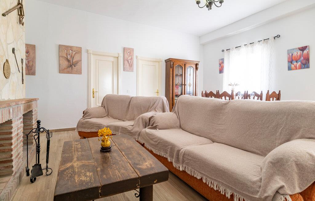 Das Haus bietet einen großzügigen Wohnbereich, der zum Verweilen einlädt. Machen Sie es sich auf den bequemen Sofas bequem und verbringen Sie hier gesellige Abende mit der ganzen Familie. Der Essbereich ist ideal, um gemeinsam die Mahlzeiten zu genießen, die Sie in der gut ausgestatteten Küche zubereiten können. Die Küche selbst bietet viel Platz und moderne Ausstattung, um Ihre Kochkünste voll auszuleben. Um Ihren Aufenthalt noch unvergesslicher zu machen, steht Ihnen eine große, authentische Paella-Pfanne zur Verfügung, die sich perfekt für die Zubereitung einer traditionellen spanischen Paella eignet. Nutzen Sie den Grillbereich für ein geselliges Barbecue im Freien und genießen Sie dabei den weiten Blick über die umliegenden Felder. Lassen Sie den Tag auf der Terrasse ausklingen, während die Sonne über der andalusischen Landschaft untergeht.