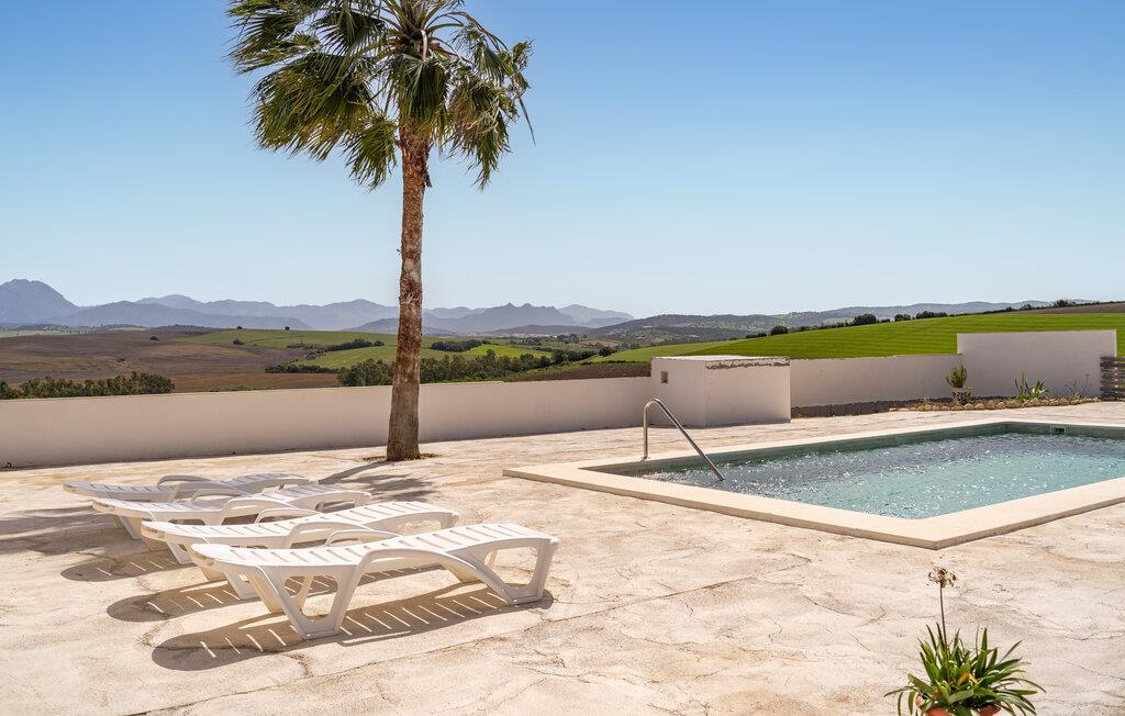 Verbringen Sie einen erholsamen Urlaub in diesem idyllischen Ferienhaus nahe Arcos de la Frontera, einem der schönsten weißen Dörfer Andalusiens. Genießen Sie die Ruhe und Abgeschiedenheit, während Sie auf den gemütlichen Sonnenliegen am Pool entspannen. Beginnen Sie Ihren Tag mit einem Sprung ins erfrischende Wasser oder genießen Sie den Blick auf die umliegende Landschaft von der Terrasse aus.