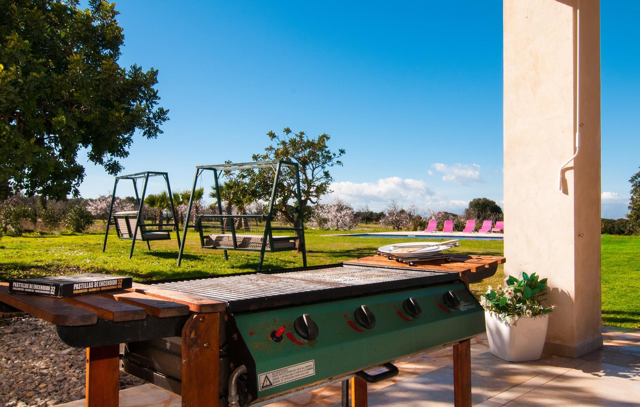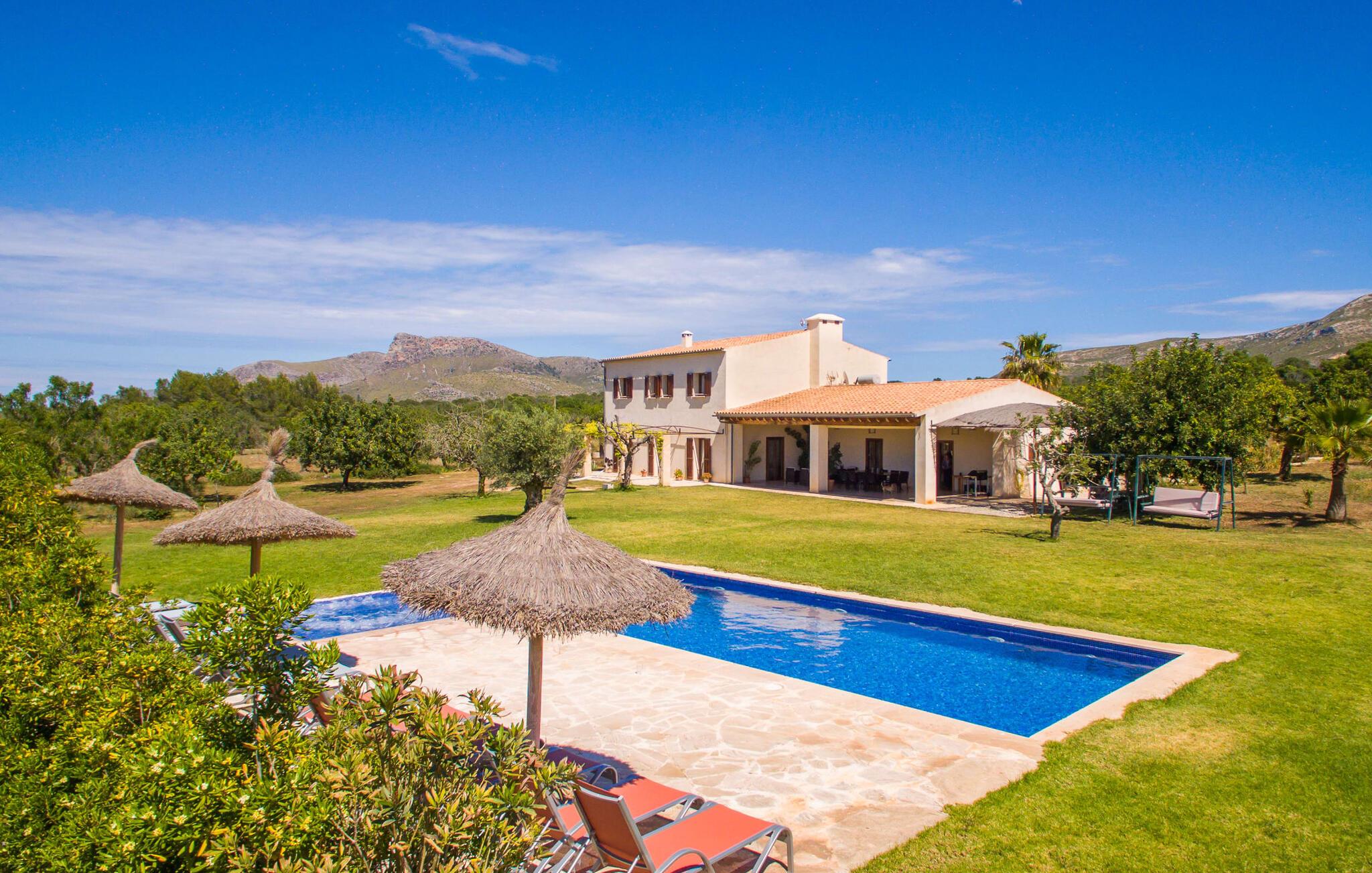 Das satte Grün der üppigen mediterranen Landschaft, das tiefe Blau des Himmels und des Pools, die violetten Sonnenliegen, eine glatt verputzte, erstklassige Villa umgeben von Olivenbäumen – willkommen in der fantastischen Villa „Febrer“! Die Villa und ihr Grundstück bieten einer größeren Reisegruppe ein entsprechend großzügiges Feriendomizil mit hervorragender Ausstattung. Ob Sie hierher gekommen sind, um sportlichen Hobbys wie Wandern oder Radfahren nachzugehen oder mit Ihrer großen Familie oder Freunden einen Urlaub in der Natur und am Meer zu verbringen – hier sind Sie richtig, und das alles in Kombination mit einem milden mediterranen Klima . Umgeben von Palmen und Oliven liegt die Villa eingebettet in einem großen, geschützten Waldgebiet in einer ländlichen Gegend. Auf einem riesigen Privatgrundstück von 38.000 m² können Sie die Ruhe und Stille des Ortes genießen und das ursprüngliche Mallorca erleben.