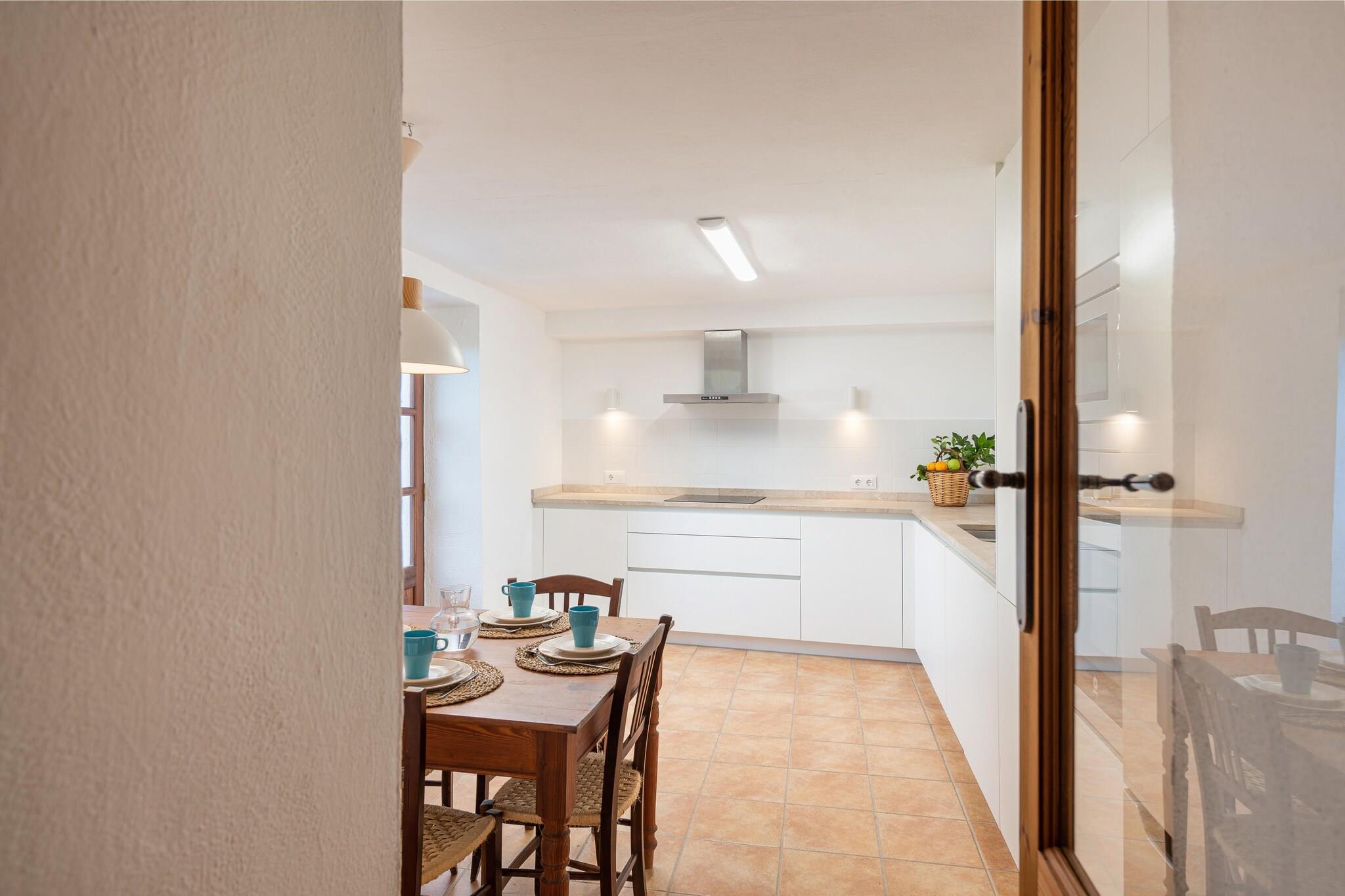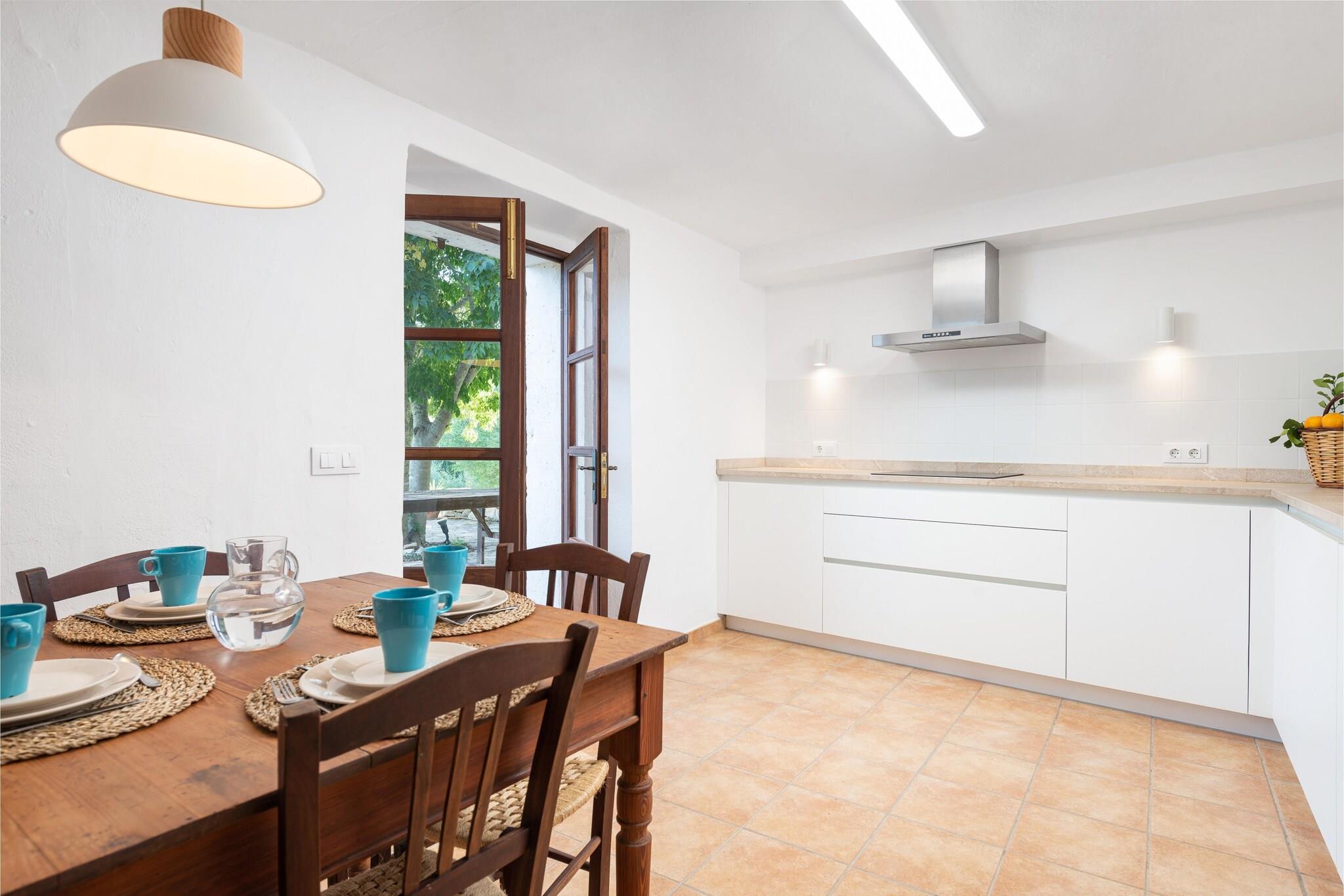 Genießen Sie den mallorquinischen Sommer in dieser gemütlichen Finca auf dem Lande, mit Blick auf die Berge. Auf der herrlichen Terrasse, die von Obstbäumen umgeben ist, können Sie sich auf den einer der 4 Sonnenliegen entspannen oder Sie decken den Tisch im Essbereich im Freien und genießen ein tolles Dinner in der warmen Sommerluft. Das Landhaus ist allein stehend, hat aber einige Nachbarn. Die Räume verteilen sich über 2 Etagen. Von der Terrasse aus gelangt man in ein fantastisches Wohn-Esszimmer mit Smart TV und Holzofen, perfekt für gemeinsame Stunden. Auf der gleichen Etage finden Sie eine voll ausgestattete Küche mit allen notwendigen Utensilien, einem Induktionskochfeld und Elektroofen. Hier gibt es einen 2ten Esstisch für ein schnelles Frühstück oder den Kaffee am Nachmittag. Ein komplettes Badezimmer mit Dusche auf dieser Etage, ist für alle Bewohner zugänglich. Im Erdgeschoss gibt es ein klimatisiertes Schlafzimmer mit Doppelbett und TV (spanische Kanäle). Eine Treppe führt in das Obergeschoss, wo sich ein weiteres Schlafzimmer befindet. Dieses Zimmer hat ein eigenes Bad mit Dusche. Ein Ventilator und ein Heizkörper stehen Ihnen bei Bedarf zur Verfügung. Es gibt eine Waschmaschine, ein Bügeleisen und ein Bügelbrett. Auf Anfrage können wir auch ein Kinderbett und einen Hochstuhl zur Verfügung stellen, wenn Sie mit Ihrem Baby reisen. Im kleinen Dorf Felanitx, auf Mallorca, gibt es das ganze Jahr über ein großes Angebot an Aktivitäten. Der überwiegend von einheimischen bewohnte Ort ist für seine Weinproduktion bekannt und nicht überlaufen. Das macht ihn ideal, um die mallorquinische Kultur näher kennen zu lernen. Wir empfehlen Ihnen, einige der Wanderwege zu erkunden, und wenn Sie den Strand mögen, fahren Sie nach Cala d'Or, das nur 10 km entfernt ist. Bitte beachten Sie, dass die Klimaanlage nur von 21 Uhr bis 9 Uhr verfügbar ist. Eventuelle Nebenkosten müssen beim Anbieter nachgefragt werden. Haustiere sind verboten. Partys oder ähnliche Veranstaltungen sind nicht gestattet. Es gibt Freiluftparkplätze für 4 Autos. Entfernungen Strand: 10.2 km - Caló des Pou Flughafen: 49.6 km - Aeropuerto de Palma de Mallorca Golfplatz: 7.8 km - Vall d'Or Golf Ortsmitte: 3.8 km - Calonge Bahnhof: 20.4 km - Estación de Manacor Bushaltestelle: 1.3 km - Es Carritxó 2 Fähre: 60.1 km - Ferry Baleária Krankenhaus: 8.2 km - Centro de Salud Felanitx Touristen Lizenz: ETV/7986Einheitsregister: ESFCTU00000700800079543100000000000000000000ETV/79866Auf den Balearen gibt es eine Touristensteuer, die Ecotasa genannt wird. Diese Steuer muss vom Gast bezahlt werden. Der zu zahlende Betrag beträgt zwischen 0.55EURO pro Nacht und Gast in der Nebensaison und 2.2EURO pro Nacht und Gast in der Hochsaison. Ab dem 9. Tag reduziert sich die Steuer um die Hälfte. Personen unter 16 Jahren sind davon ausgenommen