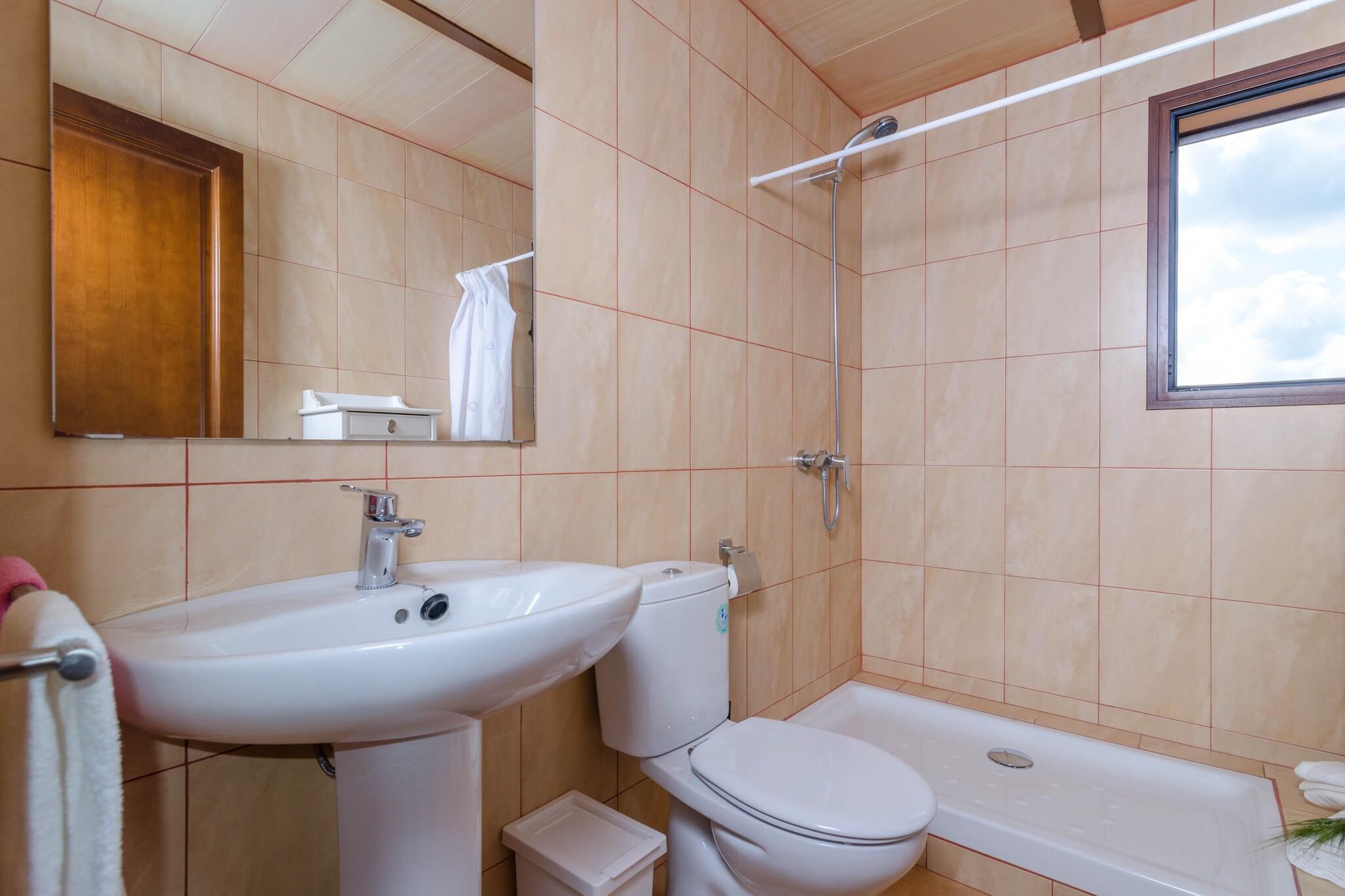Unseren Gästen steht ein privater, 8.5 m x 4 m großer Pool zur Verfügung, der von einem hübschen Garten umgeben wird. Das Schwimmbad ist 1.3 m tief und das Wasser wird mit Chlor gereinigt. Im Garten können Sie auf einer der vier Sonnenliegen entspannen oder sich an der Außendusche abkühlen. Die Terrasse mit Blick aufs Land ist dank des Strohdaches schattig und lädt zu romantischen Stunden zu zweit ein. Wenn Sie gerne draußen kochen, steht Ihnen ein Grill zur Verfügung. Diese einladende Finca ist alleinstehend und das Grundstück ist umzäunt. Im hellen Wohn-Esszimmer entspannen Sie beim Fernsehen (Satellitenempfang), DVD gucken oder bei langen Tischgesprächen, während im Holzofen ein lebendiges Feuer Ambiente ins Zimmer zaubert. Die Küche mit Cerankochfeld ist komplett ausgestattet und bietet neben den wichtigsten Haushaltsgeräten auch eine Waschmaschine, ein Bügeleisen sowie ein Bügelbrett. Von der Küche aus gelangen Sie direkt in den Garten, sodass Sie sich jederzeit eine kleine Pause vom Kochen gönnen können. Zwei Doppelbettschlafzimmer und ein Schlafraum mit ausziehbarem Bett für zwei Personen, allesamt mit Deckenventilatoren und Kleiderschränken, machen das Haus ideal für sechs Gäste. Ein Schlafzimmer mit Doppelbett bietet ein privates Badezimmer mit Badewanne. Des weiteren gibt es noch ein Duschbad im Haus. Wenn es abends mal ein bisschen frisch werden sollte, finden Sie zwei elektrische Heizkörper im Haus. Auf Anfrage können auch mehr bereitgestellt werden. Dem Besitzer ist die Umwelt sehr wichtig und aus diesem Grund hat er Solarzellen installiert. Die Finca befindet sich genau zwischen den beiden Wohnsiedlungen Son Mesquida und Son Valls, in der Nähe von Felanitx. Im Ortskern finden Sie alles, was Sie als Selbstversorger benötigen. Ende August finden die Feierlichkeiten zur Heiligen Magdalena statt, wo Sie die berühmten Cavallets, traditionelle Tänzer, bestaunen können. Um mal so richtig durchzuatmen, fährt man am Besten mit dem Auto oder Rad zur Kapelle des Heiligen Salvador, wo Sie ein herrlicher Panoramablick über das Zentrum und den Südwesten der Sonneninsel erwartet. Wenige Kilometer trennen Sie von der Ostküste und traumhaften Stränden, z.B. Cala Marcal, Cala Ferrera und Cala Mondragó. Letzterer ist gleichzeitig ein Naturpark wo man lange Spaziergänge unternehmen kann. Im Fischerdorf Portocolom können Sie bunte Häuser direkt am Meer und die alten Fischerboote, Llaüts genannt, sehen und frischen Fisch und Meeresfrüchte in einem der Restaurants probieren. Wenn Sie durch die engen Gassen schlendern, ein Gläschen Wein in einem kleinen Café genießen und die salzige Brise auf der Haut fühlen, dann spüren Sie die Essenz von Mallorca. Alle, die abends gerne weggehen, können in Cala D'Or während der Sommermonate die Nacht zum Tag machen. Ein Wechsel der Handtücher und der Bettwäsche während des Aufenthaltes ist inbegriffen. Eventuelle Nebenkosten müssen beim Anbieter nachgefragt werden. Haustiere sind verboten. Partys oder ähnliche Veranstaltungen sind nicht gestattet. Es gibt Freiluftparkplätze für 3 Autos. Entfernungen Strand: 18 km - Portocolom Flughafen: 44.4 km - Son Sant Joan Golfplatz: 16.1 km - Vall d'Or Golf Ortsmitte: 3.3 km - Felanitx Bahnhof: 17.7 km - Manacor Bushaltestelle: 3.8 km - Felanitx Fähre: 52.3 km - Port de Palma Krankenhaus: 18 km - Hospital de Manacor Die Gäste werden freundlich gebeten, sämtlichen Müll zu entsorgen und sicherzustellen, dass die Unterkunft vor der Abreise ordnungsgemäß aufgeräumt ist. Andernfalls werden 90 EURO von der Kaution einbehalten. Touristen Lizenz: ETV/6496Einheitsregister: ESFCTU00000700800061560900000000000000000000ETV/64969Auf den Balearen gibt es eine Touristensteuer, die Ecotasa genannt wird. Diese Steuer muss vom Gast bezahlt werden. Der zu zahlende Betrag beträgt zwischen 0.55EURO pro Nacht und Gast in der Nebensaison und 2.2EURO pro Nacht und Gast in der Hochsaison. Ab dem 9. Tag reduziert sich die Steuer um die Hälfte. Personen unter 16 Jahren sind davon ausgenommen