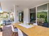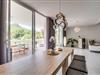 Im Inneren dieser Muster-Stadtvilla weicht die Architektur dem Design und erfreut das Herz des interessierten Gastes. Die kreative Nutzung mehrerer Ebenen verdeutlicht, wie schwierig der Bau dieses Ortes aufgrund seiner Hanglage war, aber es handelt sich um ein Designkonzept, das hervorragend umgesetzt wurde. Es gibt fünf geräumige Schlafzimmer, die sich auf drei Ebenen verteilen, und fast jedes klimatisierte Zimmer hat entweder einen direkten Zugang zu einer der großzügigen Terrassen oder liegt in deren Nähe. Vier trendig gestaltete Badezimmer mit begehbarer Regendusche und zwei zusätzliche WCs (innen und außen) runden dieses Premium-Paket ab. Das Gemeinschaftswohnzimmer befindet sich im Zwischengeschoss und liegt einige Stufen unterhalb der Eingangsebene. Ein toller Mix aus Möbeln und (textiler) Wandgestaltung verleiht einen gewissen Luxus, der dennoch sehr gemütlich ist. Es gibt ausreichend Platz für eine gemütliche Sofaecke neben dem Pelletkamin, aber auch für die halboffene Küche, ausgestattet mit allerlei Details. Er ist vom Essbereich durch eine Bar im amerikanischen Stil und einige Barhocker getrennt. Das Esszimmer bietet Sitzbänke im minimalistischen Stil vor den Glasschiebetüren, die im geöffneten Zustand eine Verschmelzung dieses Raums mit dem Essbereich im Freien und dem Grill auf der Veranda ermöglichen. Das symbiotische Zusammenspiel von Design, Stilmix, zahlreichen Balkonen, einer Dachterrasse und einem coolen Poolbereich sowie einem entspannten Ambiente ist einfach eine Augenweide – und auf jeden Fall das ganze Jahr über empfehlenswert.