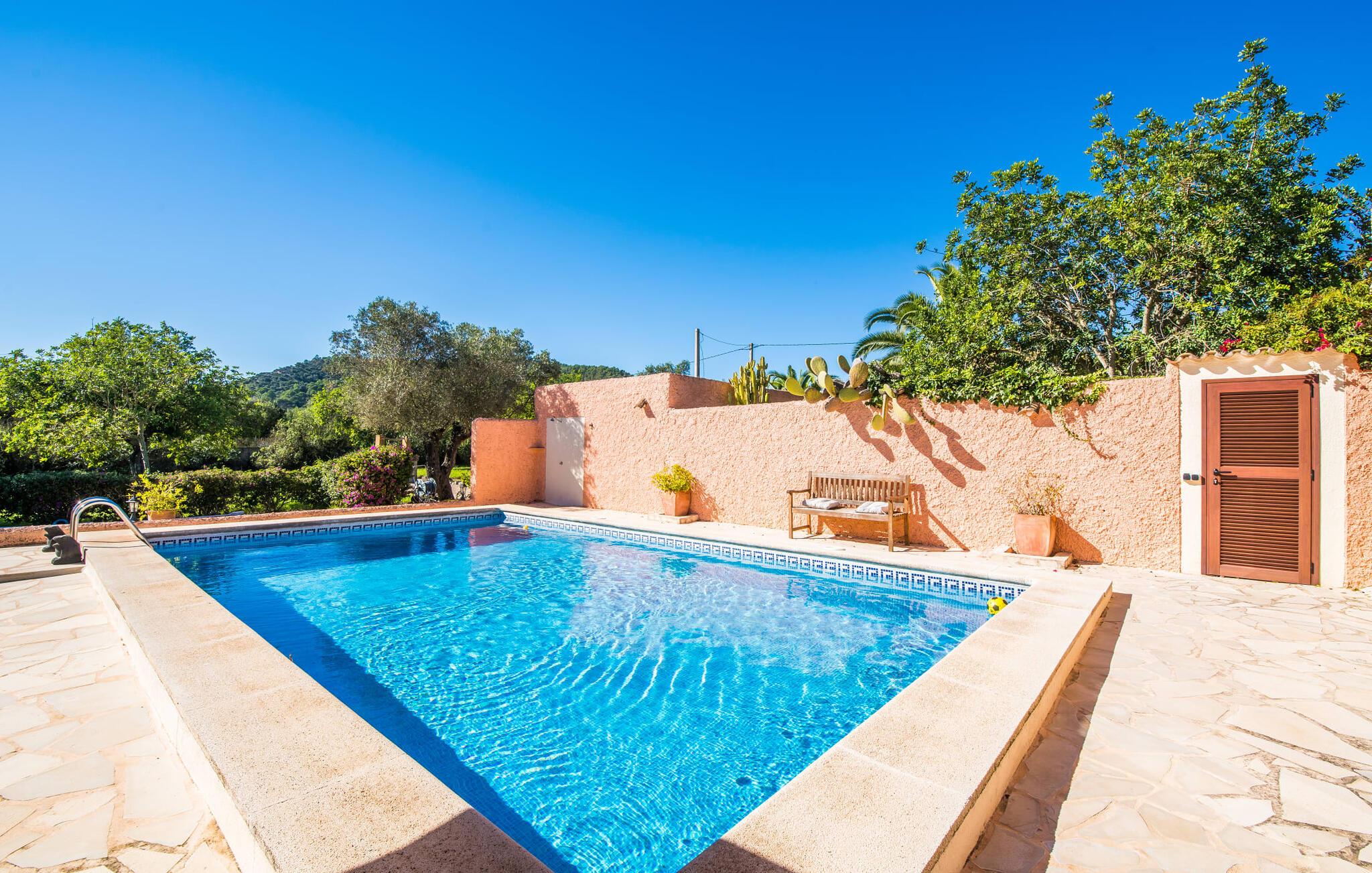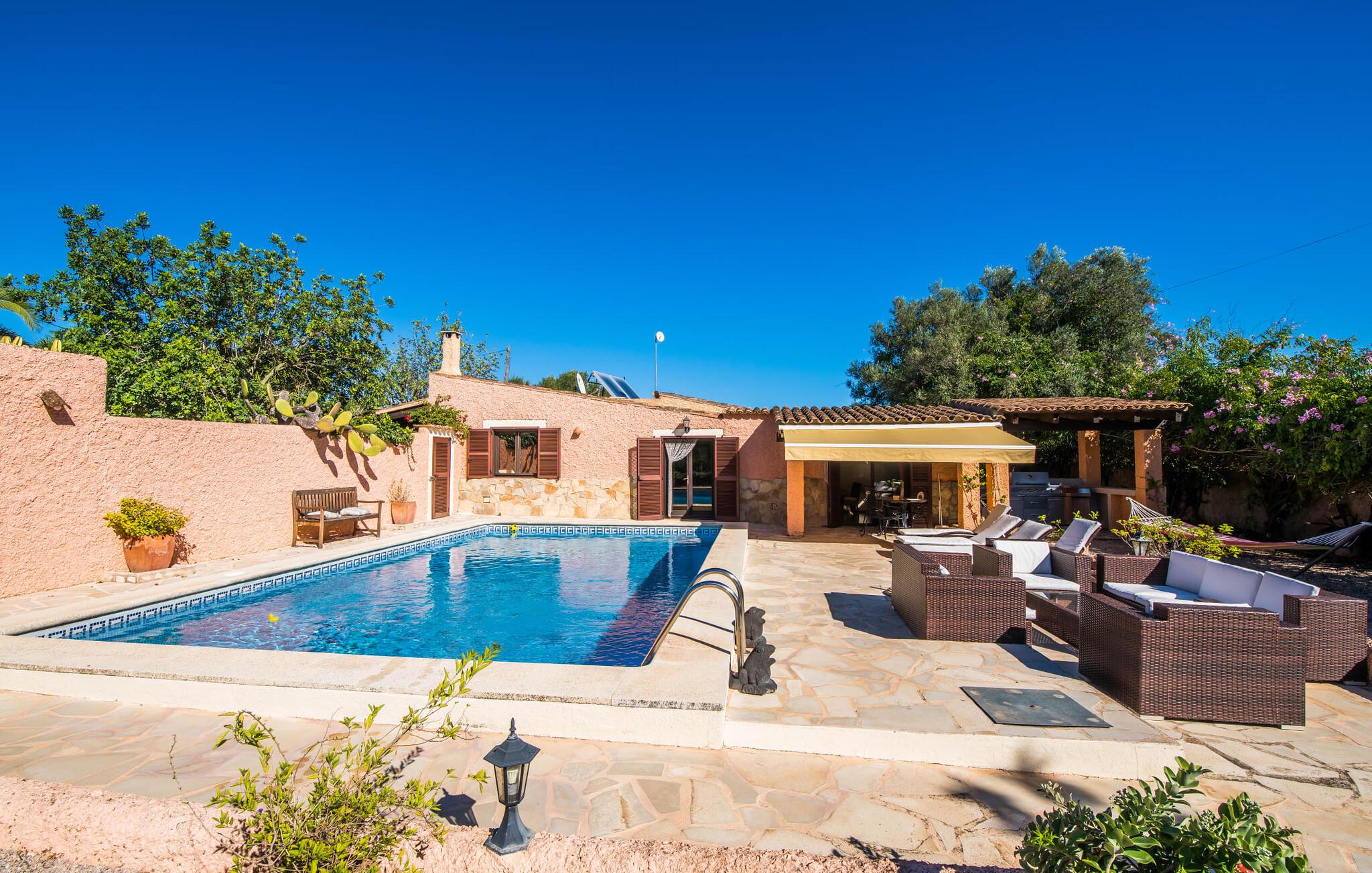 Die Villa bietet ca. 120 m² durchdacht eingerichtete ebenerdige Wohnfläche. Das helle Wohnzimmer mit seinen Naturtönen und fröhlichen Akzenten bietet einen gemütlichen Treffpunkt. Die offene Küche ist komplett für Selbstversorger ausgestattet und bietet einfachen Zugang zur Terrasse für ein nahtloses Leben im Innen- und Außenbereich. Es gibt zwei komfortable Schlafzimmer, zwei stilvoll gestaltete Badezimmer mit Tageslicht (eines davon en-suite) sowie eine nur 8 m entfernte Casita für zwei weitere Gäste, komplett mit Schlafzimmer und en-suite Badezimmer. Diese Villa bietet Privatsphäre und Entspannung und ist ideal für ruhesuchende Reisende, Golfer und Wanderer. Sie ist ein perfekter Rückzugsort, um die Schönheit Mallorcas abseits der Menschenmassen zu erkunden.