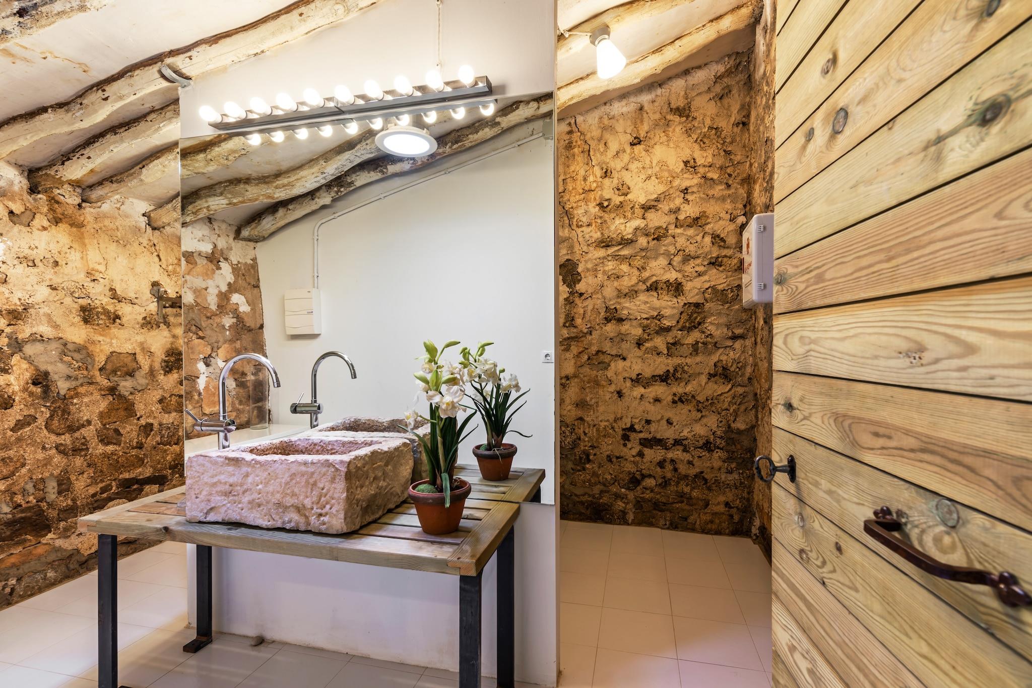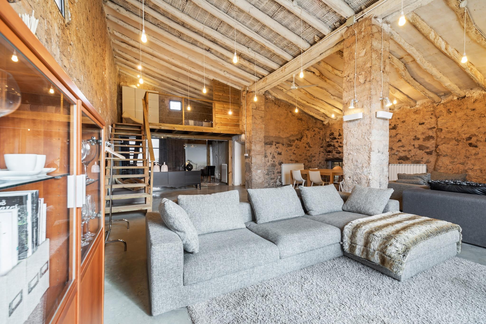 Gemütliches Komfort-Cottage Dieses gemütliche Cottage in Fraga bietet mit zwei Schlafzimmern Platz für bis zu acht Personen und ist somit ideal für Familien oder Gruppen. Es verfügt über einen hellen, privaten Garten, eine Terrasse und eine voll ausgestattete Küche mit modernen Geräten, darunter Geschirrspüler, Mikrowelle und Kaffeemaschine. Machen Sie es sich im geräumigen Wohnzimmer mit sechs Sitzplätzen gemütlich, genießen Sie die Wärme des Kamins oder lassen Sie den Abend bei einem Grillabend unter dem Sonnenschirm ausklingen. Das Cottage ist durchgehend beheizt und sorgt das ganze Jahr über für einen komfortablen Aufenthalt. Entdecken Sie die malerische Umgebung Die Region Aragonien bietet sowohl natürliche Schönheit als auch kulturellen Reichtum. Besucher können Wanderungen oder Radtouren durch die umliegende Landschaft unternehmen und kurze Tagesausflüge in die nahegelegenen historischen Dörfer unternehmen. Der Fluss Ebro trägt zum Charme der Region bei und bietet ruhige Spaziergänge und Fotomotive. Im Winter bieten die nahegelegenen Bergwanderwege malerische Routen, während im Sommer Outdoor-Abenteuer in der Natur auf Sie warten. Lokale Aromen und Komfort Das Stadtzentrum von Fraga ist nur eine kurze Autofahrt entfernt. Dort finden Sie traditionelle Restaurants mit regionaler Küche, Tapas-Bars und gemütliche Cafés. Dank der nahegelegenen Geschäfte und Supermärkte können Sie sich bequem mit dem Nötigsten eindecken.