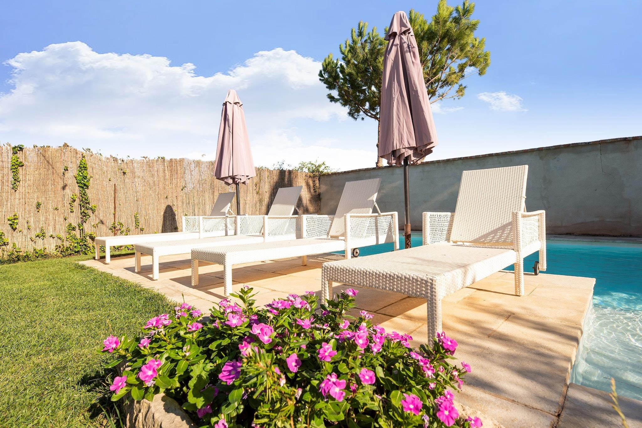 Dieses charmante Ferienhaus in Fraga wird Sie begeistern und Sie dazu verleiten, länger zu bleiben als gewöhnlich! Es bietet drei Schlafzimmer für bis zu sieben Personen. Ideal für Freundesgruppen und Familien, die gemeinsam reisen, verfügt das Haus über einen privaten Pool für erfrischende Abkühlung und einen großen Garten zum Entspannen. Genießen Sie die leckeren Speisen und Getränke in den Restaurants, die nur 11 Autominuten entfernt liegen. Die Umgebung lässt sich bequem zu Fuß erkunden. Dieses wunderschöne Haus mit seinem spektakulären Design ist perfekt für einen erholsamen Urlaub. Die Klimaanlage sorgt für angenehme Temperaturen im Haus. Veranstalten Sie ein Barbecue und genießen Sie es im großen Garten. Die Terrasse ist der ideale Ort für Ihr morgendliches Workout. Lassen Sie den Tag entspannt bei einem Glas Wein im gemütlichen Sitzbereich ausklingen. Der Flughafen Lleida-Alguaire ist 40,7 km entfernt. Hinweis: Der Pool ist vom 1. Juni bis 15. September geöffnet und bleibt in der übrigen Zeit geschlossen.