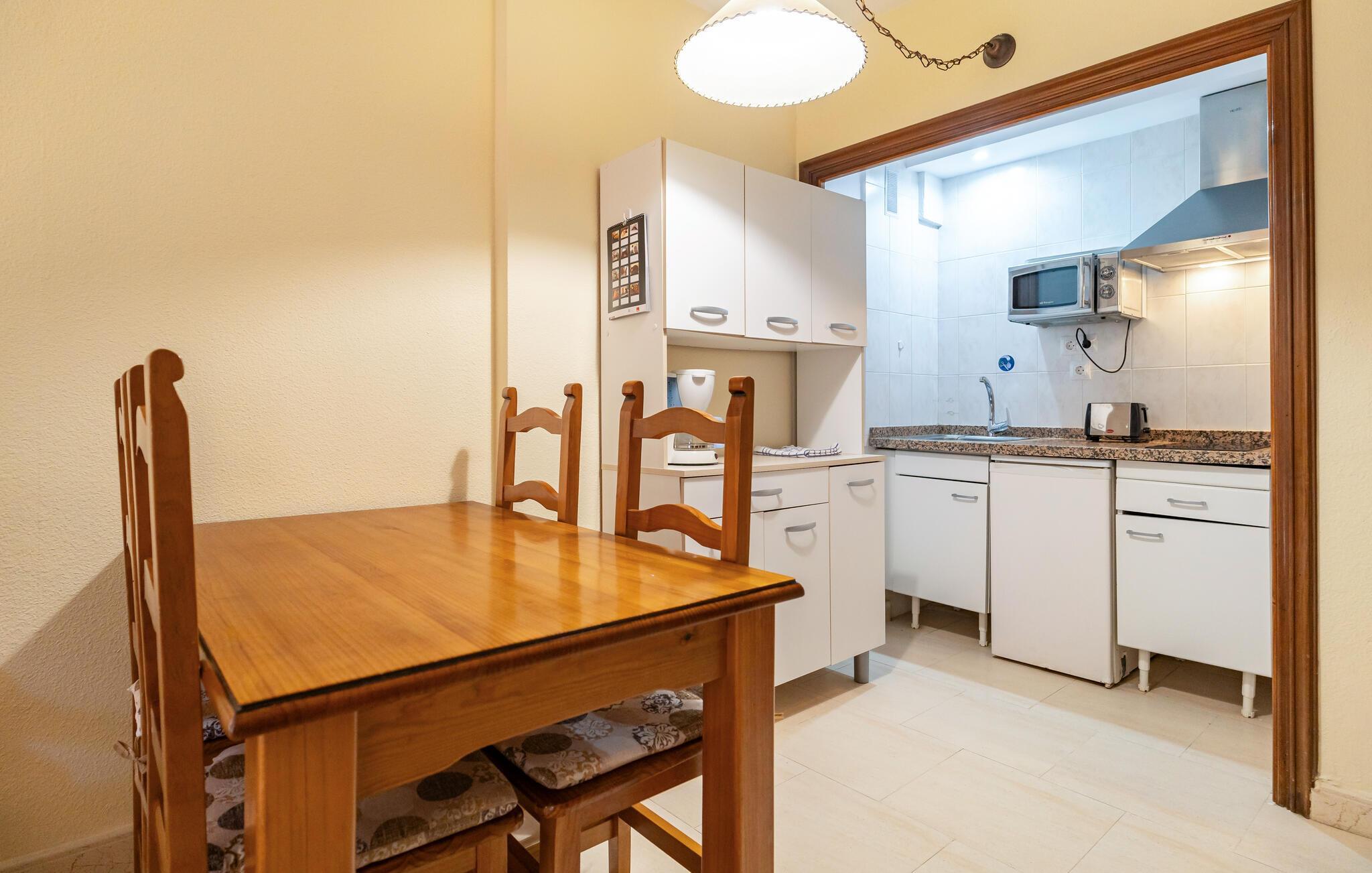 Folgen Sie dem Ruf des Mittelmeeres und verbringen Ihren Urlaub in Fuengirola, wo Sie in einem Apartmentkomplex diese freundliche Wohnung finden. Massive Holzmöbel und eine gute Ausstattung versprechen Ihnen die besten Voraussetzungen für einen unbeschwerten Urlaub. Die einfache Küche lässt Sie leckere Snacks zubereiten, die Sie auf dem Balkon einnehmen können.