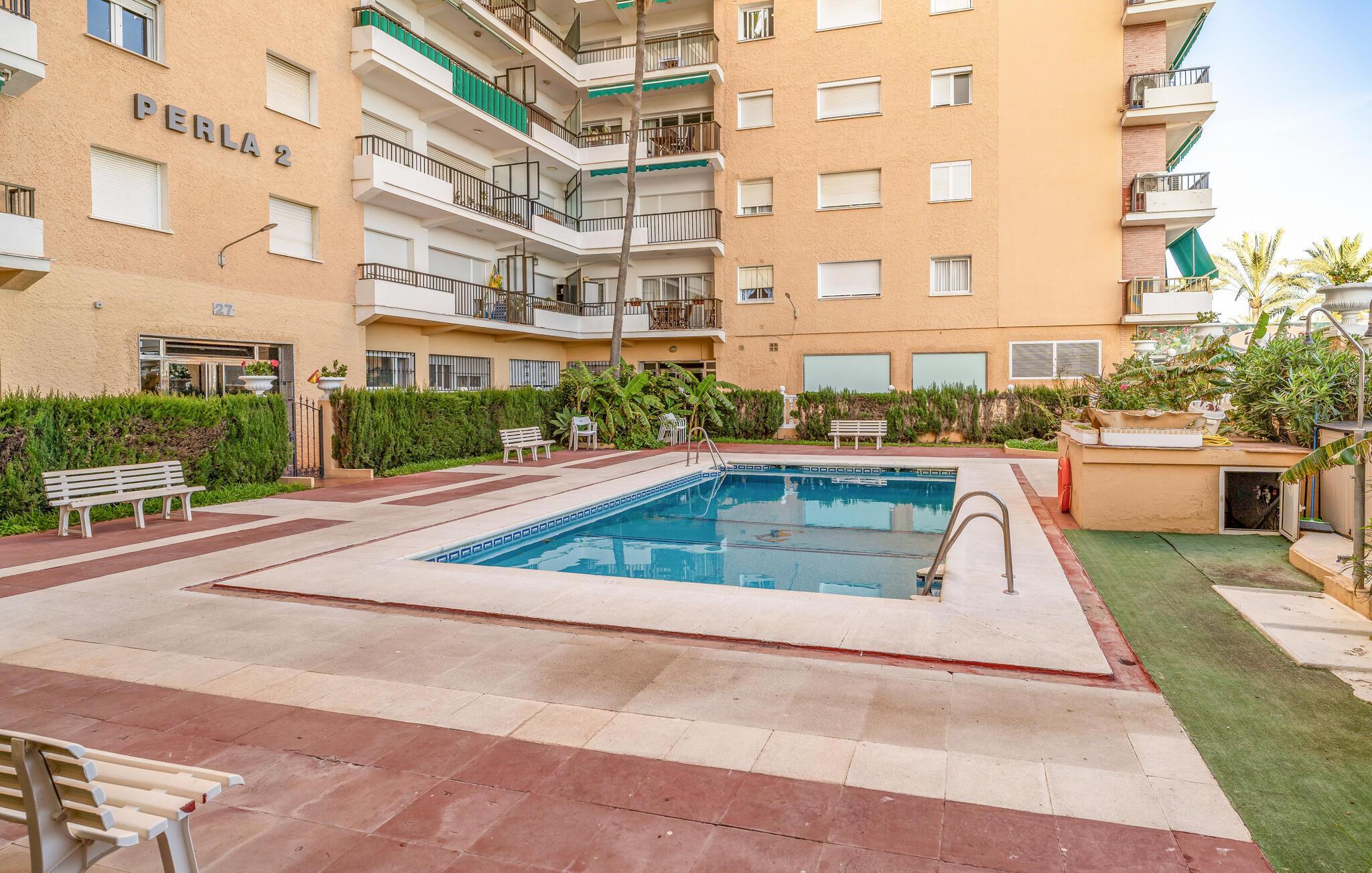 Dieses helle und hübsche Studioapartment in Fuengirola ist der ideale Rückzugsort für Paare oder Alleinreisende, die Sonne, Strand und spanisches Lebensgefühl genießen möchten. Der geschmackvoll eingerichtete Wohnbereich mit Frühstückstresen lädt Sie zu entspannten Morgenstunden ein. Große Fenster lassen viel Licht herein und schaffen ein angenehmes Ambiente. Dank der zentralen Lage erreichen Sie den Strand, Restaurants und Einkaufsmöglichkeiten bequem zu Fuß. Die gepflegte Anlage bietet Ihnen zusätzlich einen Pool für erfrischende Stunden an warmen Tagen.