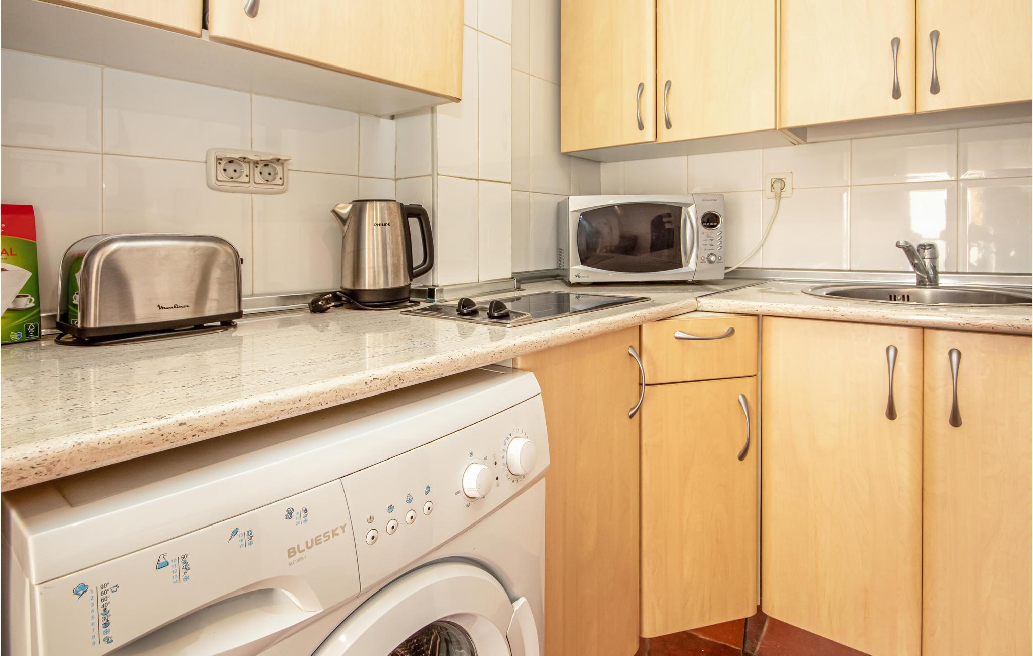 Mit ihren hellen Räumen und der schlichten, wohnlichen Einrichtung ist die Wohnung der ideale Ort für eine angenehme Auszeit einen Steinwurf vom Strand entfernt, in der Nähe einer Stadt und in fußläufiger Entfernung zu allen Annehmlichkeiten. Stärken Sie sich am Esstisch mit einem guten Frühstück für einen erlebnisreichen Tag, das Sofa im Wohnzimmer lädt zu gemütlichen Abenden mit Spielen, Gesprächen oder einem Film ein.