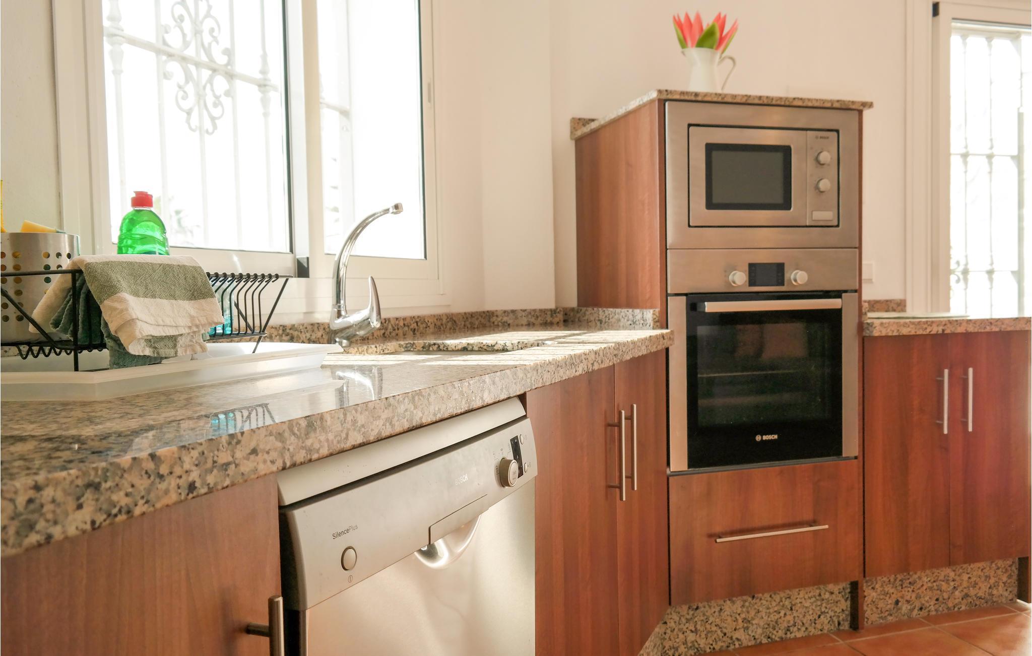 Die Küchenzeile verfügt über heißes Wasser