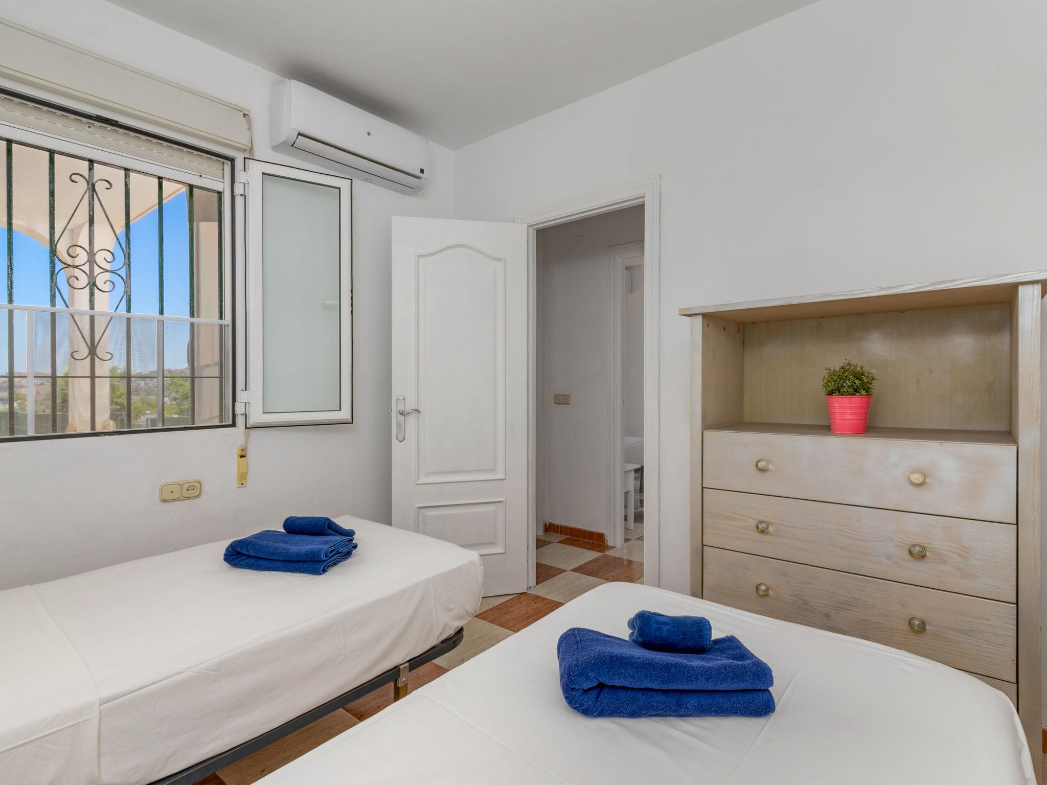 La Sierrezuela 4 km von Fuengirola: Sehr grosses, einfaches Haus "La Paisible", auf 2 Stockwerken. Ruhige, sonnige Lage, 4 km vom Meer, 4 km vom Strand. Zur Alleinbenutzung: grosser Garten 600 m2 Pflanzen und Bäumen, Schwimmbad eckig (8 x 4 m, 200 cm tief, saisonale Verfügbarkeit: 01.Jan. - 31.Dez.). Aussendusche, Pergola (70 m2), Grill, Parkplatz beim Haus. Supermarkt 1 km, Restaurant 500 m, Bushaltestelle "Campo Mijas" 1.2 km. Sporthafen 5 km, Jacht-Hafen 5 km, Golfplatz (18 Loch) 5 km.
