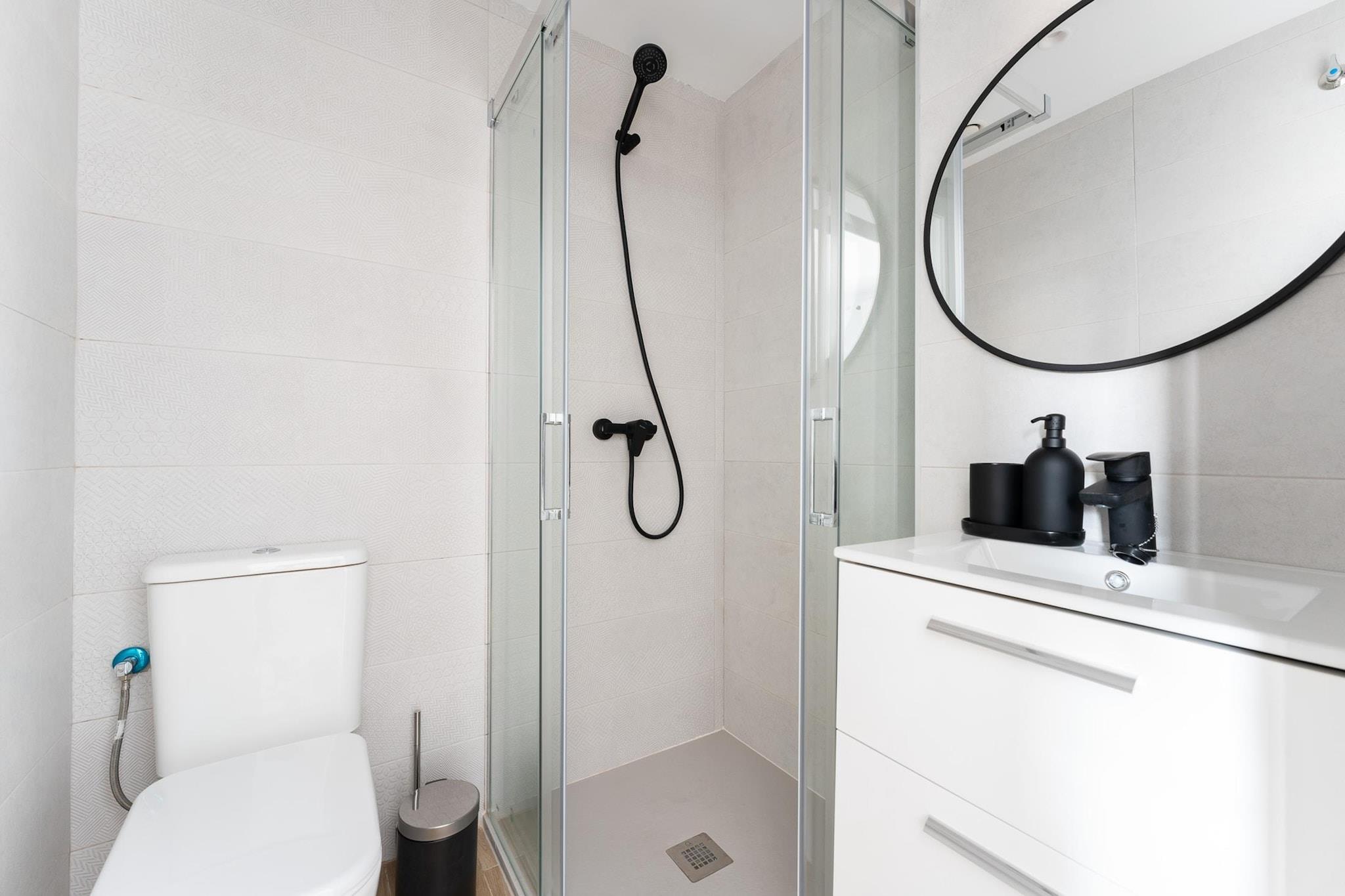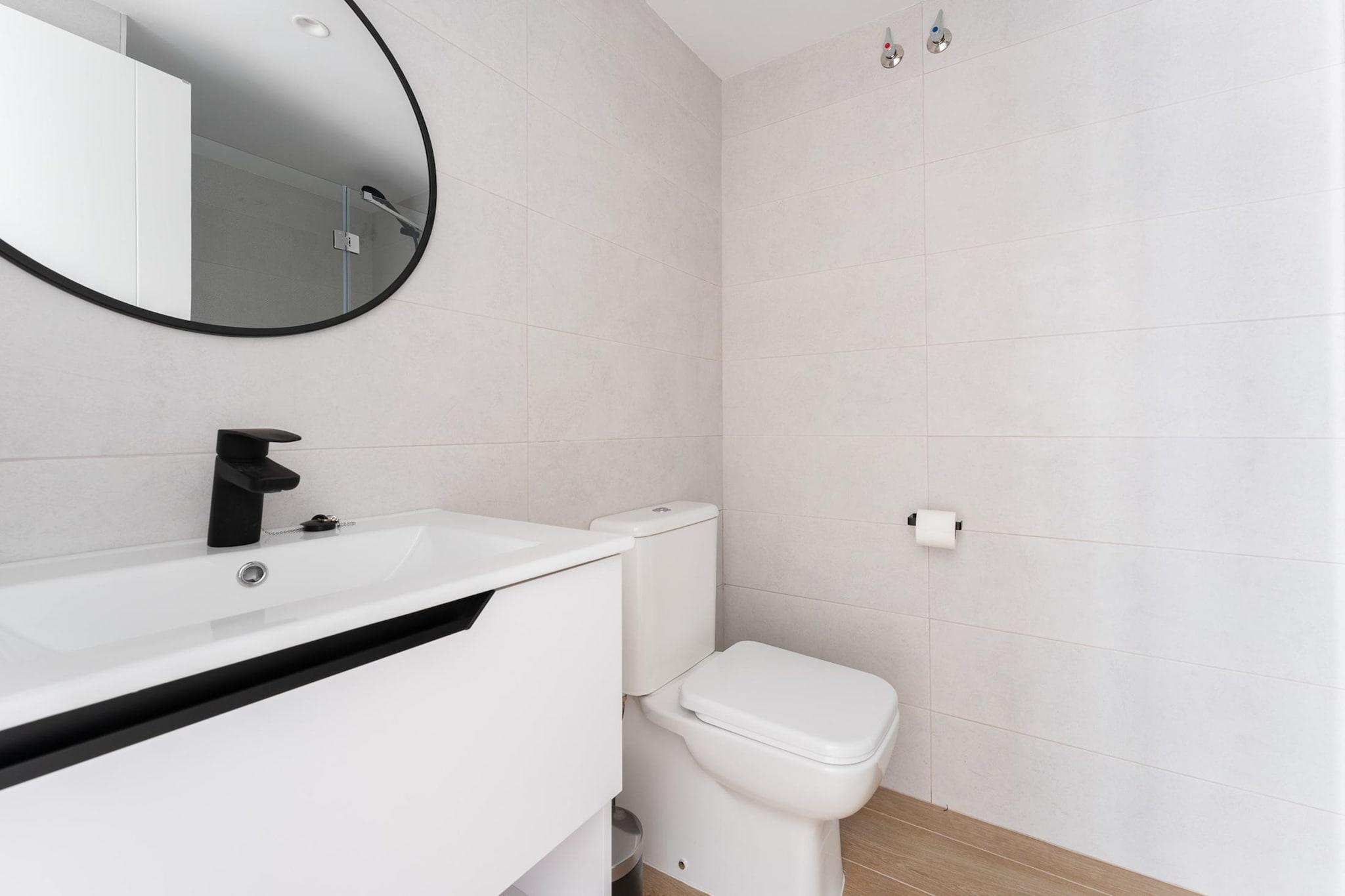 Dieses moderne Apartment bietet einen komfortablen und gut ausgestatteten Aufenthalt – ideal für Familien oder kleine Gruppen. Das Wohnzimmer verfügt über einen Fernseher, einen Esstisch und eine gemütliche Sitzecke. Die Klimaanlage sorgt für zusätzlichen Komfort. Die Küche ist komplett ausgestattet mit Herd, Wasserkocher, Toaster, Kaffeemaschine, Backofen, Mikrowelle, Kühl-/Gefrierkombination sowie ausreichend Geschirr und Besteck – so ist die Zubereitung Ihrer Mahlzeiten ein Kinderspiel. Das Apartment verfügt über zwei Schlafzimmer für erholsame Nächte. Das erste Schlafzimmer bietet ein bequemes Doppelbett, einen eigenen Fernseher und eine Klimaanlage. Das zweite Schlafzimmer ist ideal für Kinder oder zusätzliche Gäste und verfügt über ein Etagenbett, ebenfalls mit Klimaanlage. Zwei Badezimmer mit Dusche und WC sorgen für Komfort. Ein Aufzug ermöglicht einen bequemen Zugang zum Apartment. Handtücher und Bettwäsche sind im Preis inbegriffen und sorgen für eine reibungslose Ankunft. Obwohl keine genauen Standortangaben gemacht werden, befinden sich moderne Apartments mit diesen Annehmlichkeiten in der Regel in gut angebundenen Gegenden. Achten Sie auf nahegelegene Attraktionen wie Restaurants, Einkaufszentren und öffentliche Verkehrsmittel, um die Umgebung bequem zu erkunden. Je nach Stadt befinden Sie sich möglicherweise in der Nähe kultureller Sehenswürdigkeiten, Parks oder Unterhaltungsmöglichkeiten.