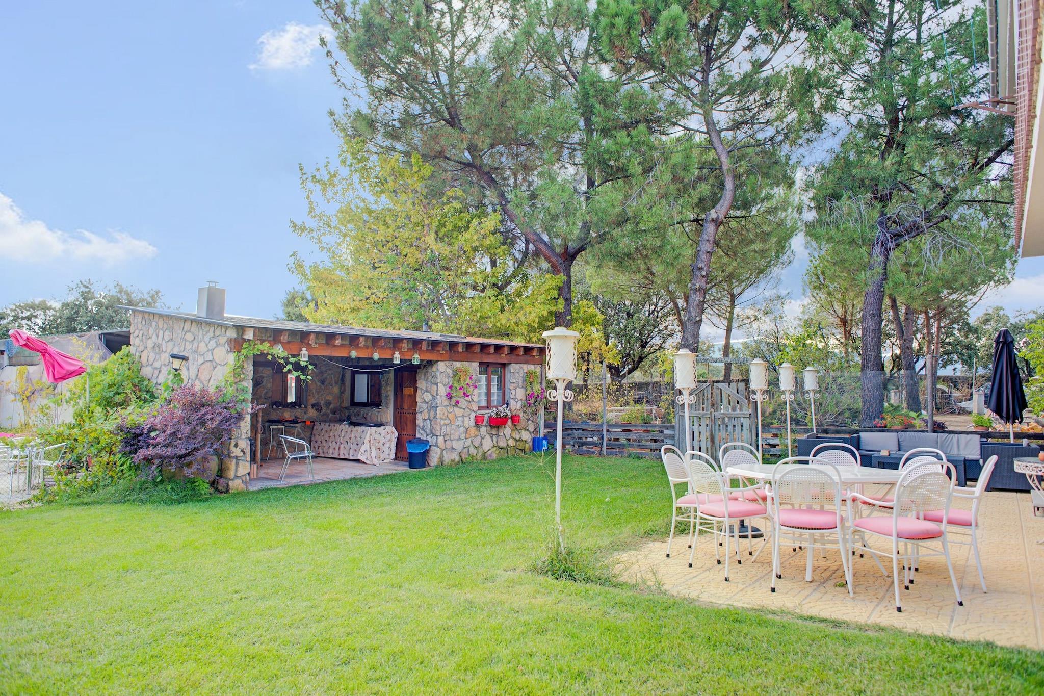 Diese gemütliche Wohnung in den Bergen von Madrid ist ideal für einen romantischen Urlaub zu zweit. Sie verfügt über ein gemeinsames Schwimmbad, einen Garten und einen Wellnessbereich (der Whirlpool und die Sauna befinden sich nicht in der Unterkunft, sondern in einem separaten Gebäude in der Nähe). Als Willkommensgeschenk bietet der Eigentümer eine Stunde im Spa-Bereich (Sauna und Jacuzzi) an; nach einer Stunde ist dieser Service kostenpflichtig (fragen Sie den Eigentümer bei Ihrer Ankunft nach den Preisen). Das Hotel liegt in Galapagar, in einem Gebiet, das von Bäumen umgeben ist, wo Sie Ihre Privatsphäre voll genießen können. Das Zentrum von Galapagar ist nur 2 km entfernt. Die Wohnung verfügt über eine offene Küche, einen Kamin und einen Grill im Freien, wo Sie Ihre schmackhaftesten Gerichte zubereiten können. Es gibt einen externen Wäscheservice (Preise beim Eigentümer erfragen). Es gibt eine zweite Wohnung in dieser großen Finca, so dass Sie Nachbarn haben könnten. Haustiere sind gegen einen Aufpreis erlaubt. Wir bitten Sie, Ihrem Haustier viel Aufmerksamkeit zu schenken, damit das Haus und der Garten immer sauber gehalten werden. Es gibt einen Parkplatz auf der Finca, aber er ist nicht privat.
