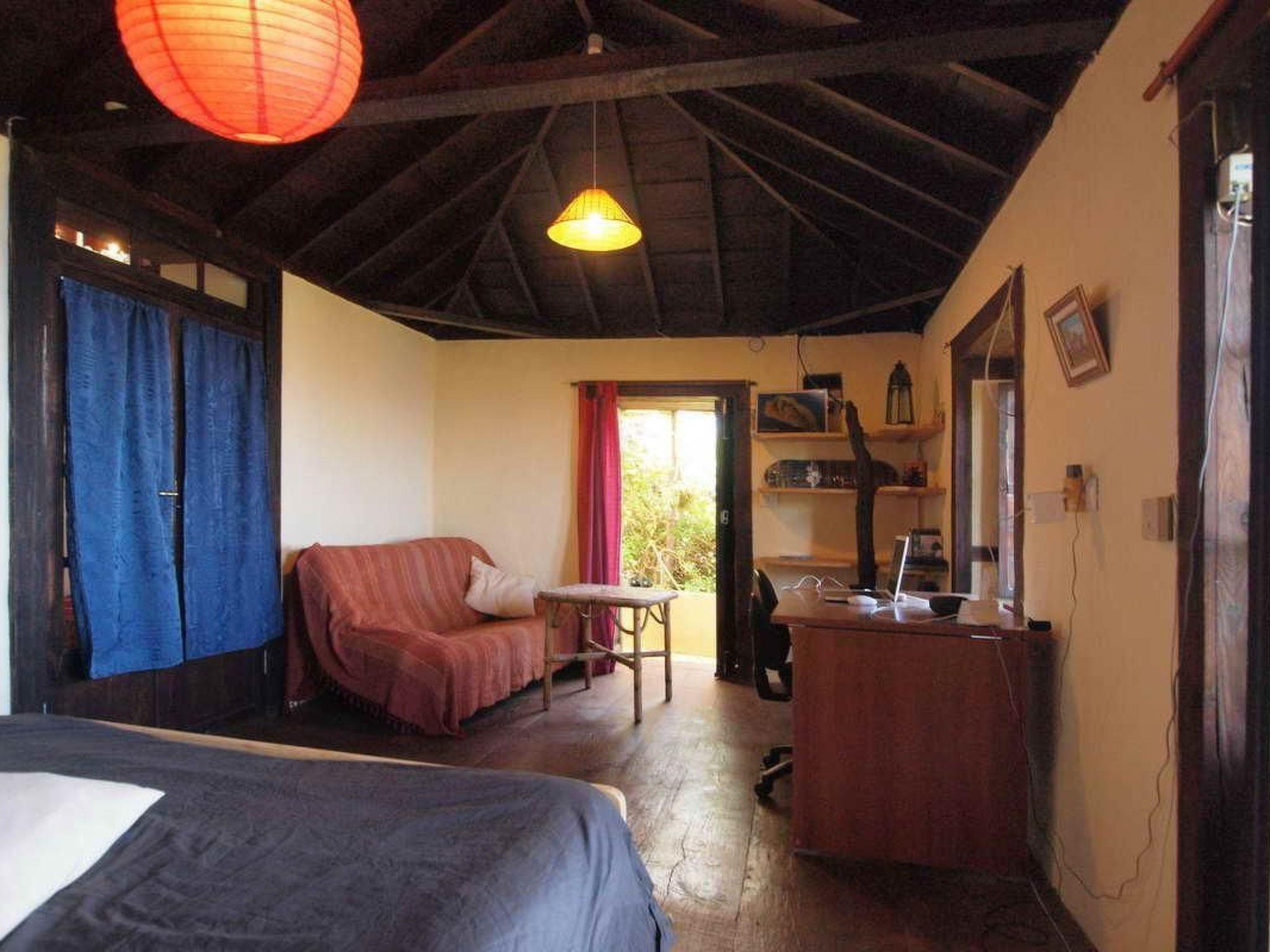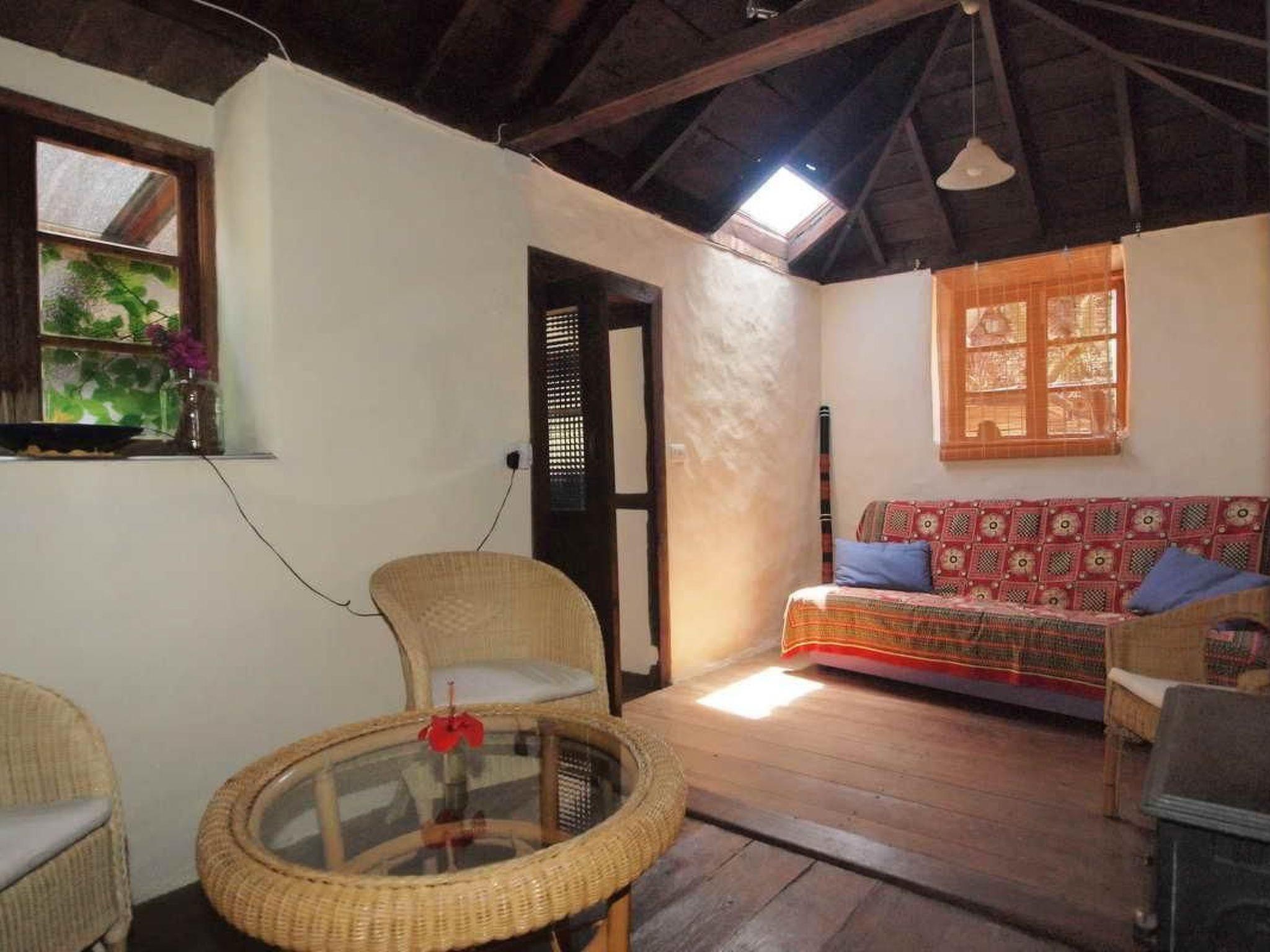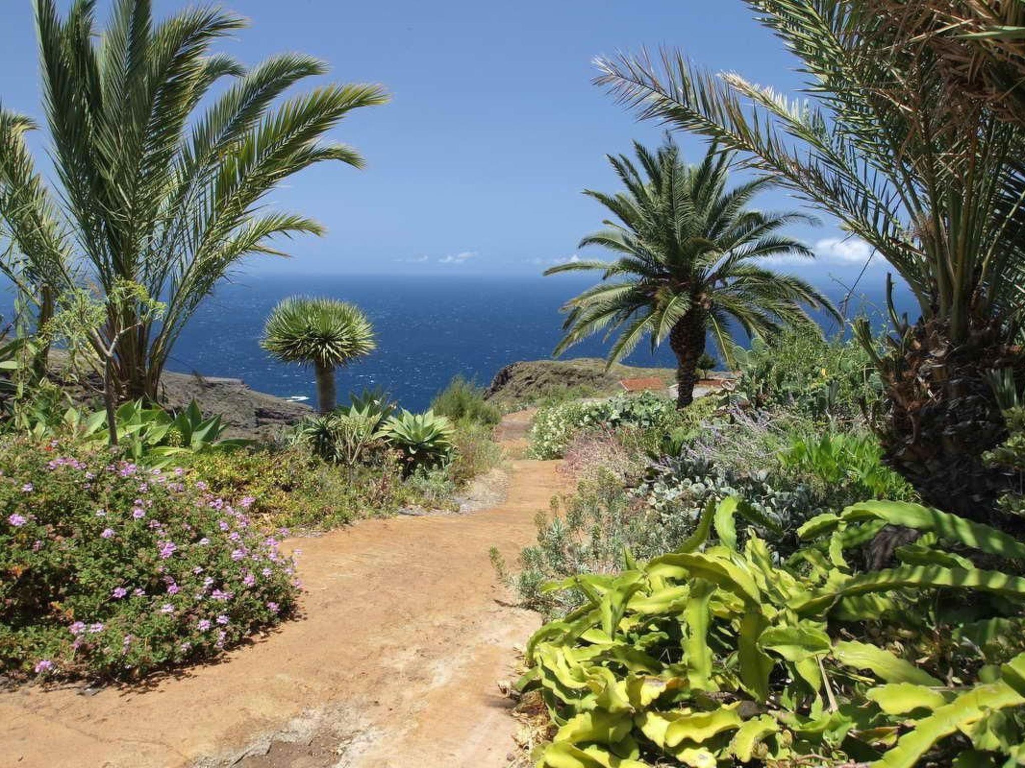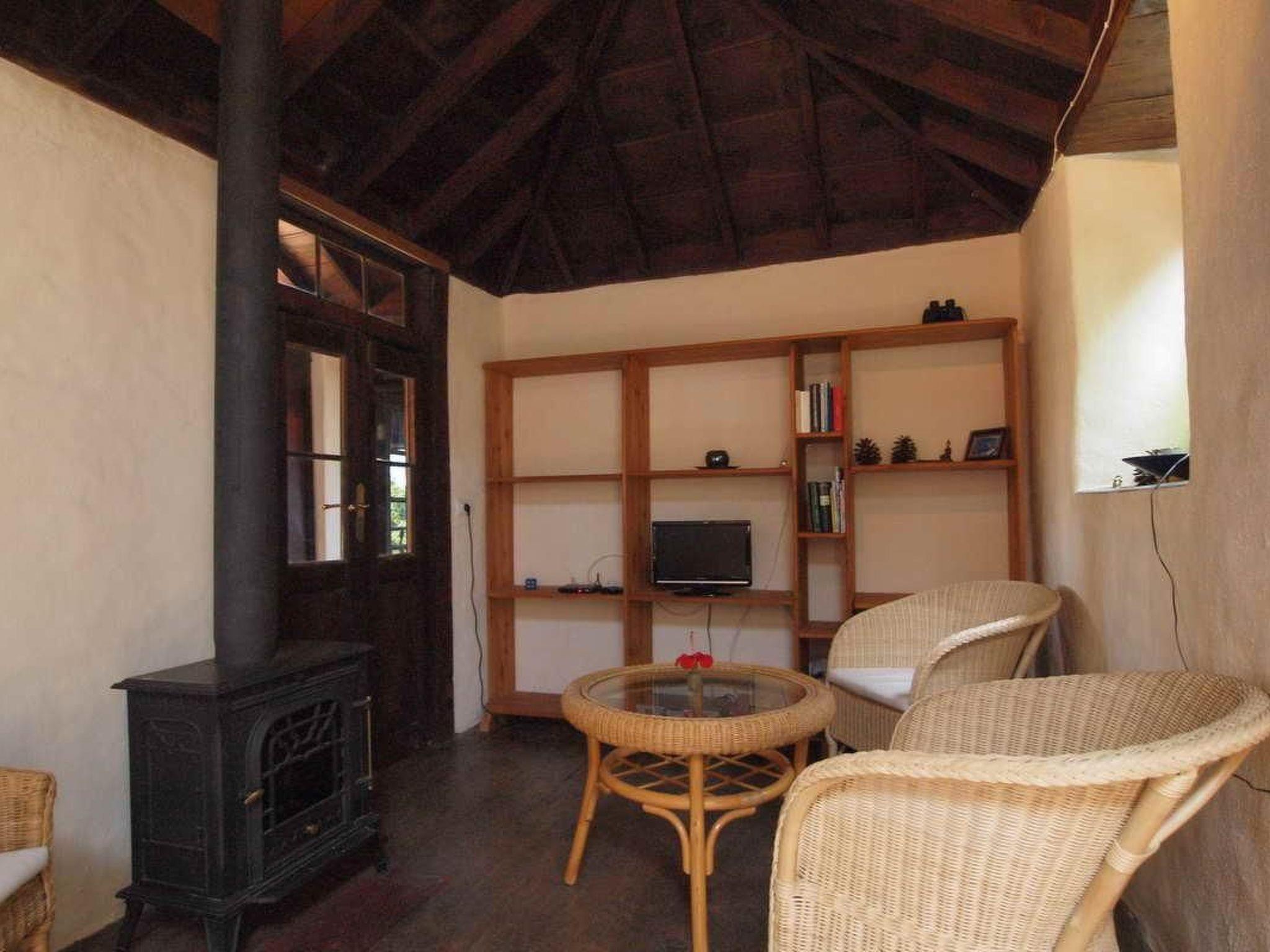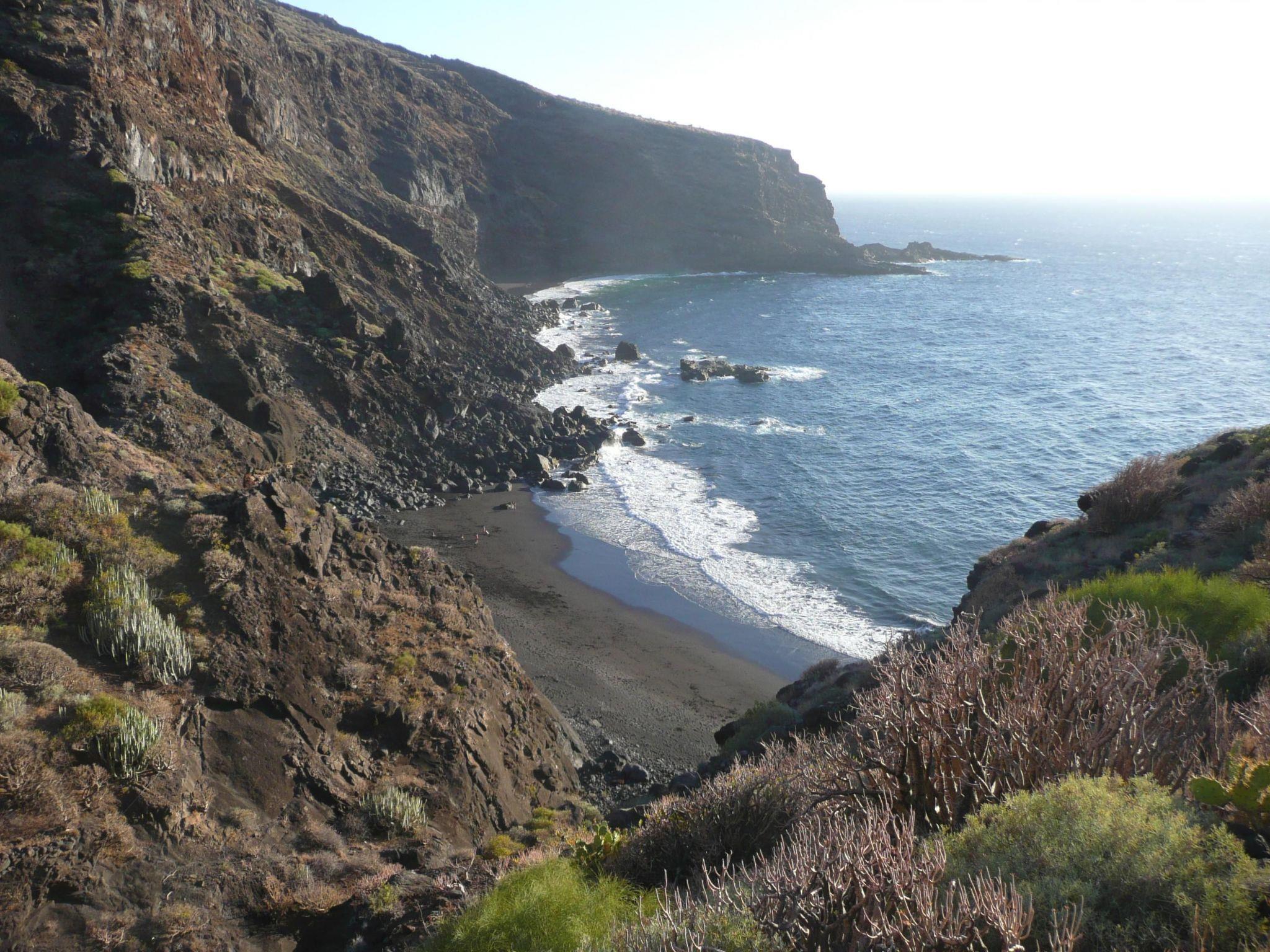 Das typische historische kanarische Bauernhaus ' Finca' aus Naturstein gebaut, mit 110 qm Wohnfläche, 360m.ü.M.liegt am Rande eines einmaligen Naturreservat 'Galguen' nicht weit vom Dorf Santo Domingo entfernt. Ums Haus befinden sich sonnige Terrassen zum Ausruhen Sonnenbaden und Essen. Das Grundstück ist schön eingewachsen mit kanarischen Palmen und Blumen. Alle Böden und Decken des Hauses sind aus Tea (Edelholz der kanarischen Pinie). Das grosse Schlafzimmer hat ein Doppelbett mit Meerblick u. Balkon, das zweite Schlafzimmer hat ein Blick auf den Barranco und die Berge. Im Wohnzimmer hat es einen Kaminofen, Sat/TV und ein Bettsofa. Das Badezimmer hat Bodenheizung eine Badewanne und Glasdach. Die Grosse Wohnküche mit Geschirrspülmaschine, Gasherd, Backofen, Kühlschrank und einer gemütlichen Sitzecke lädt zum essen und verweilen ein. Die Finca (Bauernhaus) liegt am Rande des Barrancos Catela (Schlucht) und bietet einen herrlichen Rundblick auf Küste und die Pinienwälder der Berge. Vom Haus aus können Sie direkt auf alten Fusswegen die schönsten Wanderungen starten, sowie die vorzeitlichen Höhlen von Cueva del Agua besuchen. Der Fussweg ans Meer beträgt 30min. und führt zum Naturstrand Callejoncito. Um das Haus wachsen subtropische Pflanzen wie Palmen, Drachenbäume, Oliven, Citrus, Mangos, Papayas, Guaven ,Mandeln, Feigen und vieles mehr, die vom Besitzer angeboten werden. Gerne backen wir für Sie ein Bio Roggen/Dinkel Sauerteigbrot mit eigenen Mandeln und liefern auch frische Ziegenmilch/Käse, Gemüse und Früchte aus der Region. Auf Wunsch können sie auch Abendessen bestellen. Einmal in der Woche liefert der Fischer Don Ramon frischen Meeresfisch. Das Ferien Haus ist umgeben von einem 10000 qm großen Gartengrundstück. Der Vermieter wohnt ständig in einem separaten Gebäude auf dem Grundstück. Es gibt Olivenbäume Zitrusbäume und div. tropische Fruchtbäume. Die Finca aus Lavastein und Teaholz (Kanarische Pinie) wurde in jahrelanger Arbeit, mit viel Liebe zum Detail, vom Vermieter baubiologisch renoviert. Beim Umbau wurden viele Materialien recycelt, speziell ausgewählt und verarbeitet: Rote Lehmerde für Farben, altes Holz für Möbel und Stützkonstruktionen, sowie Rote Ziegel, welche früher direkt Vorort für Dacheindeckungen gebrannt wurden. Zur Nutzung stehen zur Verfügung: Sonnenschirm, Sonnenliege und Gartenmöbel. Hängematte. Die Vermieter bieten vor Ort geführte Wanderungen an. Wunderschöne Ferien für Naturliebhaber, Wanderer und Menschen, die sich selbst genug sind. Anreise sollte mit Carola und Christian telefonisch abgesprochen werden. LP 114 - nach dem Barranco del Atajo nach km 8 geht es links zum Strand Callejoncito, nach 50 m steht (auch links) ein Müllbehälter, weitere 100 m danach steht ein Verkehrsspiegel links – hier muss von der LP 114 abgebogen werden - steil nach rechts oben, ca. 300 m, bis es nicht mehr weiter geht. In Santo Domingo 1,5 km, befinden sich Einkaufsmöglichkeiten und es hat ein Restaurant "Santi. An Wochenenden das 7 km entfernte Restaurant Azul de Sol empfohlen werden – unbedingt vorher reservieren!
