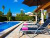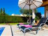 Die markante Villa „Gatoses“ zeichnet sich durch vollkommen bodenständige Eleganz und Zeitlosigkeit aus, in der Sie sich wie zu Hause fühlen können. Schon beim Betreten dieses kleinen, aber feinen Anwesens wird die Sorgfalt der freundlichen Besitzer deutlich: Das fängt schon beim schönen, gepflegten Garten an, der mit weitläufigen Rasenflächen voller Blumen aufwartet. Ihre Privatsphäre wird durch eine dichte grüne Hecke gewährleistet, die das Grundstück begrenzt. Auf der herrlich schattigen Veranda stehen zahlreiche Terrakottatöpfe und das Haus selbst ist liebevoll mit Blumen und Sträuchern geschmückt. Die überdachte Terrasse blickt auf einen Pool mit einer Kurve an einem Ende, die anzeigt, wo die Poolstufen beginnen, und einem mäandrierenden Mosaik um den Rand herum. Entspannen Sie sich in einem der Liegestühle und genießen Sie die Sonne auf der Liegewiese oder der Natursteinterrasse. Weiße Säulen stützen das Dach über der großzügigen Terrasse, wobei diese Farbe auch auf den Fensterläden zum Ausdruck kommt und einen schönen, scharfen Kontrast zu den Erdtönen des Stadthauses selbst bildet. Viel Platz gibt es für die Sitz- und Essbereiche mit hochwertigen Outdoor-Möbeln, ebenfalls aus Polyrattan. Beginnen Sie Ihren Tag mit einem gemeinsamen Frühstück, nehmen Sie ein leichtes Mittagessen zu sich und machen Sie sich abends auf den Heimweg – wo die Premium-Gasgrillstation unter einer beleuchteten Markise auf Sie wartet und jeden Urlaubstag zu etwas Besonderem macht.