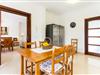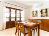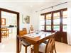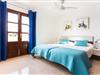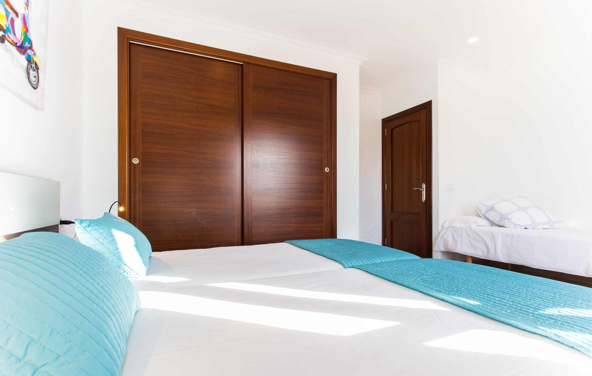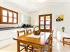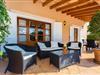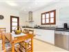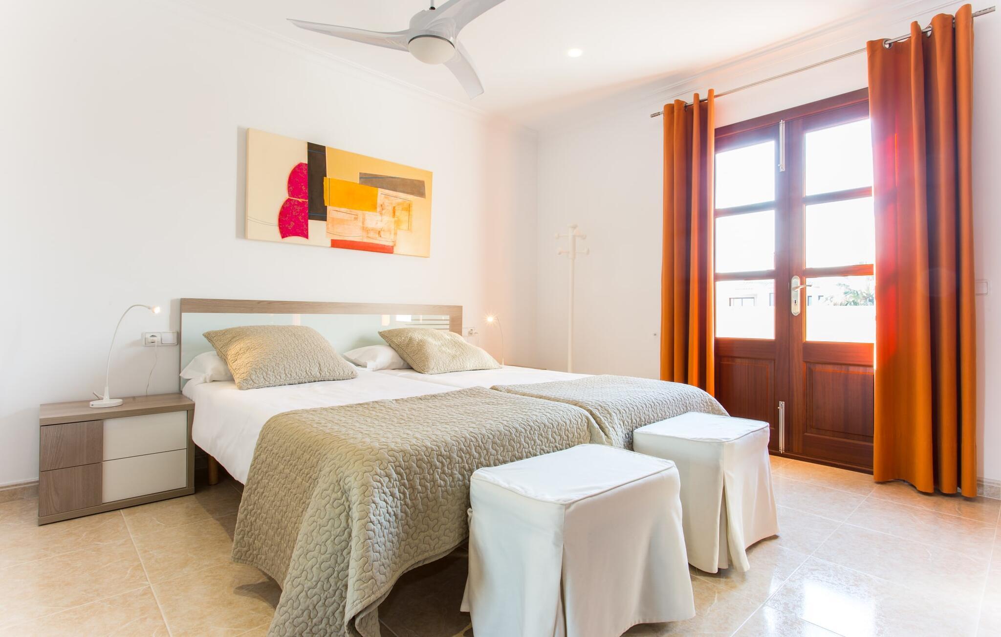 Doppelte Terrassentüren führen von der Terrasse in den Wohn- und Essbereich der Finca. Die Einrichtung ist in jeder Hinsicht stimmig: Ein heller Steinboden, weiße Wände, dunkle Massivholztüren und hochwertig verarbeitete Massivholzmöbel mit einem Hauch von Exklusivität sorgen zusammen mit sorgfältig ausgewählten Dekorationsgegenständen und zeitgenössischer Kunst an den Wänden für das gewisse Etwas Ein wunderschön harmonischer Raum, in dem Sie sich wie zu Hause fühlen können. Vom Wohnzimmer führt eine Doppelschiebetür in die gemütliche, gut ausgestattete Küche. Mit einer weißen Hochglanz-Kücheneinheit mit Gasherd und Kochfeldern, einem amerikanischen Kühl-/Gefrierschrank aus Edelstahl, einem Geschirrspüler, einer Mikrowelle und vielem mehr wird die Selbstversorgung nicht einfacher! Und mit einer Tür, die zum Essbereich im Freien führt, ist das Essen im Freien genauso bequem wie der Aufenthalt drinnen. Mit zwei Doppelzimmern und einem Dreibettzimmer bietet die Villa Platz für bis zu sieben Personen. Das Dreibettzimmer eignet sich besonders gut für Eltern eines Kindes, das bereits erwachsen genug ist und ein eigenes Bett benötigt. Neben dem Schlafzimmer im Erdgeschoss befindet sich ein Badezimmer in Beigetönen mit einer modernen begehbaren Dusche. Das zweite Badezimmer ist über den Flur der beiden Schlafzimmer im Obergeschoss erreichbar. Dies ist ein stilvolles weißes Zimmer mit bambusgrünen Akzenten und einem komfortablen Bad. Ebenfalls im Obergeschoss befindet sich ein romantischer Balkon mit Sitzecke, wo Sie sitzen und den Nachthimmel beobachten und dem Meeresrauschen lauschen können.