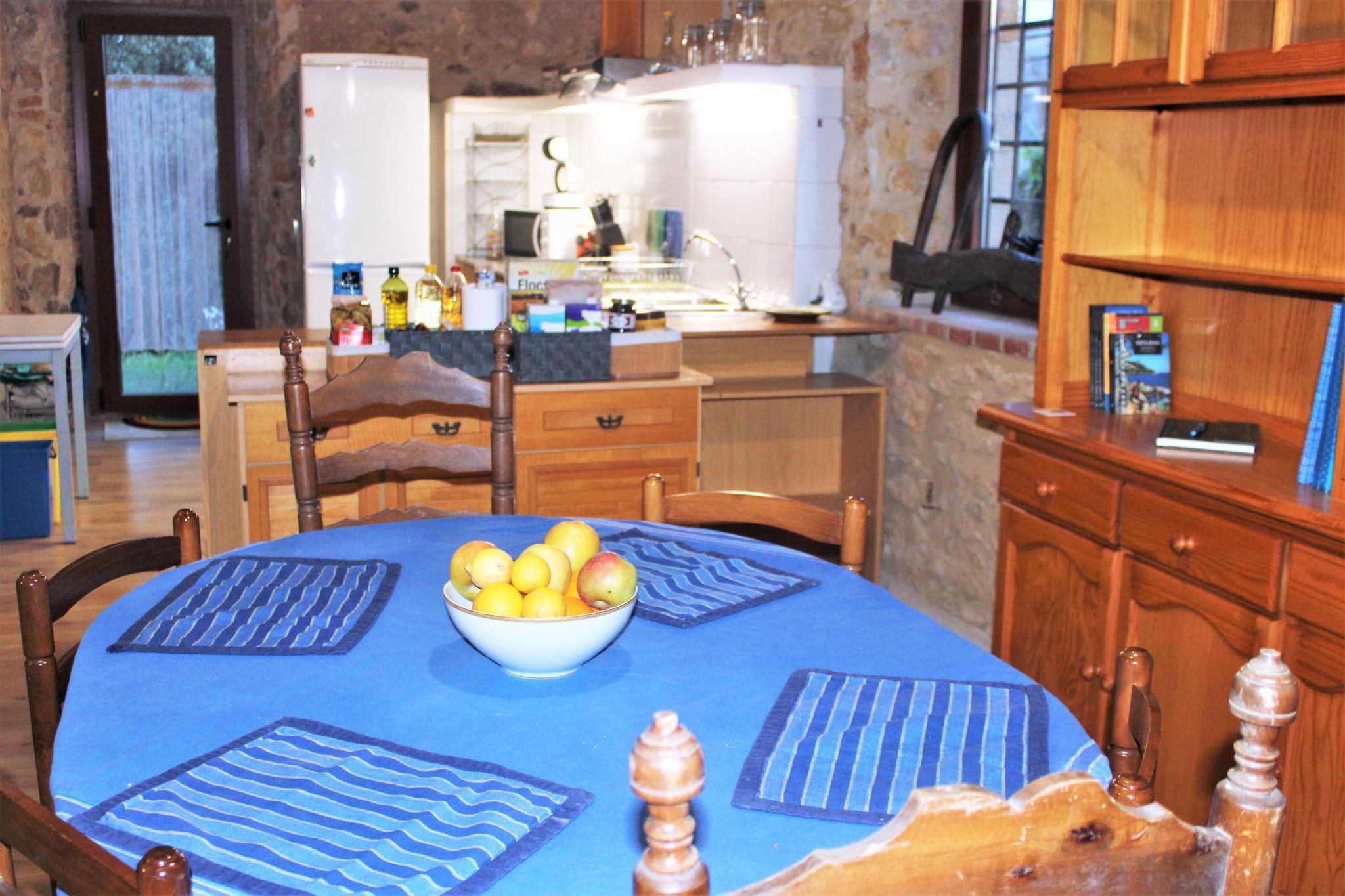 Dies ist ein ländliches Ferienhaus in Costa Brava in einer bezaubernden Gegend, die die Steinmauern und das katalanische Gewölbe bewahrt hat. Es verfügt über ein Hauptschlafzimmer, in dem sich das Badezimmer befindet, und einen offenen Dachboden im selben Raum. Sowie Küche, Esszimmer und Wohnzimmer. Es verfügt über einen großen privaten Garten mit Möbeln, Vegetation, Platz für eine Hängematte und einen Grill, um einen herrlichen Urlaub zu genießen. Restaurants und Nachtclubs begrüßen Sie für eine schöne Zeit nur 0,7 bis 0,8 km entfernt, und ganz in der Nähe finden Sie das Stadtzentrum von Palafrugell Gut. In 2 km Entfernung befindet sich der Meeresstrand von Cala Pedrosa, also halten Sie Ihre Badetücher und Badeanzüge bereit! Die Küche ist komplett ausgestattet mit einer Mikrowelle, einem Handmixer und einer Kaffeemaschine, und Sie können Ihre Mittel in der Küche selbst genießen Esstisch. Im Wohnzimmer gibt es Spielzeug und Spielgeräte für Kinder und Gesellschaftsspiele für Erwachsene, damit sich niemand langweilt! Es gibt eine Terrasse zum Entspannen und einen Waschraum mit Wäschemöglichkeiten.