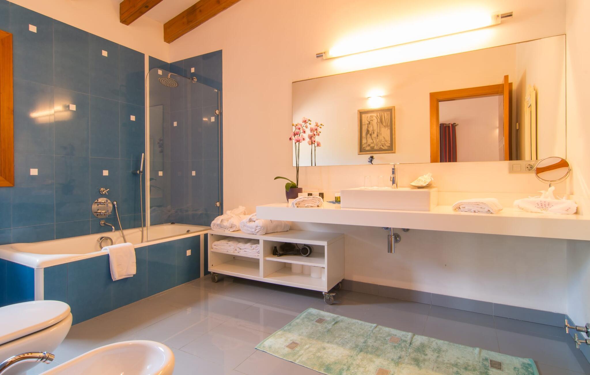 Und wenn das Haus selbst nicht ausreicht, gibt es in der Nähe der Villa auf jeden Fall viel zu genießen. Überall herrscht Ruhe und Natur, ideal für ausgedehnte Wanderungen und kurze Spaziergänge. Für die sportlicheren Gäste gibt es einen Golfplatz fast direkt vor der Tür. Jetzt müssen Sie nur noch den Caddy einpacken und los geht’s! Im Städtchen Alcúdia, nur etwas mehr als eine Viertelstunde mit dem Auto entfernt, gibt es zahlreiche Restaurants und Einkaufsmöglichkeiten sowie ein besonders bei Kindern beliebtes Highlight – einen großen Wasserpark, in dem Spaß für beide garantiert ist die Kleinen genauso wie die Großen. Sollten Sie den Strand bevorzugen, ist dieser nur wenige Autominuten entfernt. Entlang der Küstenstraße, nicht einmal 4 km entfernt, liegen verstreut kleine Strände und Buchten – perfekt für einen Tag am Meer.