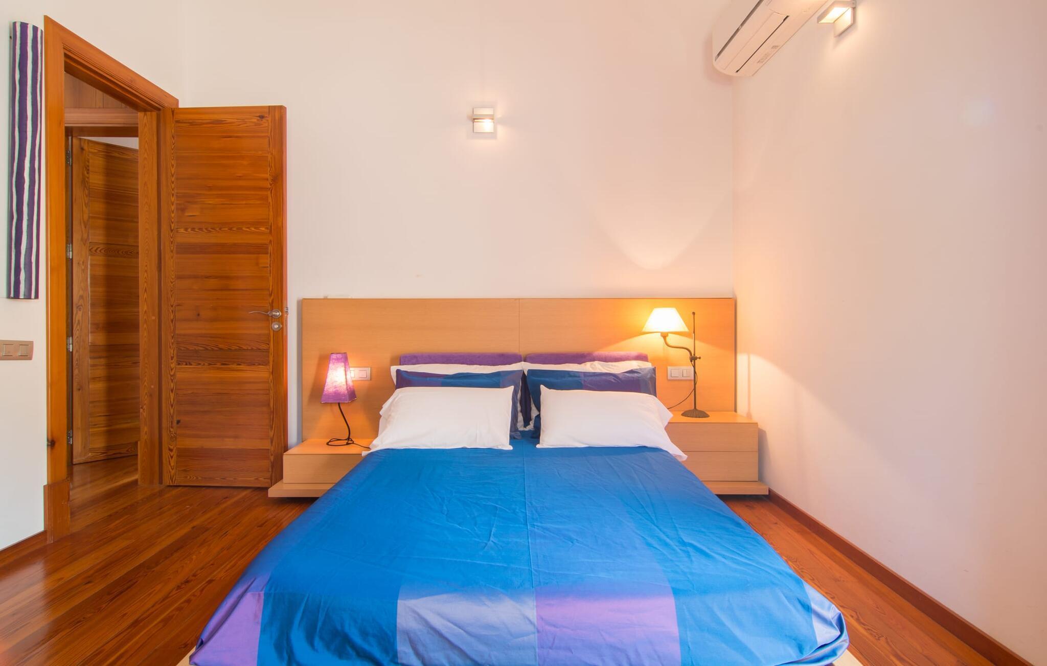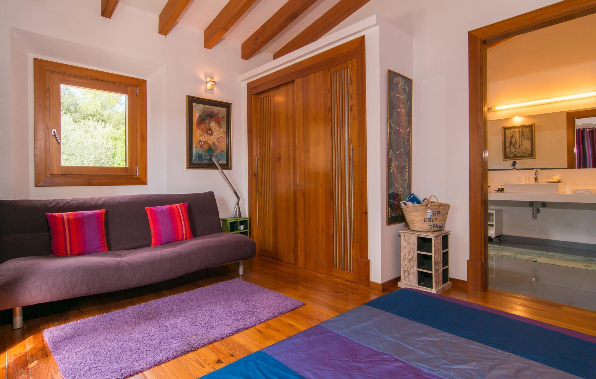 Die exklusive Villa „Golf Marina“ mit wunderbarer Ausstattung liegt im wunderschönen nördlichen Teil der Baleareninsel. Die extreme Ruhe und Abgeschiedenheit inmitten der Natur ist sowohl idyllisch als auch bezaubernd. Nur 3 km entfernt liegt die kleine Stadt Pollença, die alles für den täglichen Bedarf bietet – von Supermärkten über Banken und Apotheken bis hin zu Restaurants. Auch die nächstgelegenen Sandstrände wie Alcúdia oder Es Barcares, die sich perfekt für einen Badeausflug eignen, sind nur etwa 9 km entfernt.