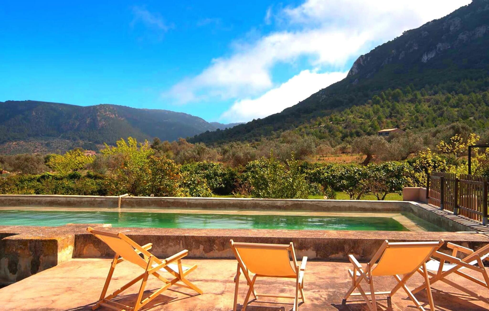 Wenn Sie das hübsche Künstlerdorf Valldemossa verlassen und in Richtung Banyalbufar fahren, gelangen Sie in eine der schönsten, einsamsten und unerschlossensten Küstenregionen auf ganz Mallorca. Hier zeigt sich die Insel von ihrer friedlichsten und ursprünglichsten Seite. Nur 3 km nach dem Verlassen von Valldemossa finden Sie die sehr abgelegene Villa „Gonzalo“, ein altes mallorquinisches Landhaus, das 2011 komplett restauriert und renoviert wurde. Es präsentiert sich nun vor einer atemberaubend malerischen Kulisse. Der idyllische Außenbereich ist bestens auf die Bedürfnisse erholungssuchender Urlauber abgestimmt. Der 9 m lange Pool, der gleichzeitig das Herzstück des weitläufigen, terrassenförmigen Außenbereichs mit überdachtem Bereich ist, lädt zum Schwimmen und Entspannen ein und bietet eine ideale Alternative zum Schwimmen im Meer. Der Großteil der Villa ist übrigens rein organisch. Es liegt in einer ländlichen Gegend, die nicht vom Tourismus überschwemmt ist und daher eine eigene Infrastruktur entwickeln musste. Moderne alternative Energieerzeugung mit autarken Ver- und Entsorgungsanlagen ermöglichen den Betrieb der Villa in naturnaher Umgebung. Die hier lebenden Schafe kommen zu Besuch direkt vor das Haus, was für die Kinder besonders spannend ist.