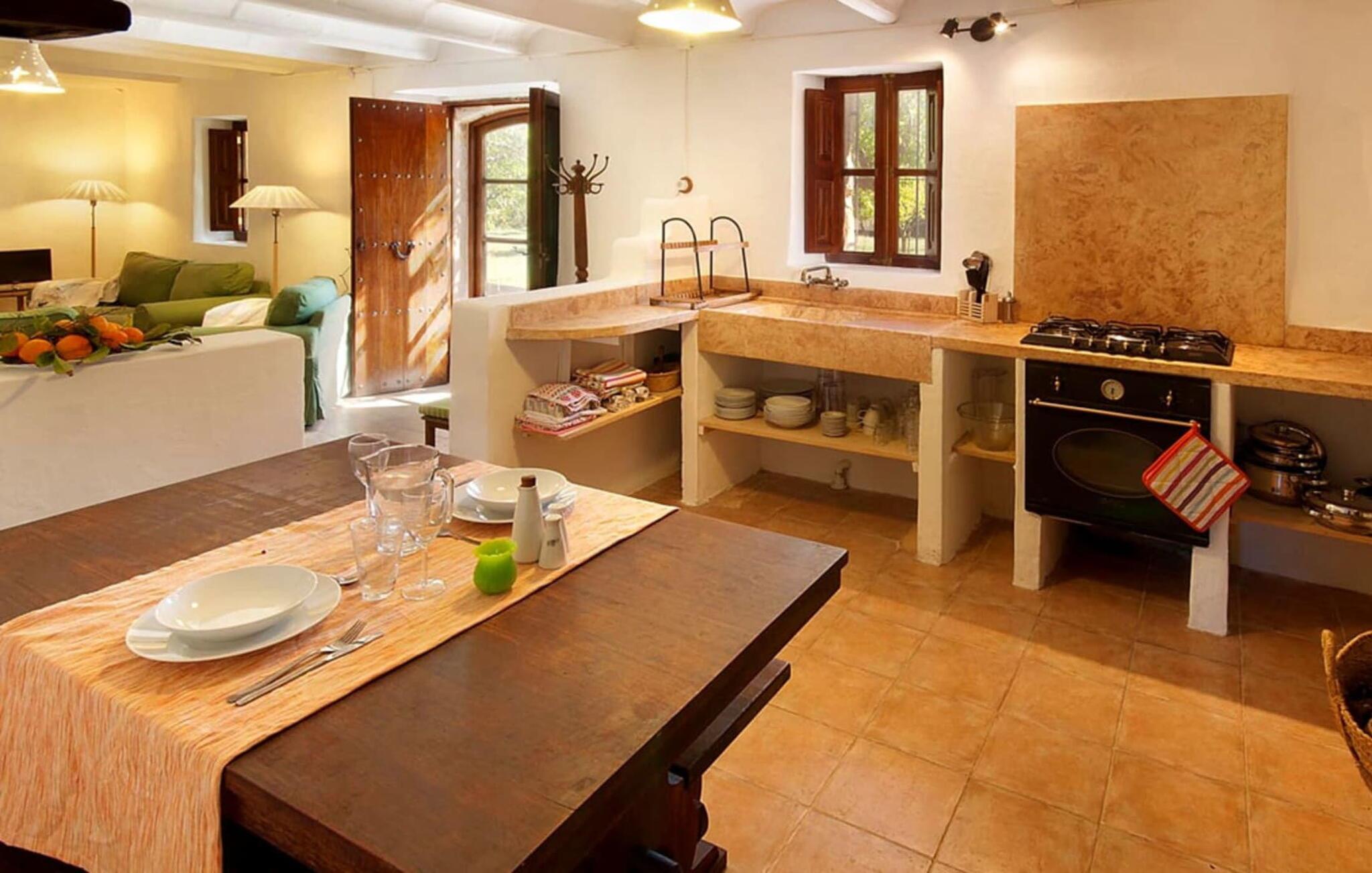 Das Ferienhaus selbst bietet auf 100 m² ausreichend Platz für bis zu vier Personen und zwei Kinder, um sich individuell auszuleben. Es gibt zwei gemütliche Doppelzimmer und zwei Badezimmer. Erwachsene können in den beiden Schlafzimmern schlafen und bis zu zwei Kinder finden auf der bequemen Schlafcouch im gemütlichen Wohnzimmer Platz. Wird dieser Raum tagsüber als Gemeinschaftsraum genutzt, sollten Fernseher, CD- und DVD-Player sowie WLAN-Internetverbindung ausreichend abgedeckt sein, damit keine Langeweile aufkommt. Die typisch mallorquinische, geräumige Küche in der Villa ist direkt vom Wohnbereich aus zugänglich. Es ist komplett ausgestattet und bietet alles für einen unbeschwerten Selbstversorger-Urlaub. Wenn Sie mit einem Baby oder Kleinkind reisen, stellen die Eigentümer der Villa (ein Ehepaar mit eigenen Kindern) gerne ein Kinderbett und einen Hochstuhl zur Verfügung. So steht Ihrem entspannten Familienurlaub nichts mehr im Wege. Da es mit 100 m² jedoch relativ „klein“ ist, eignet sich „Gonzalo“ auch für Paare, die einen ruhigen, romantischen Urlaub zu zweit verbringen möchten. Ganz gleich, aus welcher Zusammensetzung Ihre Reisegruppe besteht, Sie werden „Gonzalo“ mit Sicherheit genießen und von der fantastischen Aussicht nie genug bekommen.