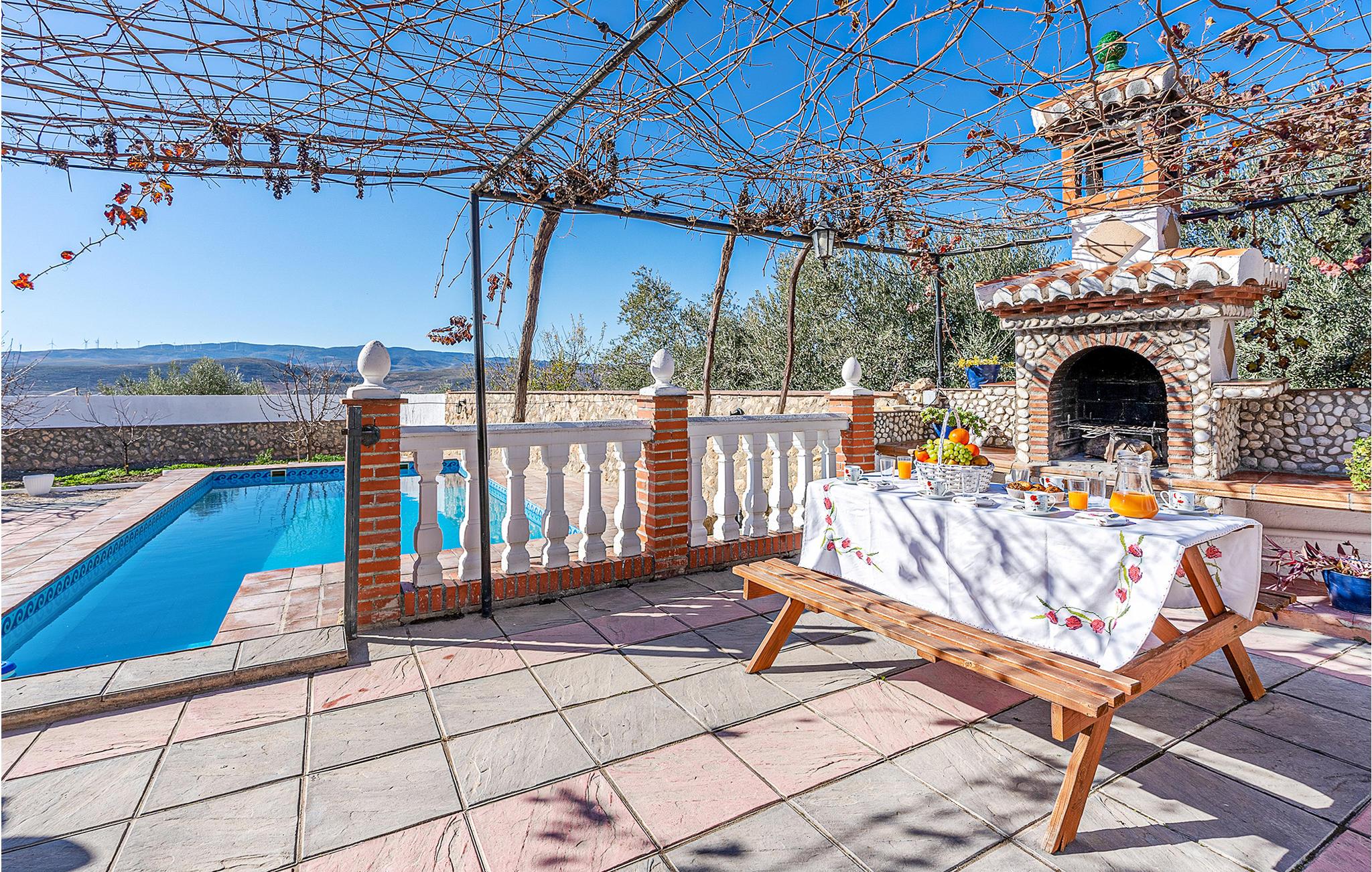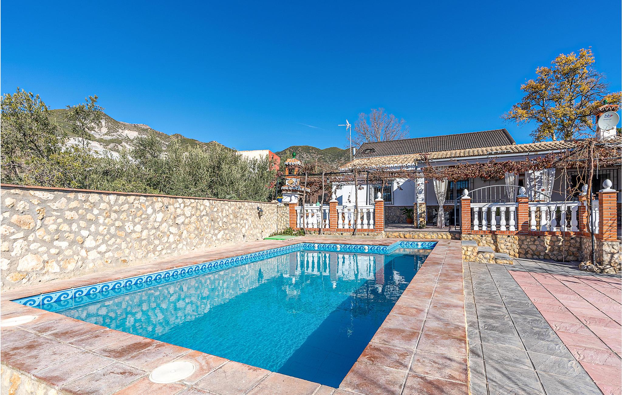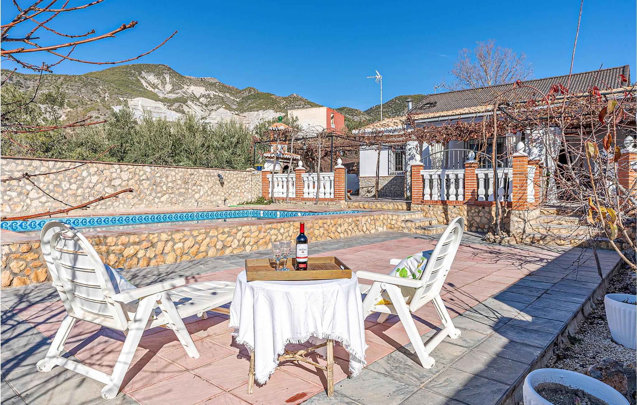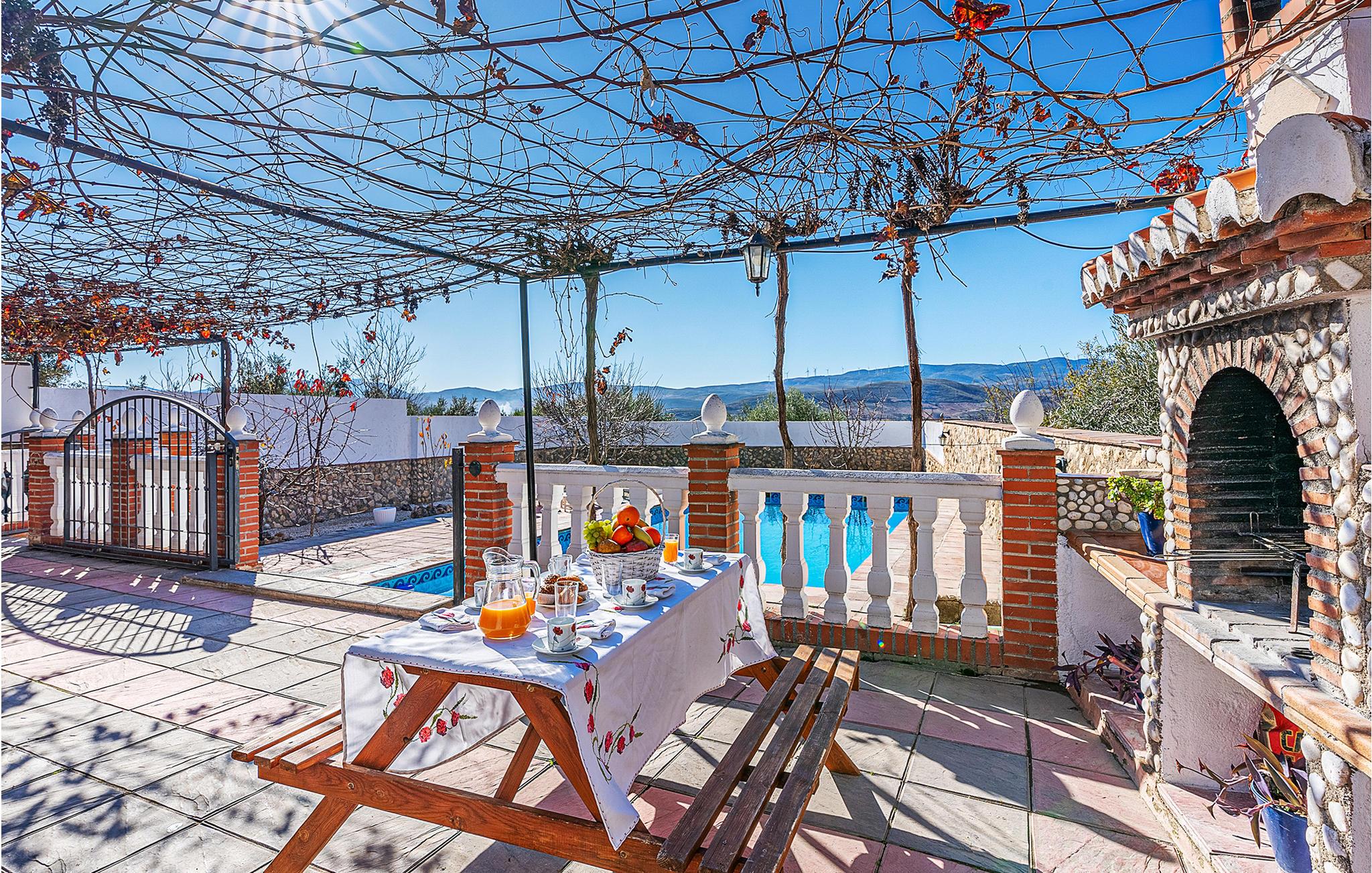 Dieses praktische Ferienhaus heißt mit seinen zwei Schlafzimmern, dem Bad und dem Wohnraum mit Küche bis zu sechs Gäste herzlich willkommen. In und an Ihrem privaten Pool können Sie das wundervolle Wetter Andalusiens genießen. Auf der hübschen überdachten Terrasse können Sie morgens frühstücken oder den Tag bei einem Glas Wein ausklingen lassen. Ein Grill für gemütliche Grillabende steht Ihnen auch zur Verfügung.