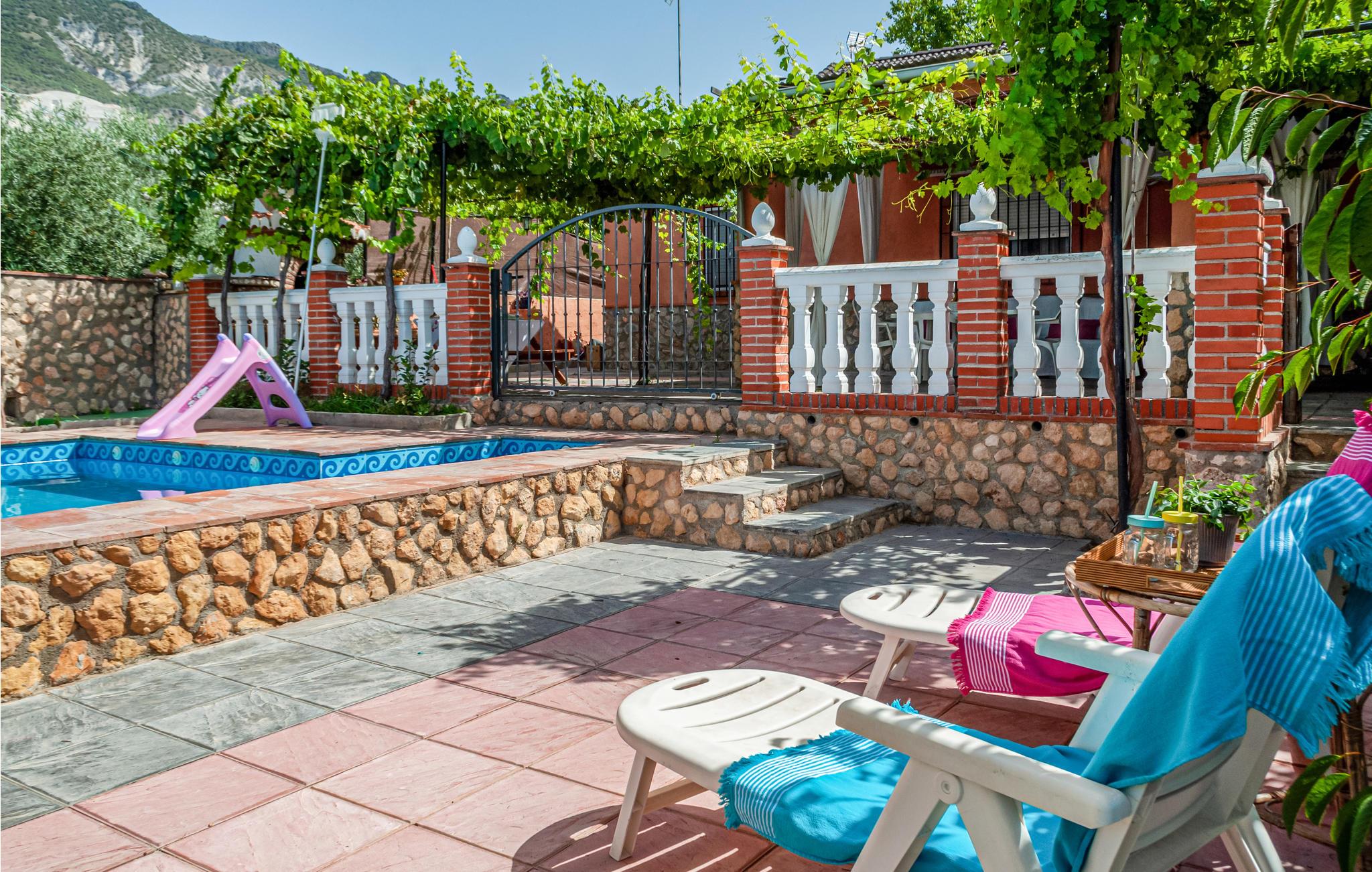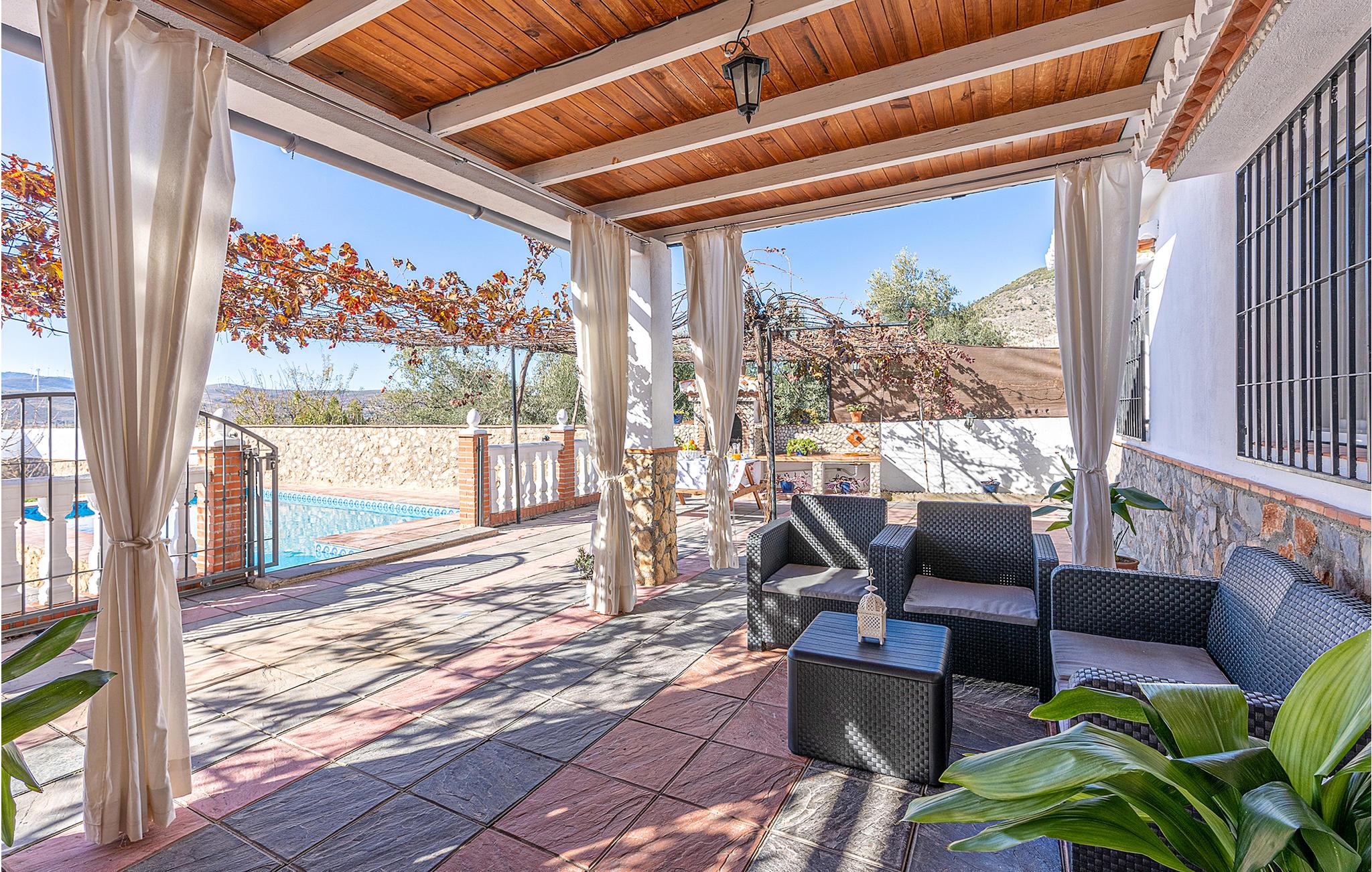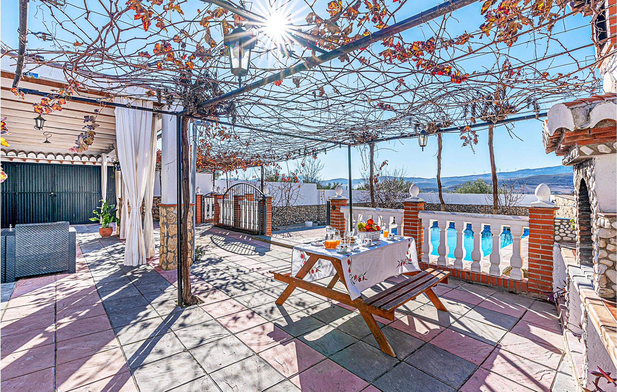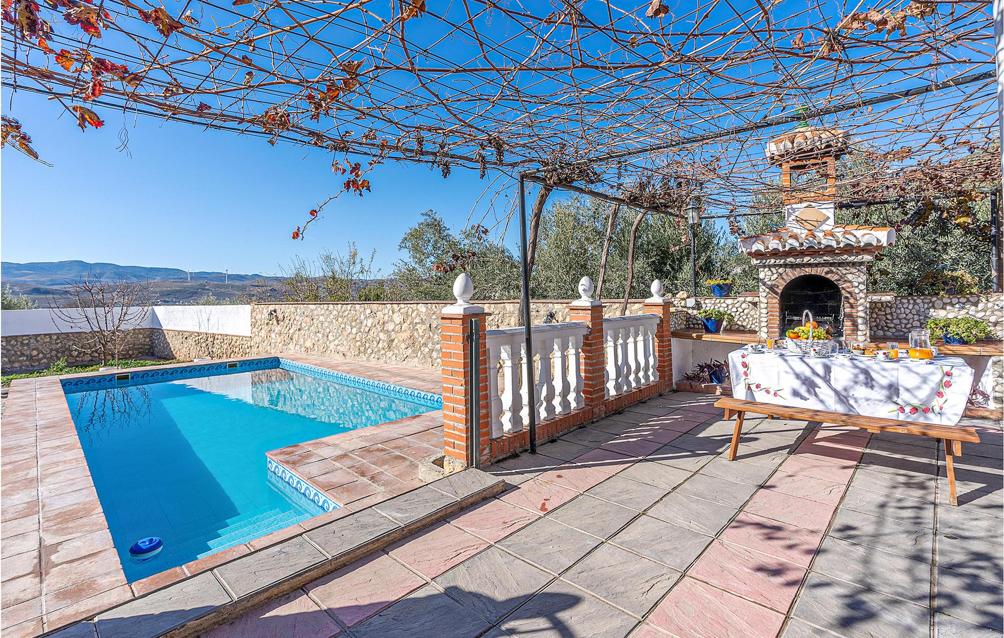 Dieses praktische Ferienhaus heißt mit seinen zwei Schlafzimmern, dem Bad und dem Wohnraum mit Küche bis zu sechs Gäste herzlich willkommen. In und an Ihrem privaten Pool können Sie das wundervolle Wetter Andalusiens genießen. Auf der hübschen überdachten Terrasse können Sie morgens frühstücken oder den Tag bei einem Glas Wein ausklingen lassen. Ein Grill für gemütliche Grillabende steht Ihnen auch zur Verfügung.