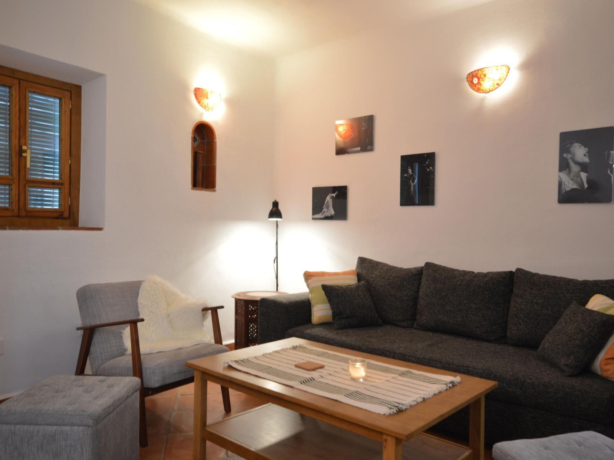 Die Waschmaschine befindet sich im Innenhof mit seinen schönen Steinwänden und einem Zitronenbaum. Hier befindet sich auch ein Wäschetrockner.