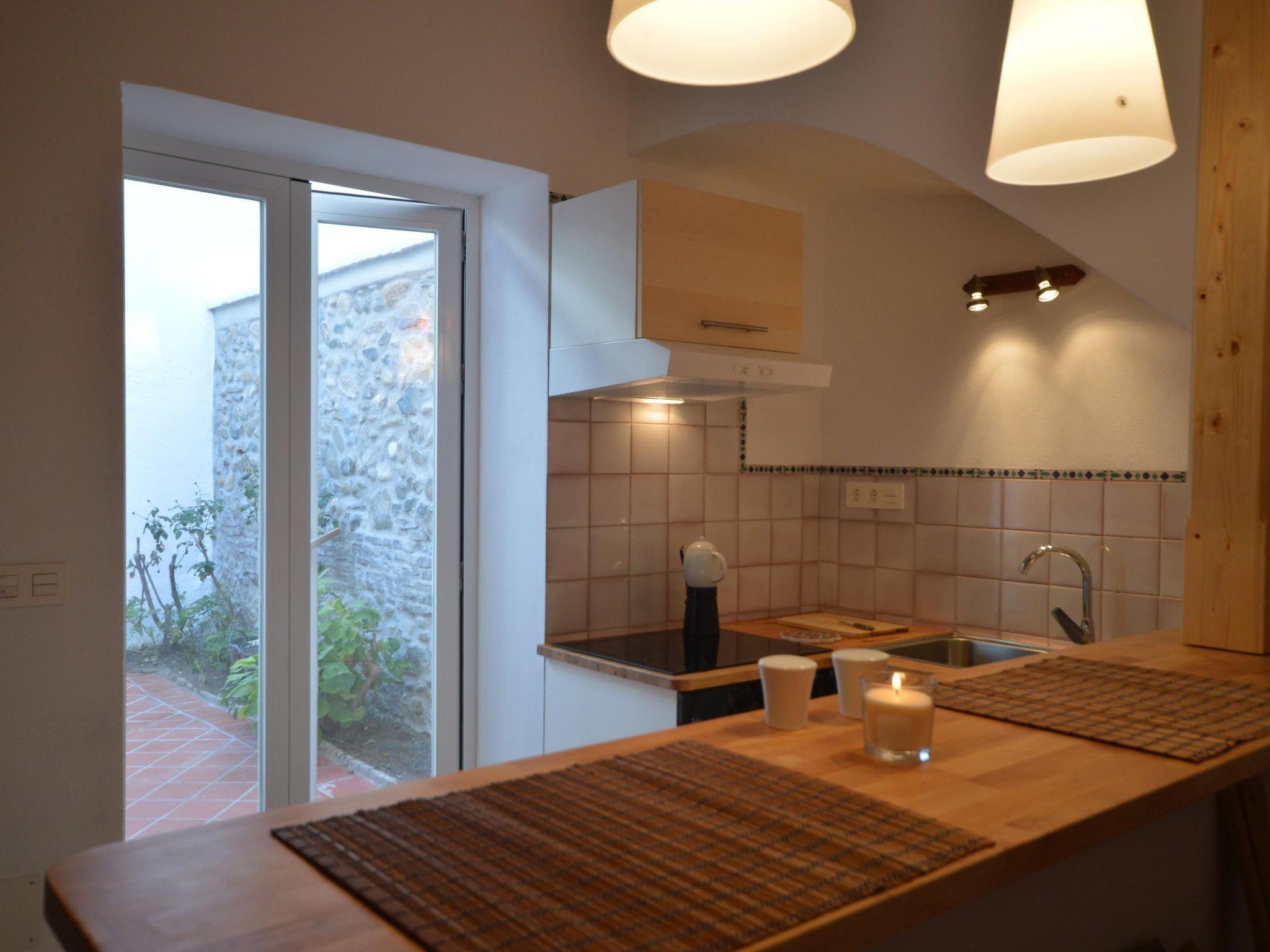 Das Haus wurde so renoviert, dass es seinen typisch rustikalen und andalusischen Stil behalten hat. Sie betreten das 90m²große Haus und befinden sich im offenen Wohn- und Essbereich mit amerikanischer Küche. Im Wohnbereich steht ein Sofa, das auch als Schlafsofa (150x200cm) für zwei Personen genutzt werden kann. An der Bar können Sie frühstücken und dabei in den Innenhof blicken. Die Küche ist gut ausgestattet und bietet Ihnen Cerankochfeld, Backofen, Kühlschrank und Toaster. Ein hübsches Badezimmer mit Dusche, WC und Waschbecken rundet das Angebot im Erdgeschoss ab. In der oberen Etage liegen die beiden Schlafzimmer. Das große Zimmer besitzt eine eigene Toilette und hier steht ein französisches Bett (140x200cm). Das andere Zimmer bietet dafür einen Einbauschrank, ein Ausziehbett mit zwei Matratzen je (80x200cm) und vom Fenster aus Blick auf die Alhambra.