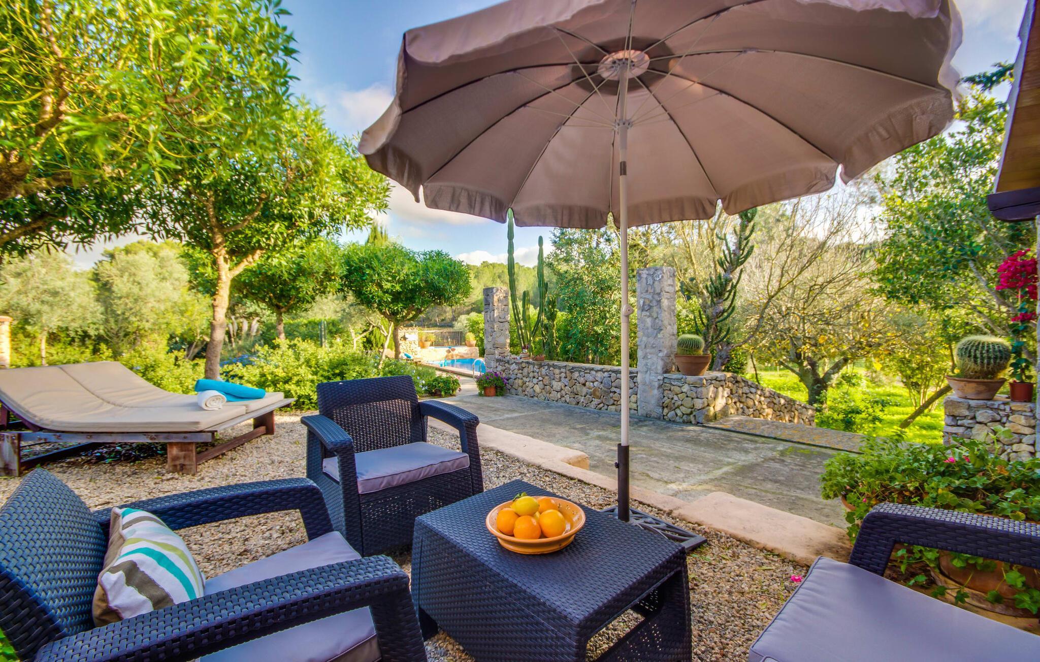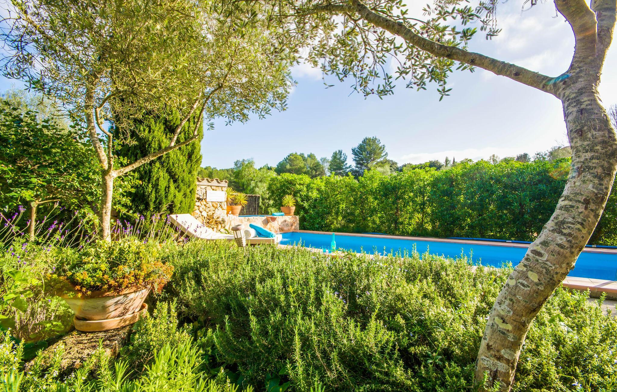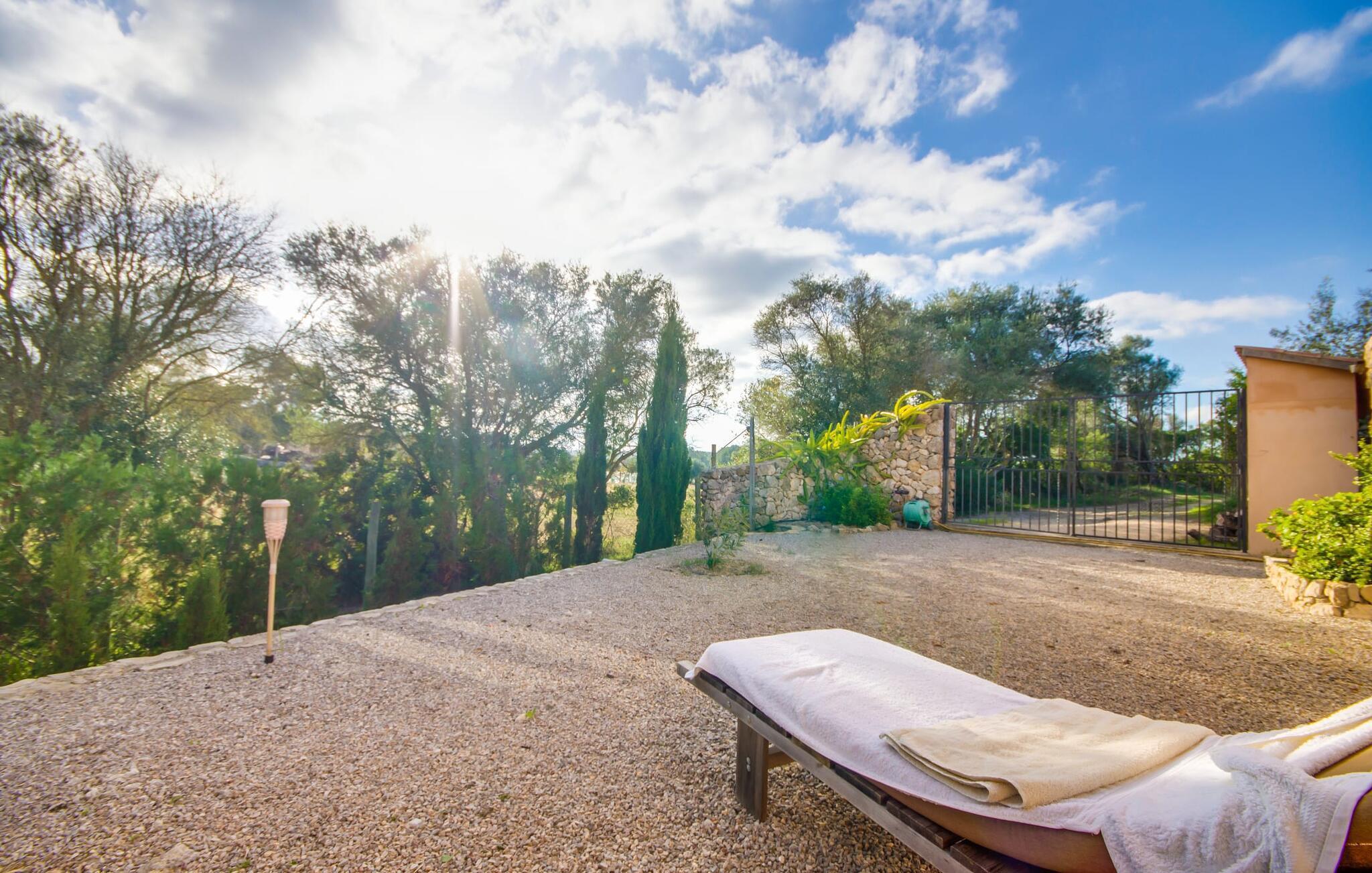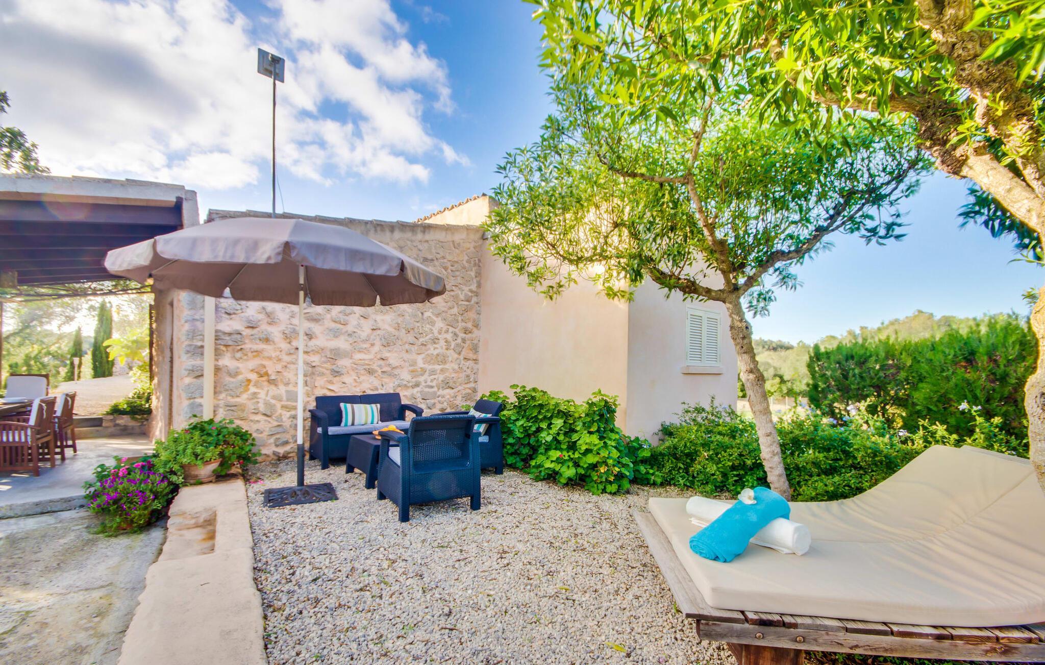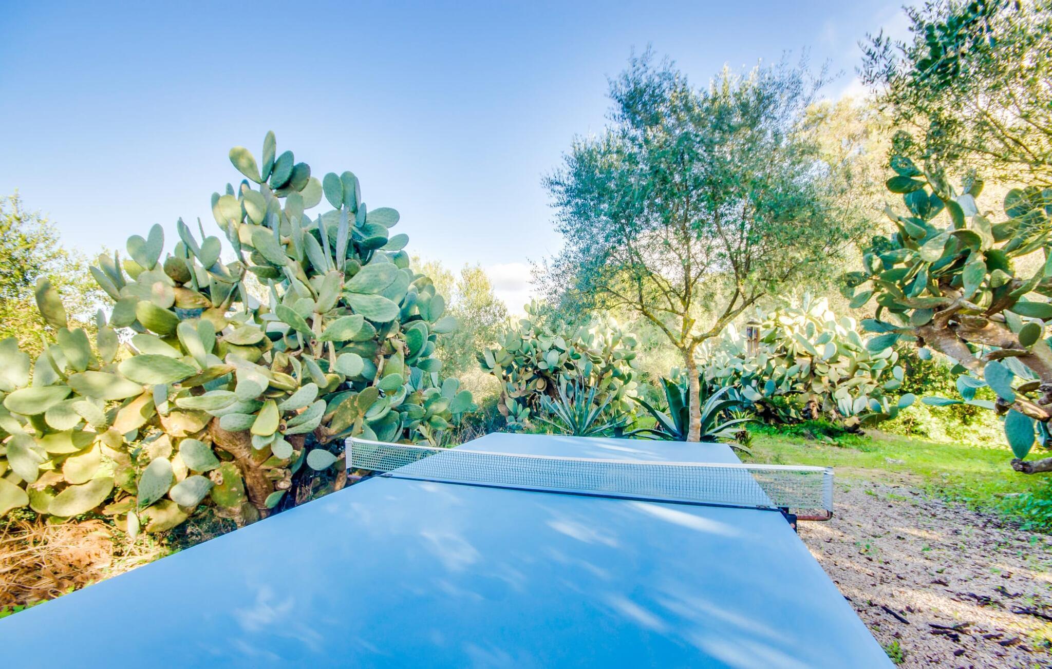 Wir stellen Ihnen die unglaublich charmante Villa „Higo Chumbo“ vor, die sich besonders gut für zwei befreundete Paare oder eine Familie mit einem oder zwei älteren Kindern eignet. Das sorgfältig renovierte Ferienhaus ist von Feldern und Wäldern umgeben und verfügt über einen zauberhaften Garten mit unzähligen mediterranen Bäumen, Lavendel, Kiefern, Zypressen, Kräutern und Sukkulenten. Sie schaffen ein einzigartiges, gemütliches und harmonisches Ambiente – und bieten schon bei der Ankunft perfekten Komfort. Nach einer einfachen Fahrt vom Flughafen werden Sie sich schnell wie zu Hause und zu 100 % wohl fühlen. Wie das Sprichwort sagt: „Zuhause ist, wo dein Herz ist“. Sie werden schnell Ihr Herz an dieses wirklich wundervolle Haus verlieren. Die Villa verfügt über einen langen, 2 m tiefen Pool mit einem kontinuierlichen Strom erfrischenden Wassers, der aus einem kleinen darüber liegenden Pool herabfließt. An der Tischtennisplatte in der Mitte des Gartens können Sie ein paar Spiele mit zwei oder vier Spielern austragen. Die selbstgebauten Sonnenliegen aus Holzpaletten sind ein bequemer Ort für einen Mittagsschlaf oder zum Lesen eines spannenden Romans. Auf dem Grillplatz können Sie jeden Tag leckeres Grillgut genießen, das alle gemeinsam auf der überdachten Terrasse essen können. Aus einer kleinen Wand wurde eine Bank, die perfekt zum Vintage-Esstisch und den bequemen Loungemöbeln passt. Sie können Ihren Urlaubstag ganz nach Ihrem persönlichen Geschmack genießen, entweder bei einem Glas mallorquinischem Wein oder einem erfrischenden „Cerveza“. In Ausnahmefällen können die Eigentümer das kleine Nebengebäude auf dem weitläufigen Grundstück ruhig und respektvoll nutzen. Der Garten und die Nutzung des Pools stehen selbstverständlich ausschließlich den Gästen zur Verfügung.