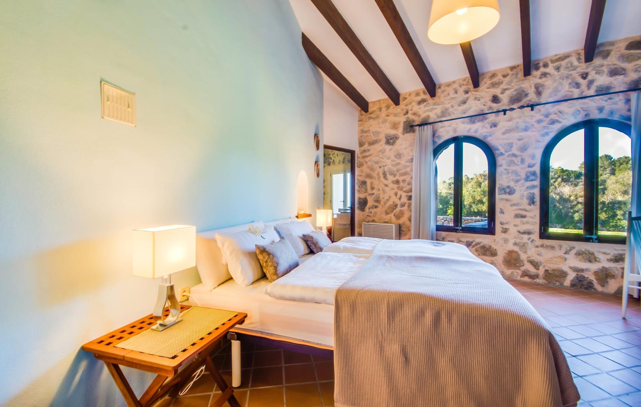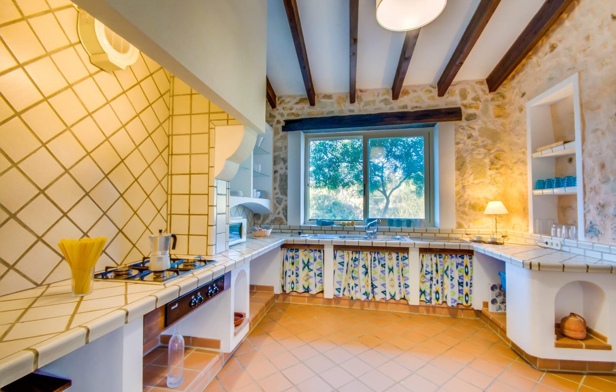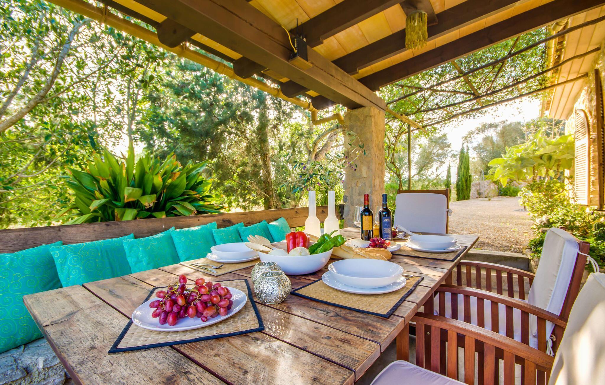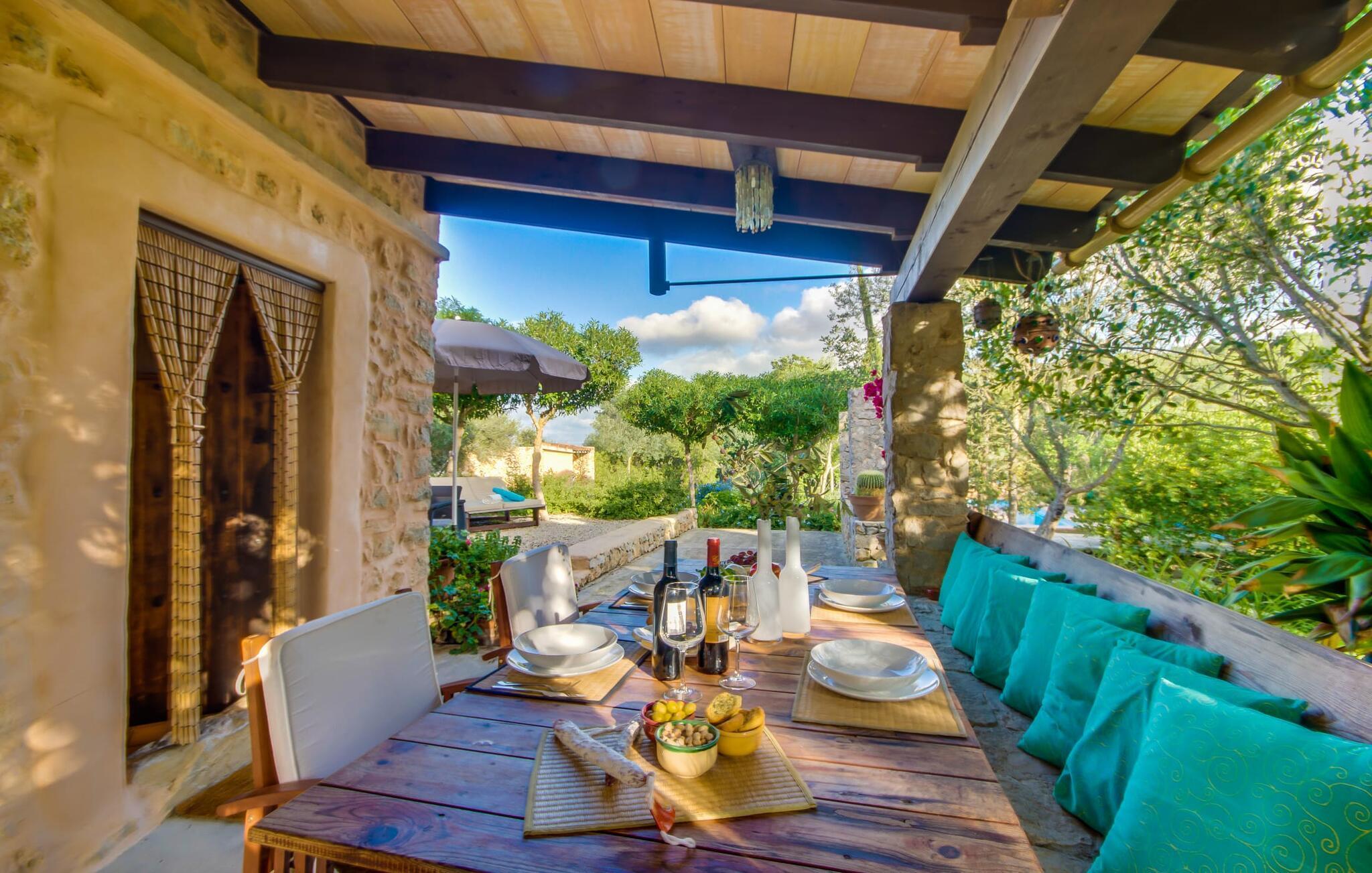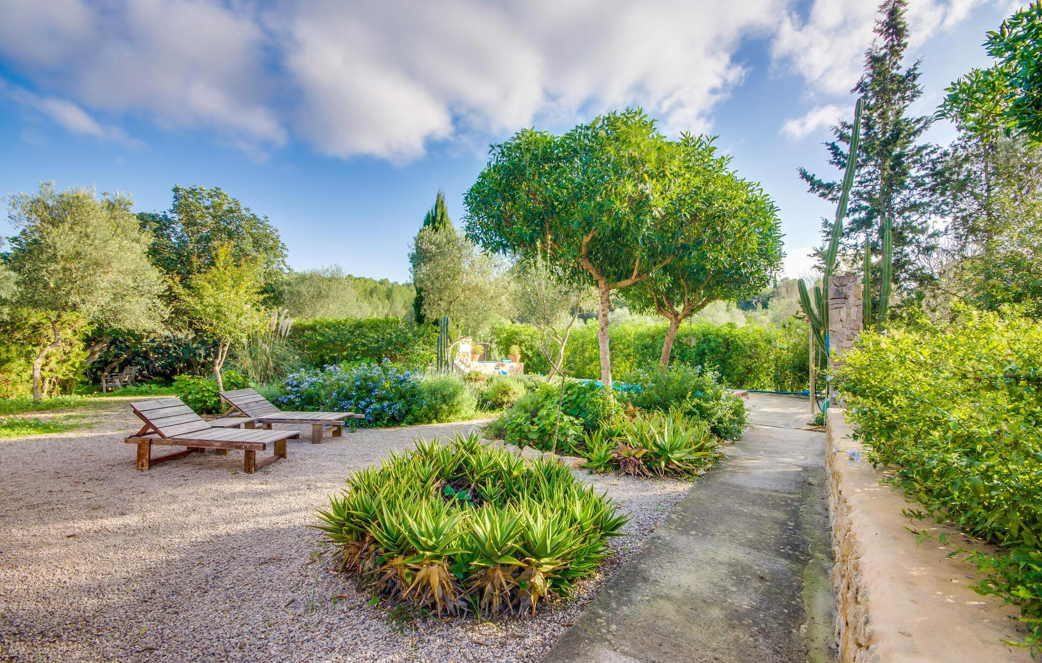 Wir stellen Ihnen die unglaublich charmante Villa „Higo Chumbo“ vor, die sich besonders gut für zwei befreundete Paare oder eine Familie mit einem oder zwei älteren Kindern eignet. Das sorgfältig renovierte Ferienhaus ist von Feldern und Wäldern umgeben und verfügt über einen zauberhaften Garten mit unzähligen mediterranen Bäumen, Lavendel, Kiefern, Zypressen, Kräutern und Sukkulenten. Sie schaffen ein einzigartiges, gemütliches und harmonisches Ambiente – und bieten schon bei der Ankunft perfekten Komfort. Nach einer einfachen Fahrt vom Flughafen werden Sie sich schnell wie zu Hause und zu 100 % wohl fühlen. Wie das Sprichwort sagt: „Zuhause ist, wo dein Herz ist“. Sie werden schnell Ihr Herz an dieses wirklich wundervolle Haus verlieren. Die Villa verfügt über einen langen, 2 m tiefen Pool mit einem kontinuierlichen Strom erfrischenden Wassers, der aus einem kleinen darüber liegenden Pool herabfließt. An der Tischtennisplatte in der Mitte des Gartens können Sie ein paar Spiele mit zwei oder vier Spielern austragen. Die selbstgebauten Sonnenliegen aus Holzpaletten sind ein bequemer Ort für einen Mittagsschlaf oder zum Lesen eines spannenden Romans. Auf dem Grillplatz können Sie jeden Tag leckeres Grillgut genießen, das alle gemeinsam auf der überdachten Terrasse essen können. Aus einer kleinen Wand wurde eine Bank, die perfekt zum Vintage-Esstisch und den bequemen Loungemöbeln passt. Sie können Ihren Urlaubstag ganz nach Ihrem persönlichen Geschmack genießen, entweder bei einem Glas mallorquinischem Wein oder einem erfrischenden „Cerveza“. In Ausnahmefällen können die Eigentümer das kleine Nebengebäude auf dem weitläufigen Grundstück ruhig und respektvoll nutzen. Der Garten und die Nutzung des Pools stehen selbstverständlich ausschließlich den Gästen zur Verfügung.