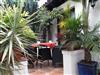 Apartment 1 mit Patio-Terrasse: Geräumiges Apartment im rustikal-spanischen Stil. Küche, bequemes Wohnzimmer mit Essecke, geschmackvolles Schlafzimmer, wunderschöne Sitzgelegenheit auf der liebevoll gestalteten Patio- oder auf der Sonnenterrasse und selbstverständlich digitales SAT-TV (deutsch & lokal). Das Apartment befindet sich im Erdgeschoss, Schlafzimmerfenster ruhig zum Innenhof gelegen. Das kleine Wohnzimmerfenster bietet einen partiellen Meerblick und liegt zur Landstraße.