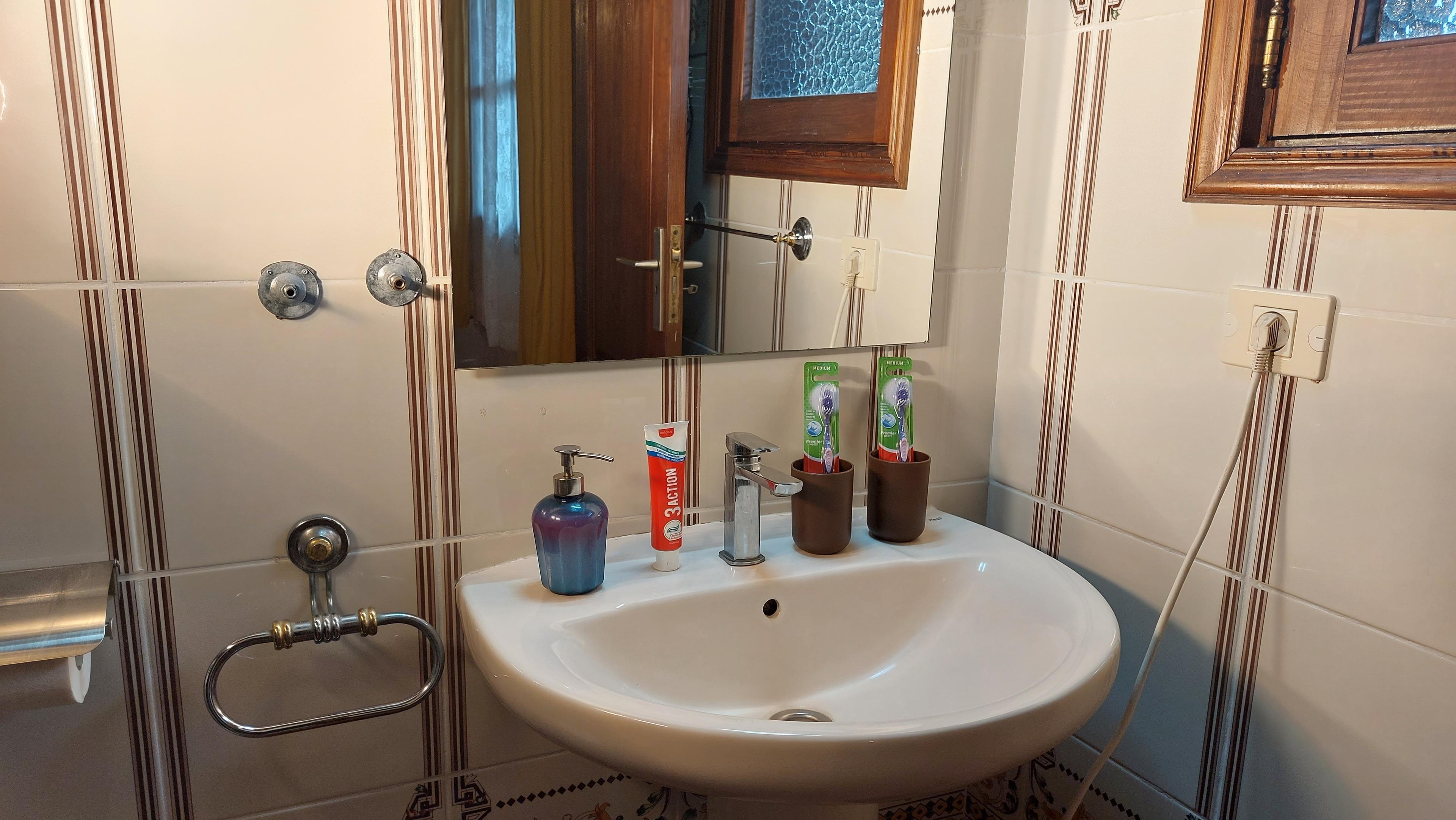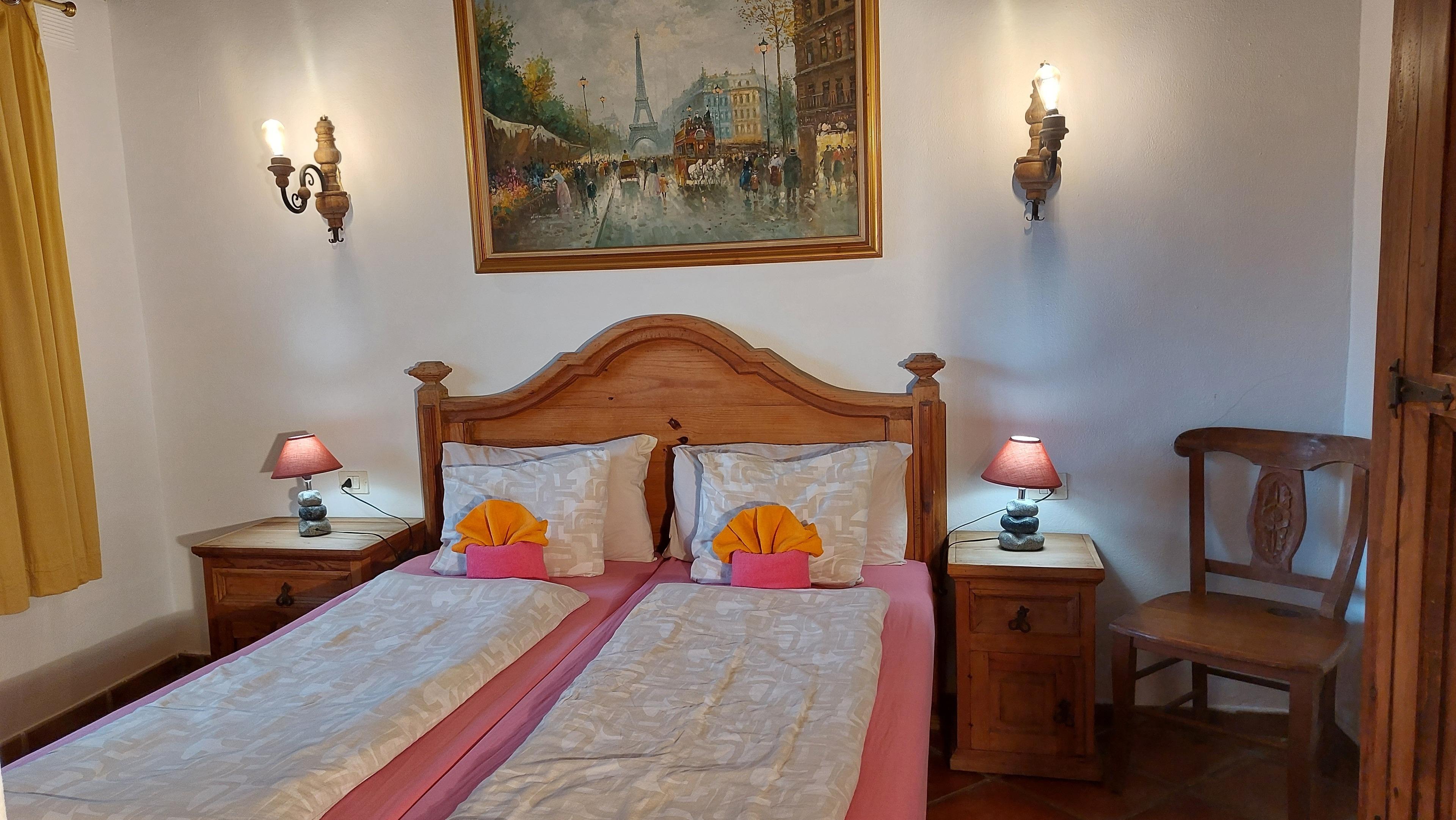 Diese Ferienwohnung befindet sich im ersten Stockwerk unseres Hauses und ist im rustikal-mexikanischen Stil eingerichtet. Sämtliche Fenster liegen ruhig zum Innenhof. Das Apartment verfügt über einen privaten Balkon mit Meerblick. Der Wohnbereich gliedert sich in Essecke direkt am Fenster zum Balkon, in eine Küchenzeile und den eigentlichen Wohnbereich mit Sofa und zwei Sesseln. Das Bad mit Dusche betritt man vom Schlafzimmer aus. Der Flachbildfernseher verfügt über Satellitenempfang mit ca. 450 internationalen Sendern- darunter alle frei empfangbaren deutschen Kanäle - sowie durch Umschalten auf der Fernbedienung über DVB-T-Empfang mit den gängigen spanischen Fernsehsendern. Zudem kann auf Anfrage kostenlos Netflix bereitgestellt werden. Unser Haus verfügt über Internetanschluss per Glasfaser und in allen Unterkünften sowie auf der Dachterrasse steht sehr gut funktionierendes W-LAN zur kostenlosen Verfügung.